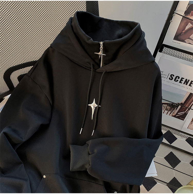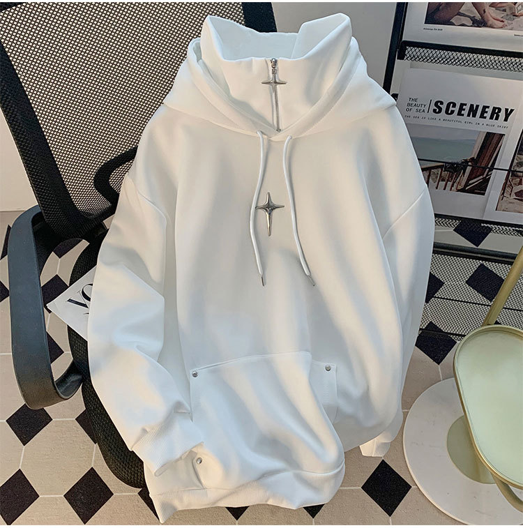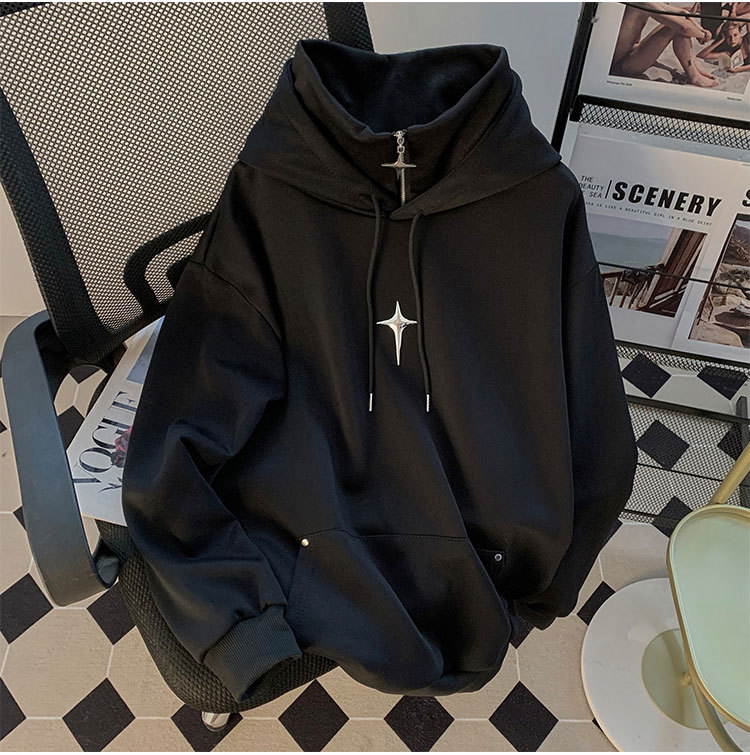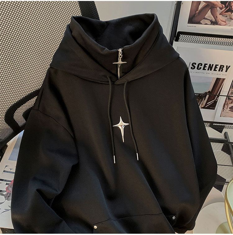 봄과 가을 풀오버 하이 칼라 스웨터 남자 캐주얼 트렌디 브랜드 스포츠 일본 스타일 레트로 트렌디 한 십대의 트렌디 후드 자켓