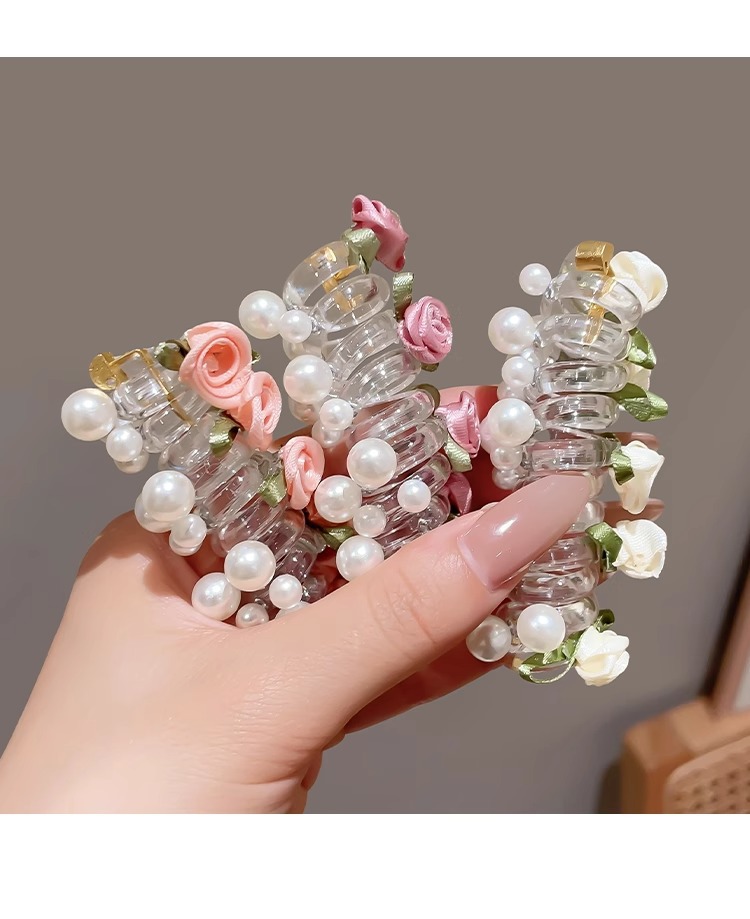 새로운 달콤한 나비 로즈 비드 전화 라인 헤어 링 포니 테일 버블 브레이드 아티팩트 꼰 헤어 로프 타이 헤어 헤드웨어