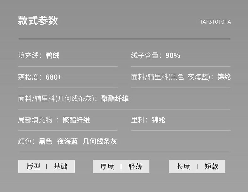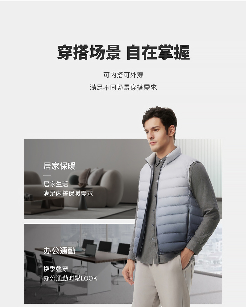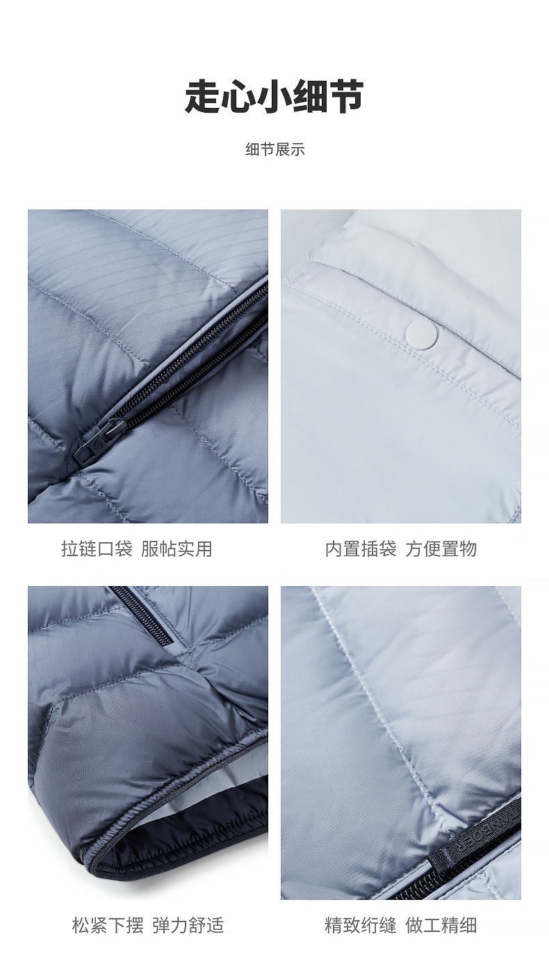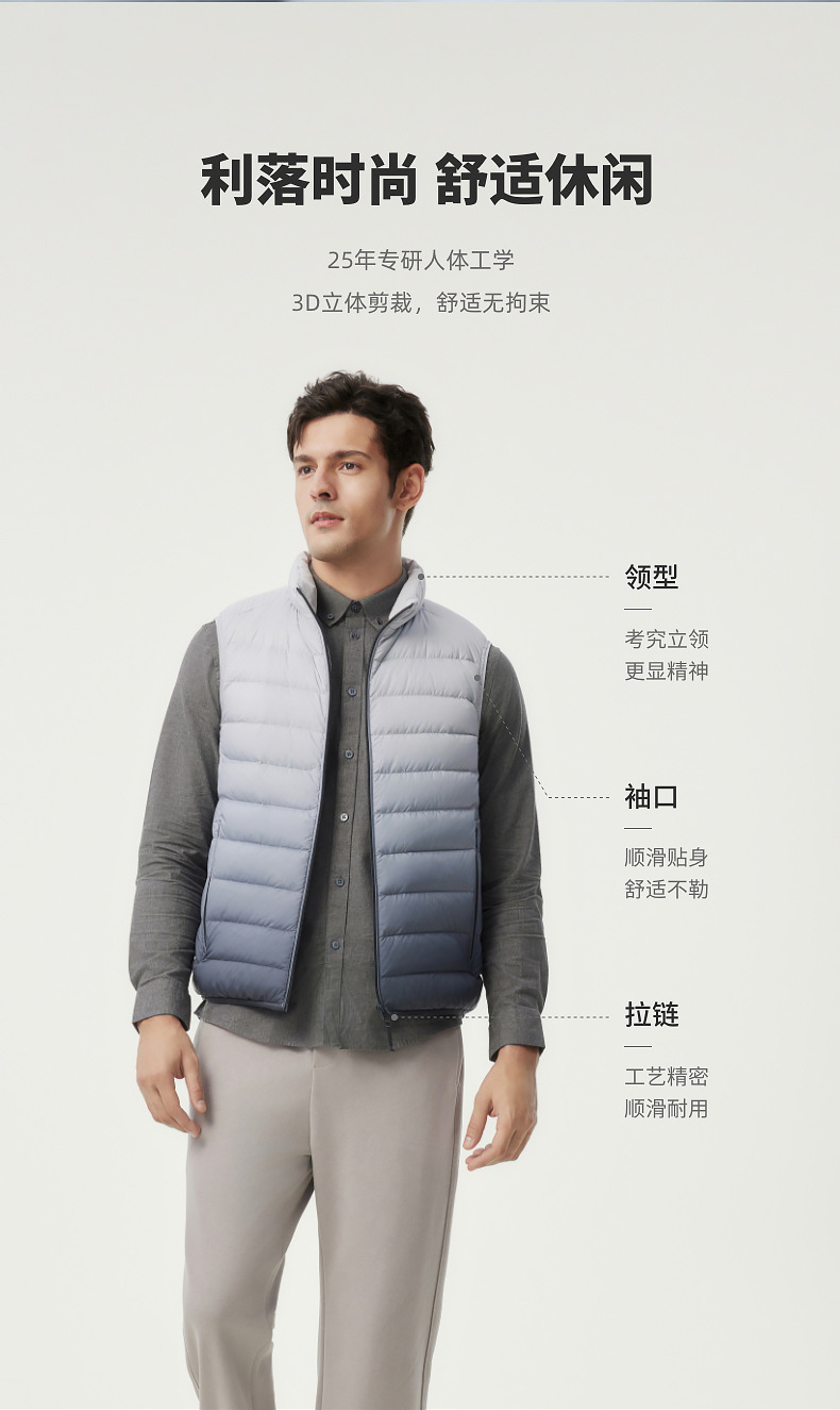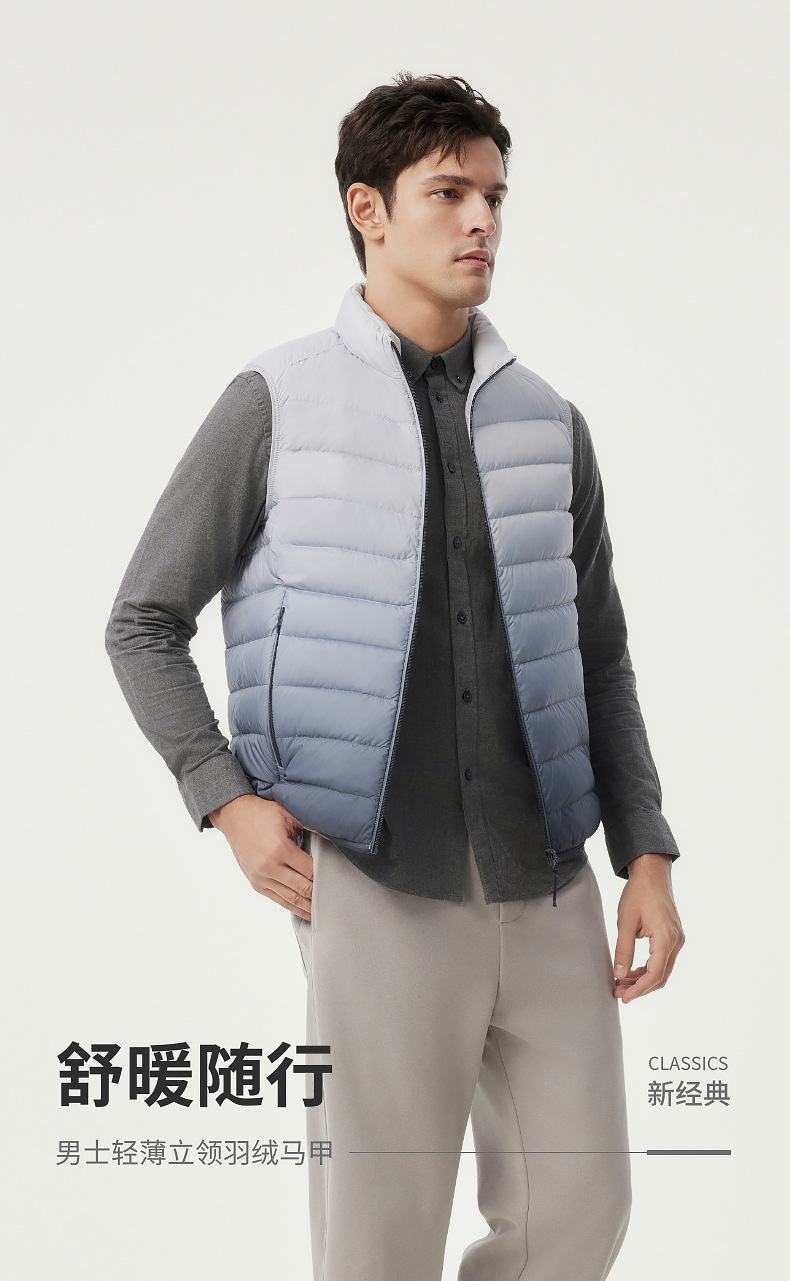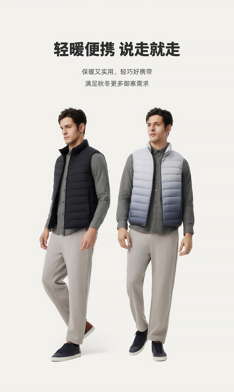 탬버 라이트 다운 조끼 짧은 수직 칼라 슬림핏 편안한 올 매치 남자 Ware TAF310101A