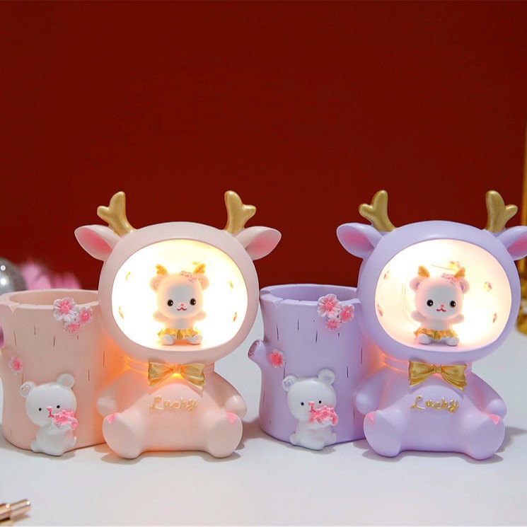 【商品名称】 2104-11AB林深见鹿笔筒灯 【商品材质】树脂