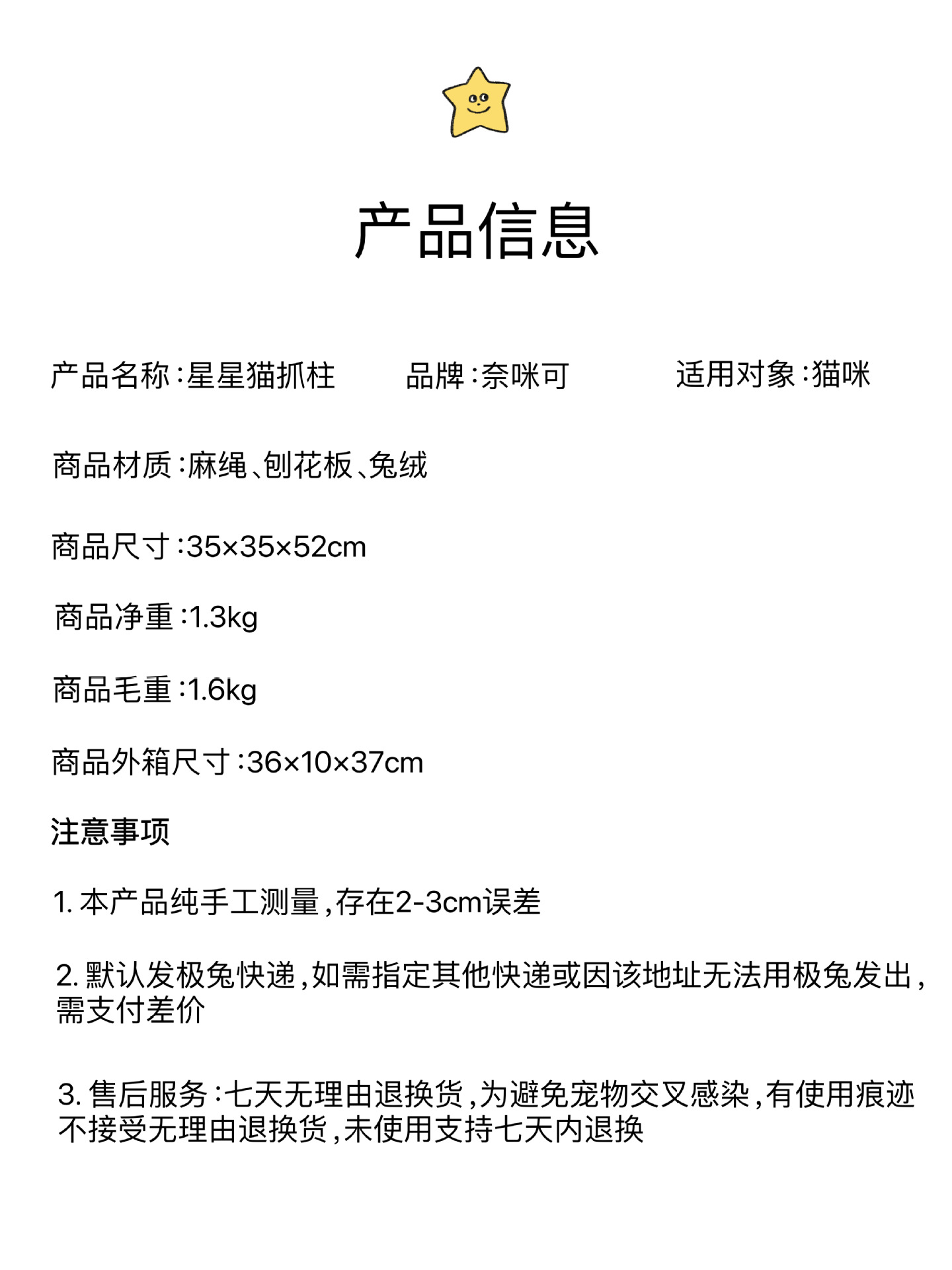 Nimike 스타 고양이 스크래치 칼럼 사이 잘 수직 귀여운 고양이 스크래치 보드 스크래치 방지 스크랩 방지 내마모성 고양이 클로 열 고양이 등반 랙