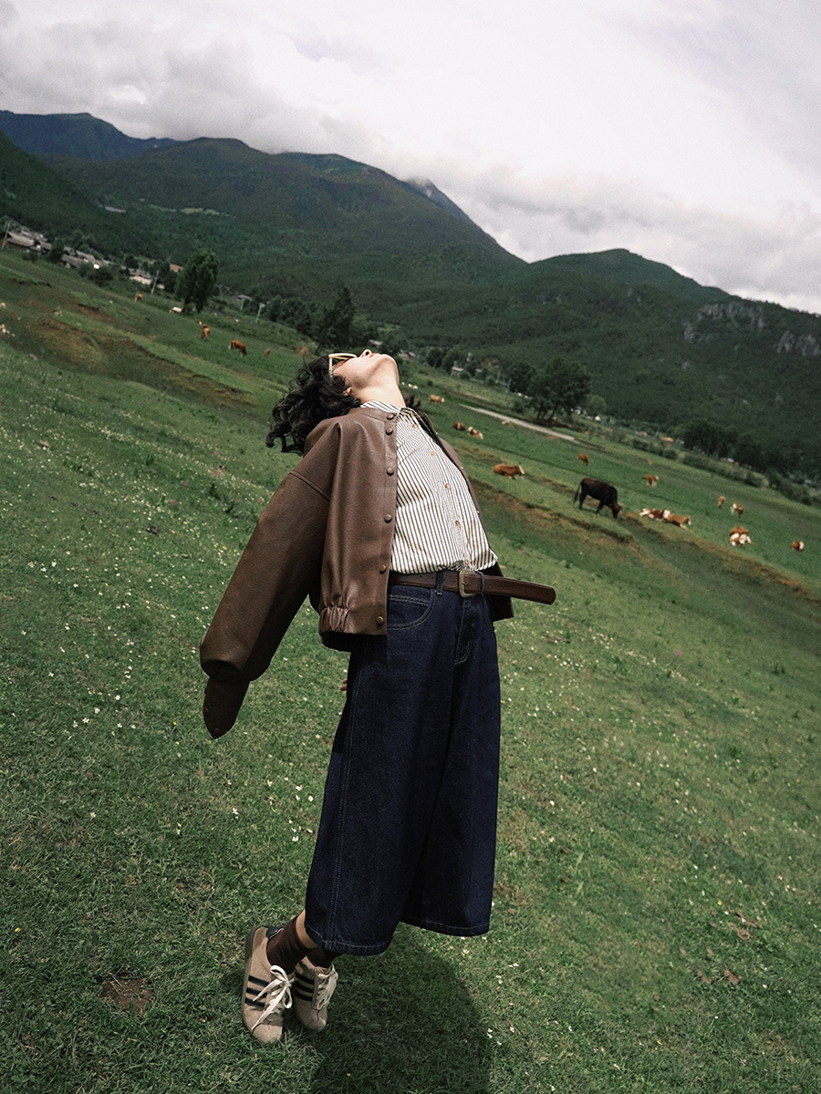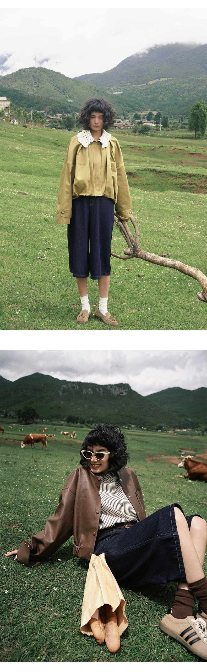 네이헤 2025년 초가을 여성복 신상 워싱 레트로 5부 데님 팬츠 여성용 중간 길이 바지 251100