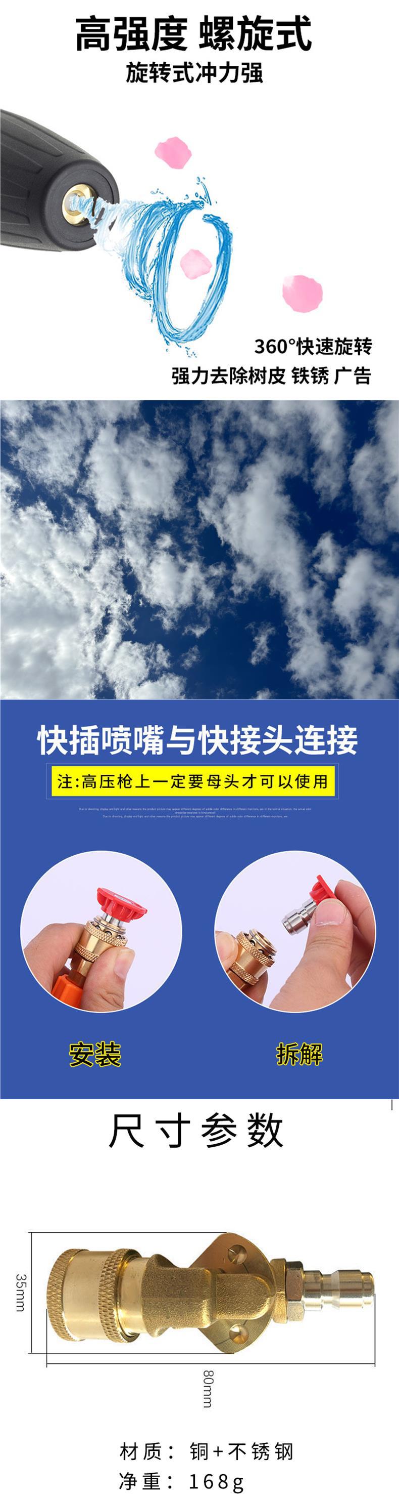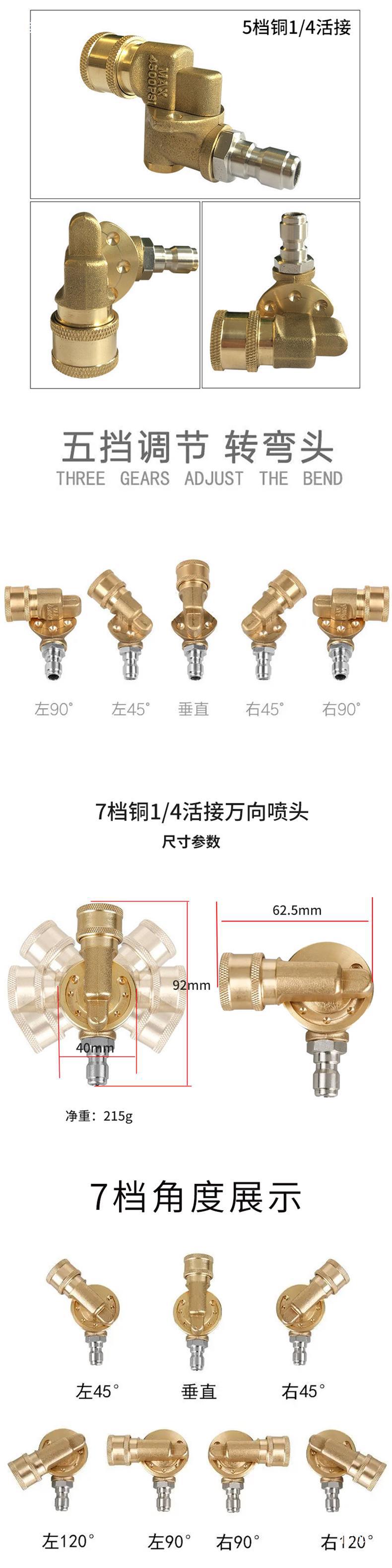 자동차 세탁기 고압 물 총 노즐 1/4 구리 빠른 커넥터 360 도 범용 노즐 고압 청소 자동차 섀시