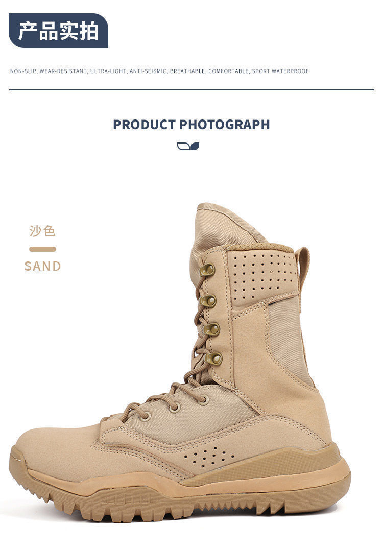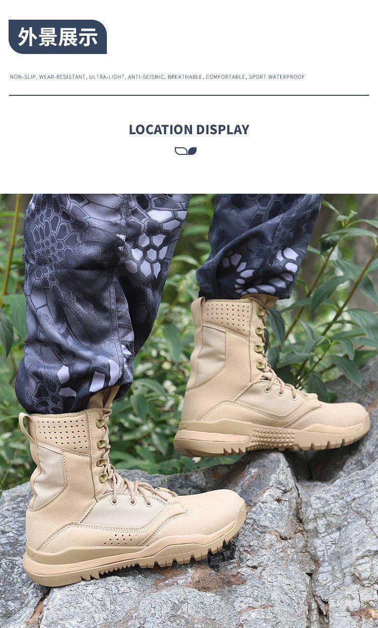 야외 하이킹 부츠 사막 하이킹 부츠 남자 군사 팬 신발 전술 부츠 전투 훈련 부츠 cqb 미끄럼 방지 훈련 부츠