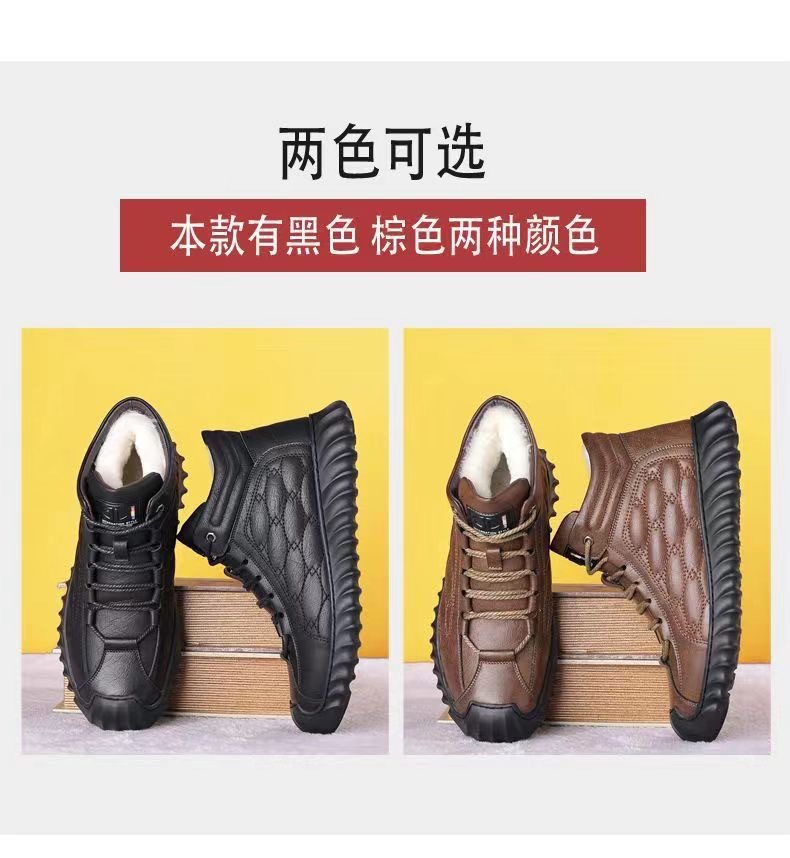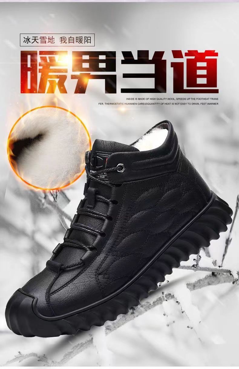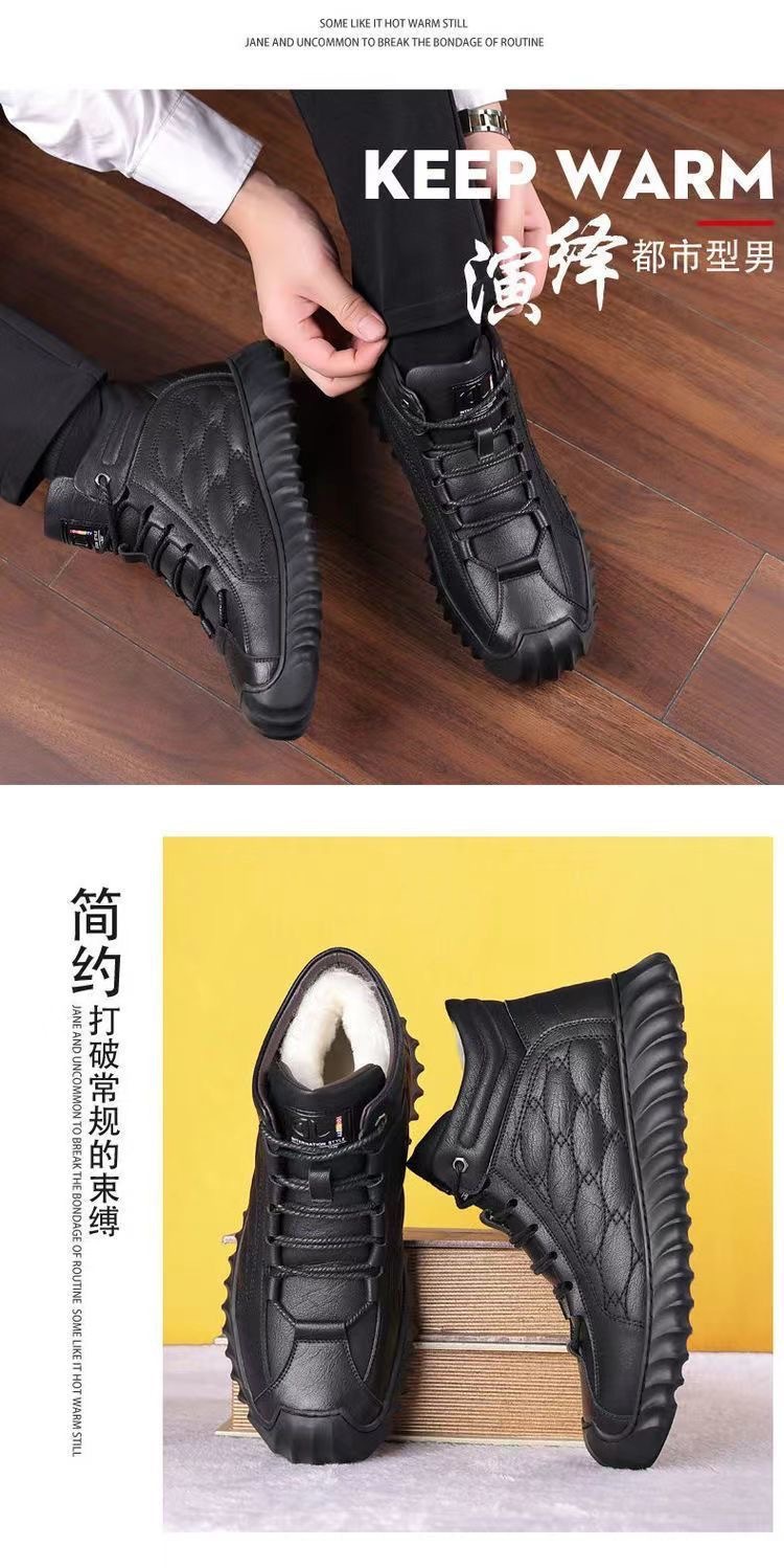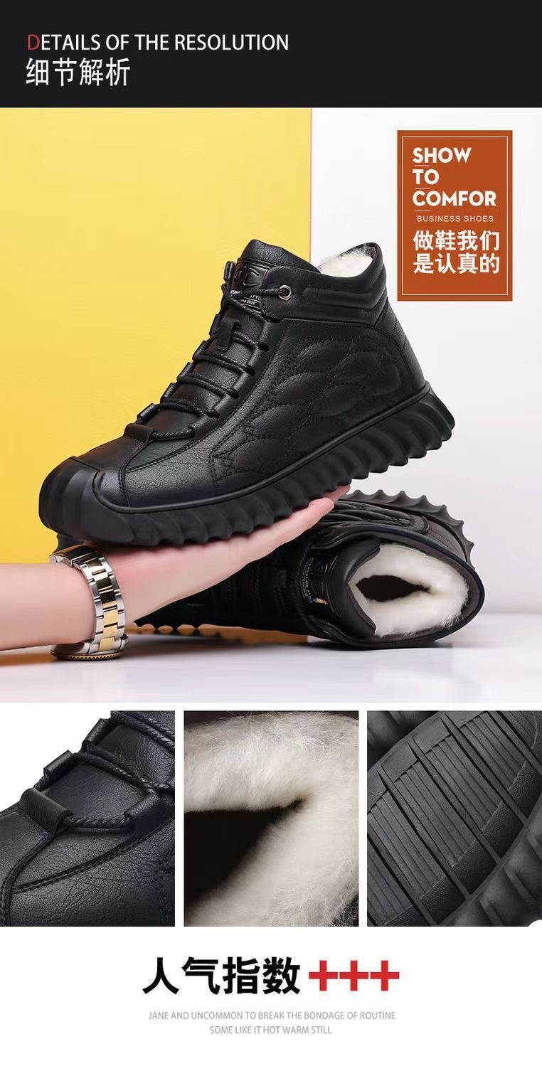스노우 부츠 남성용 기모 따뜻한 하이탑 캐주얼 가죽 신발 소프트 솔 스포츠 캐주얼 신발 올매치 유행 겨울 코튼 신발