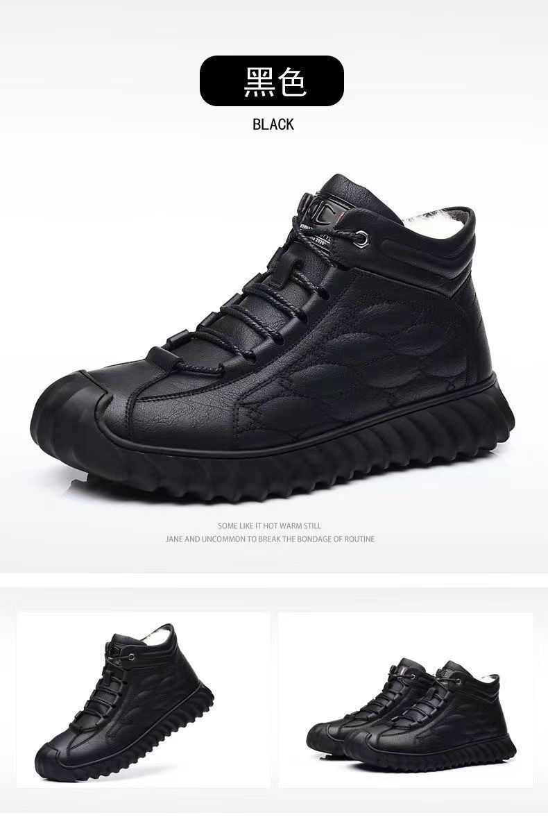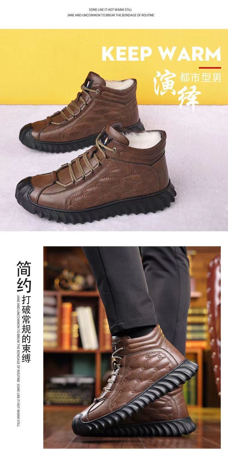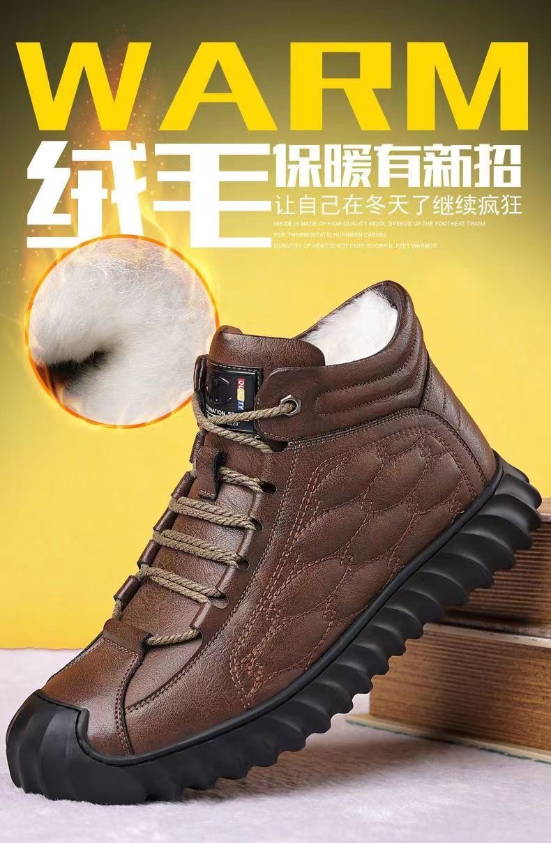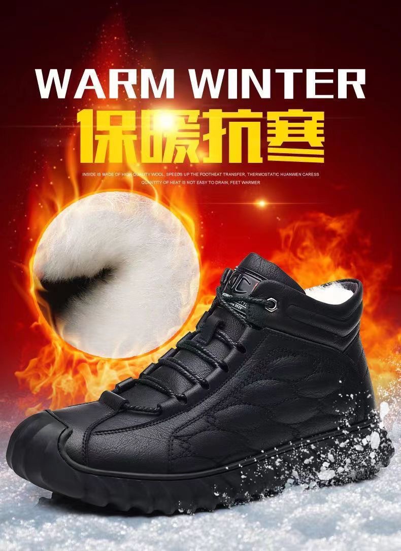 스노우 부츠 남성용 기모 따뜻한 하이탑 캐주얼 가죽 신발 소프트 솔 스포츠 캐주얼 신발 올매치 유행 겨울 코튼 신발
