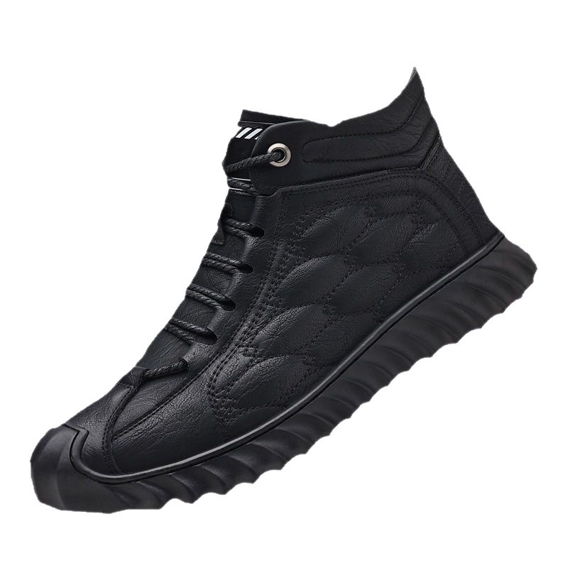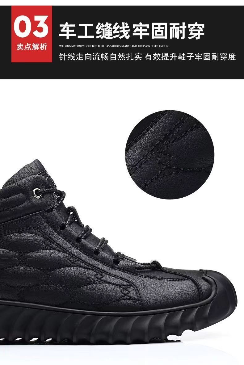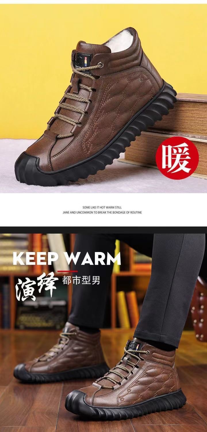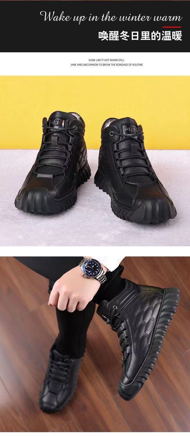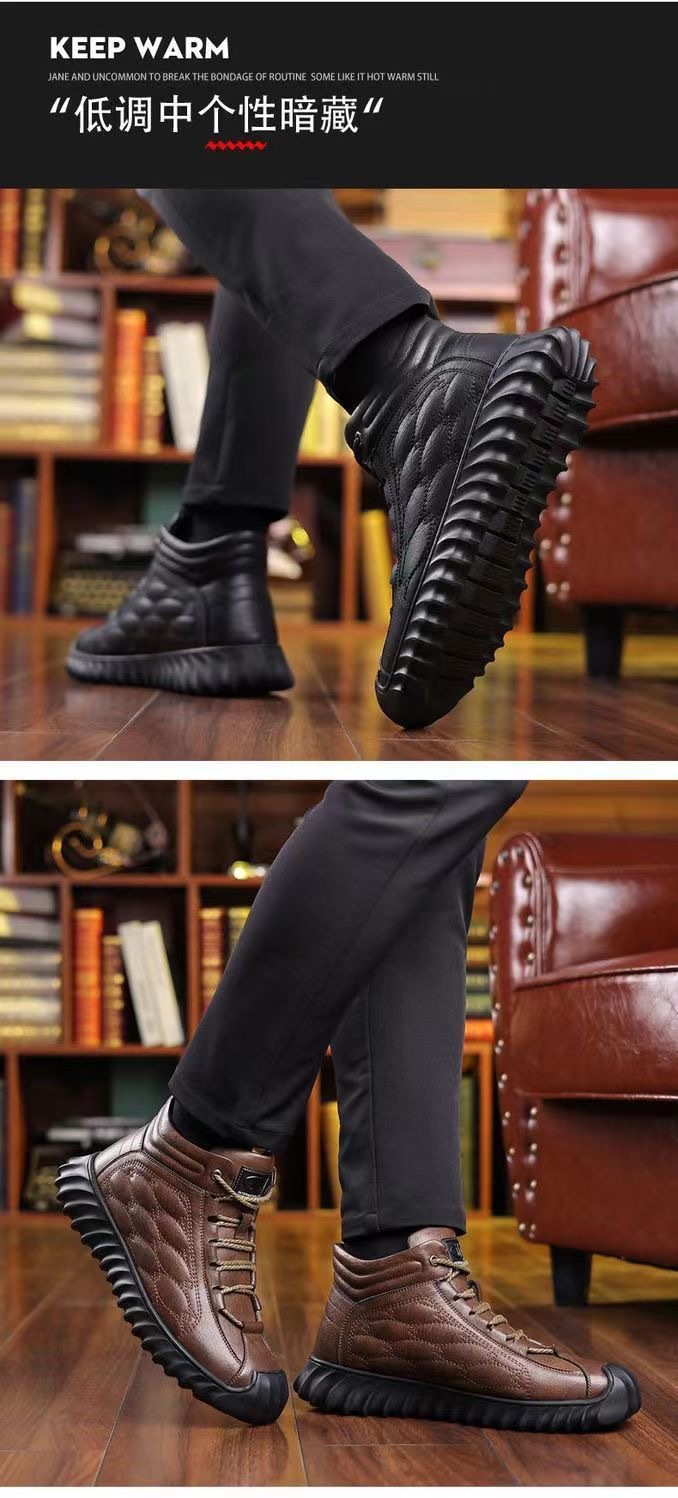 스노우 부츠 남성용 기모 따뜻한 하이탑 캐주얼 가죽 신발 소프트 솔 스포츠 캐주얼 신발 올매치 유행 겨울 코튼 신발