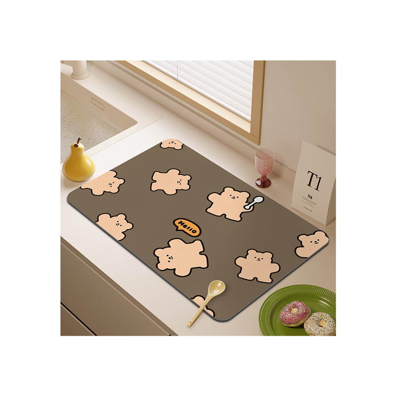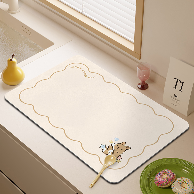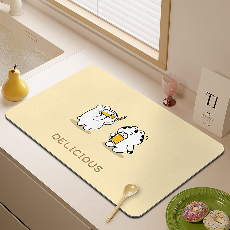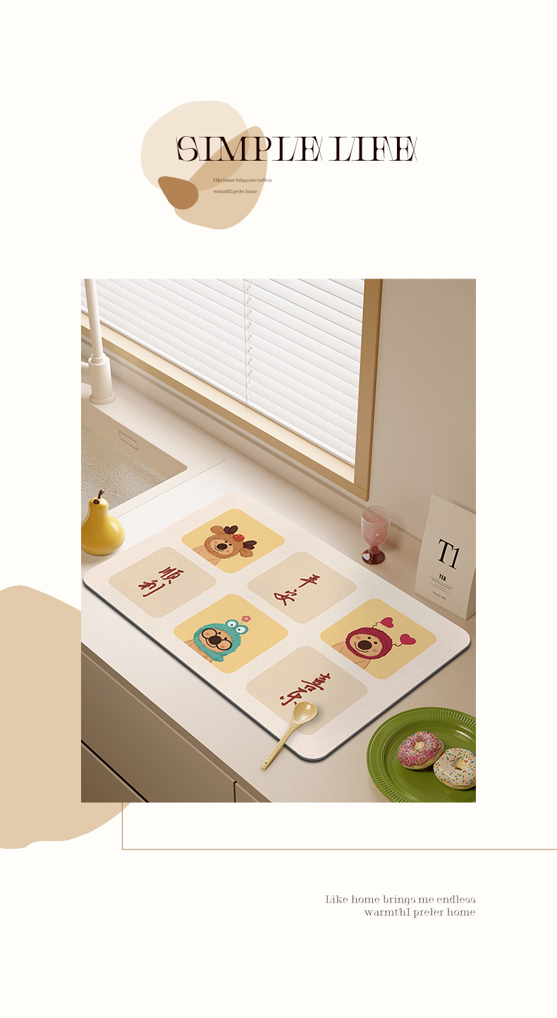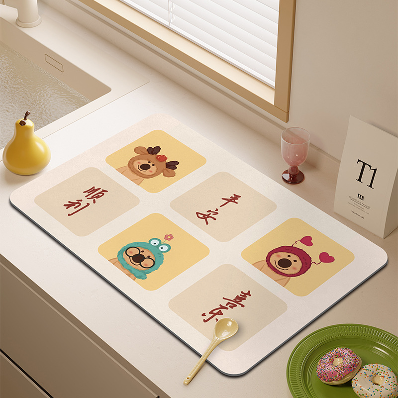 만화 주방 배수 매트 가정용 카운터 탑 다이아몬드 진흙 흡수 매트 커피 기계 미끄럼 방지 매트 빠른 건조 그릇 및 플레이트 코스터