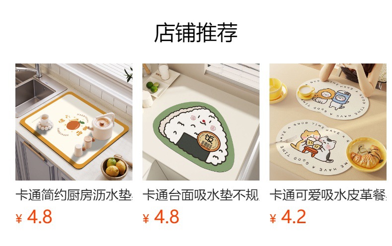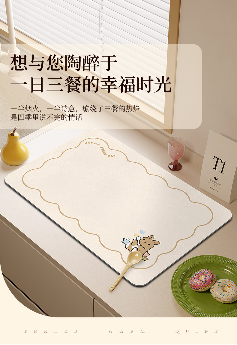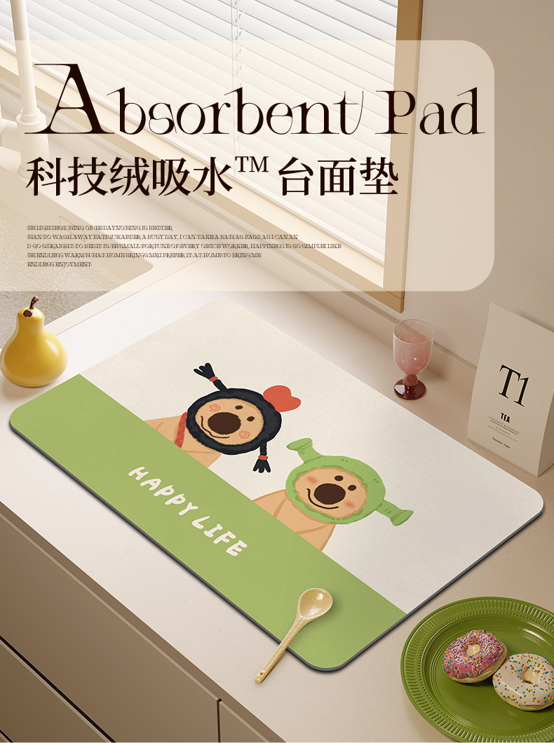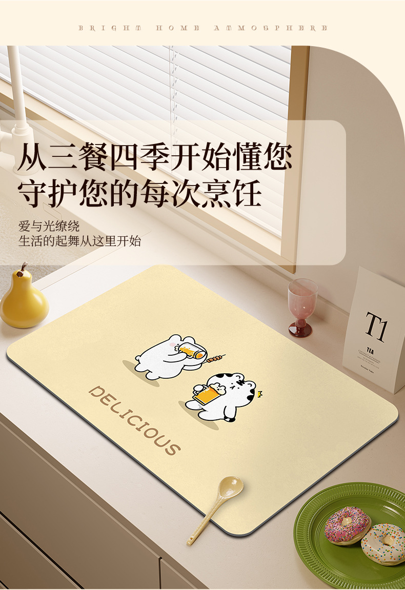 만화 주방 배수 매트 가정용 카운터 탑 다이아몬드 진흙 흡수 매트 커피 기계 미끄럼 방지 매트 빠른 건조 그릇 및 플레이트 코스터