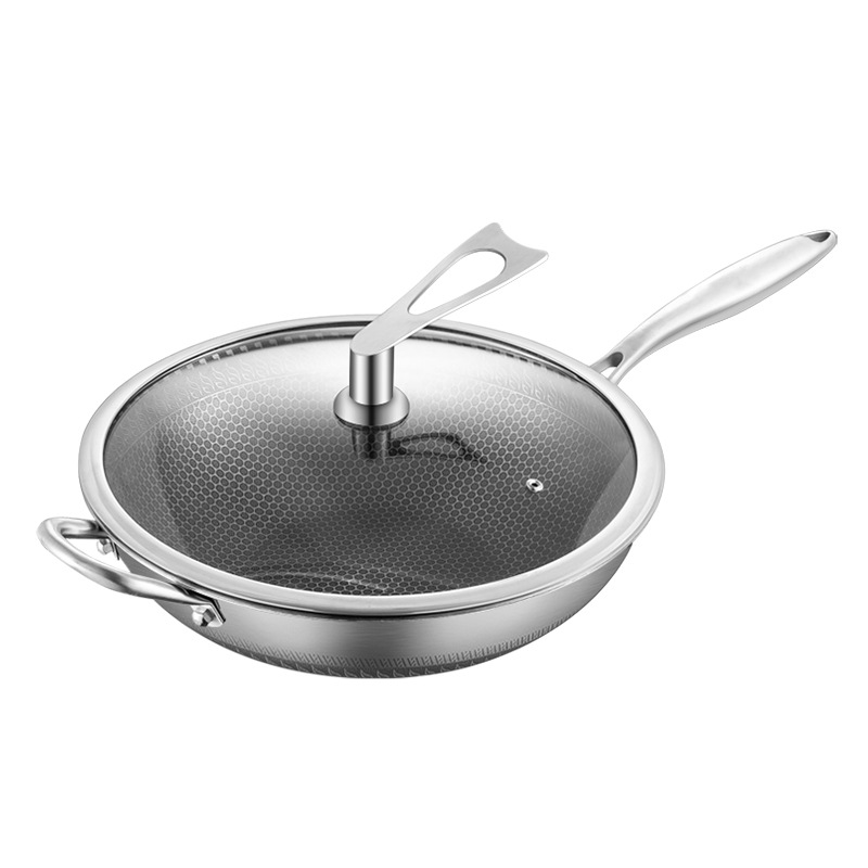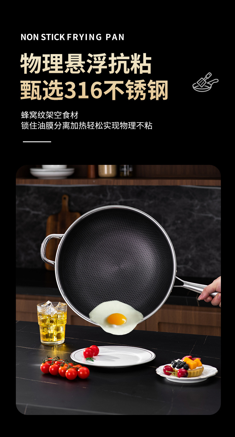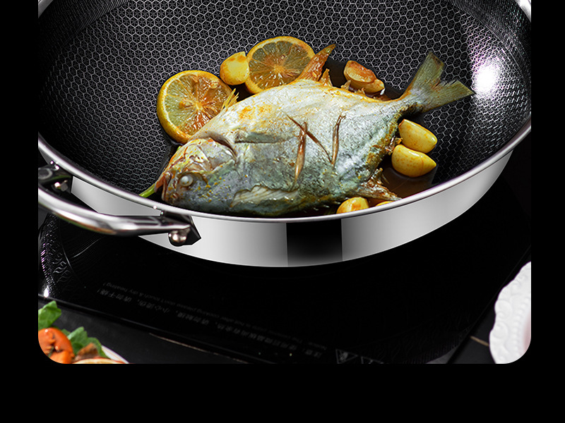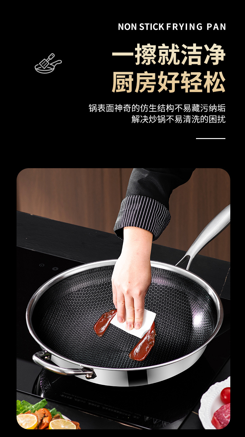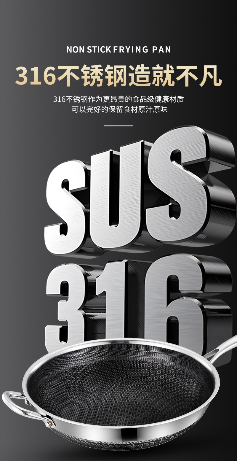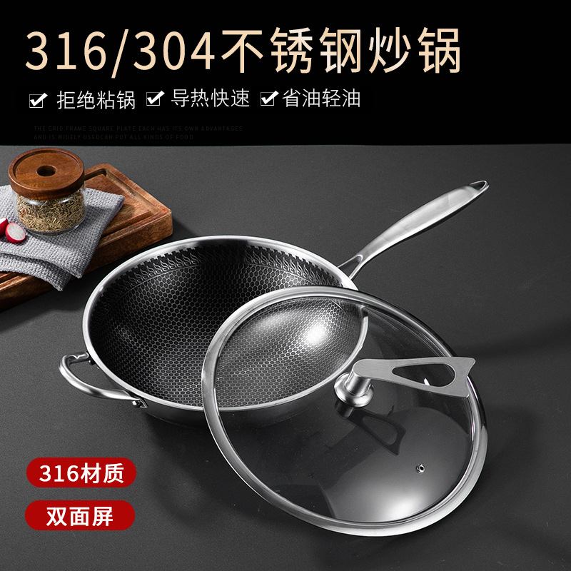 엄선된 316 스테인리스 스틸 프라이팬, 양면 벌집 무늬, 논스틱, 가정용, 인덕션 사용 가능, 튀김팬, 볶음팬