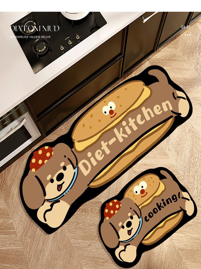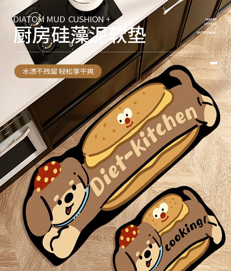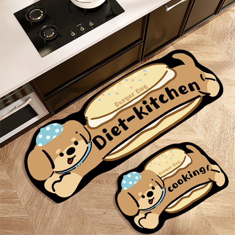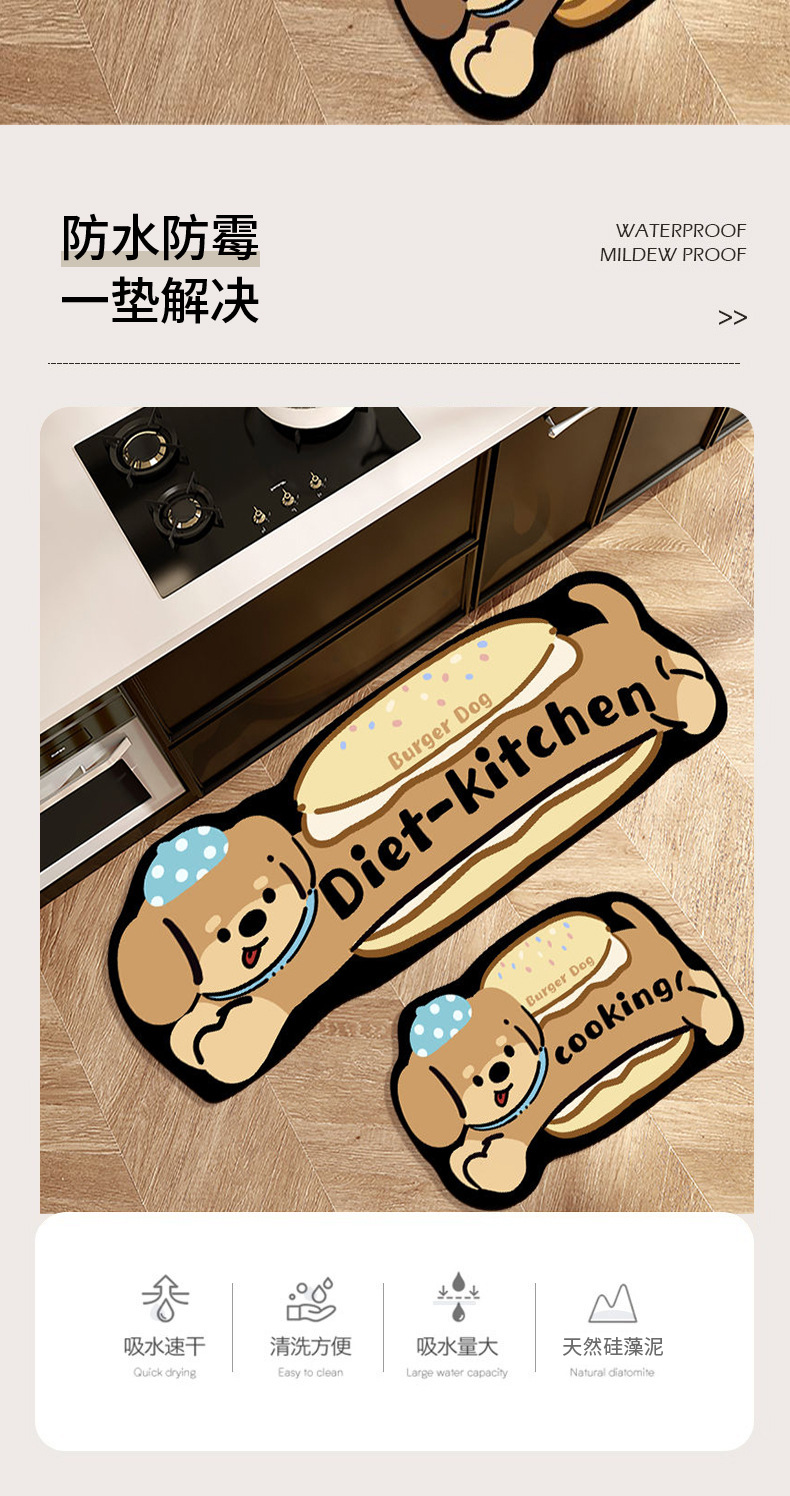 주방 바닥 매트 만화 강아지 물 흡수 오일 저항하는 더러운 바닥 매트 가정용 화장실 욕실 미끄럼 방지 발 매트 관리
