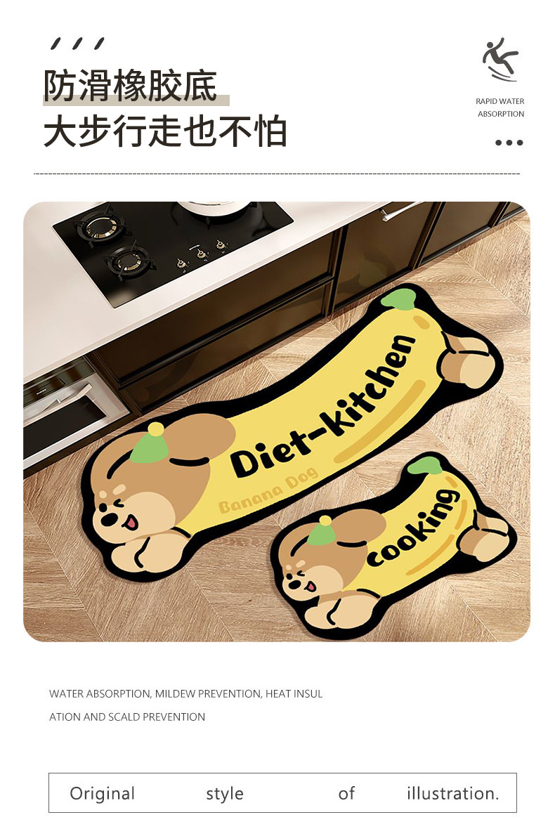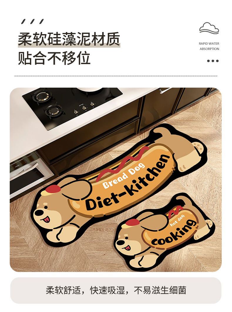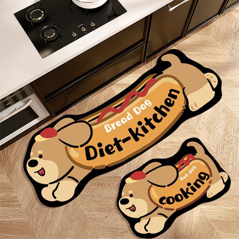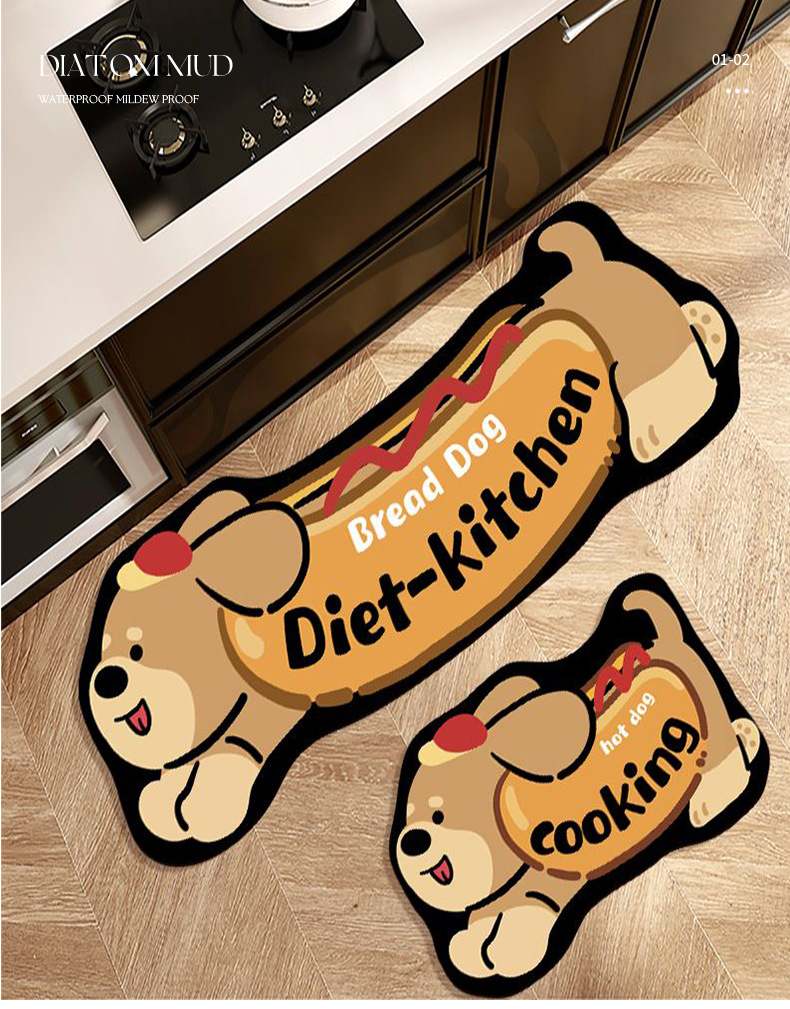 주방 바닥 매트 만화 강아지 물 흡수 오일 저항하는 더러운 바닥 매트 가정용 화장실 욕실 미끄럼 방지 발 매트 관리