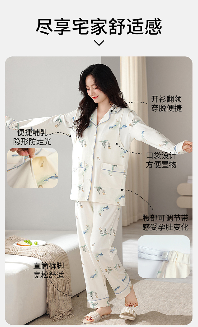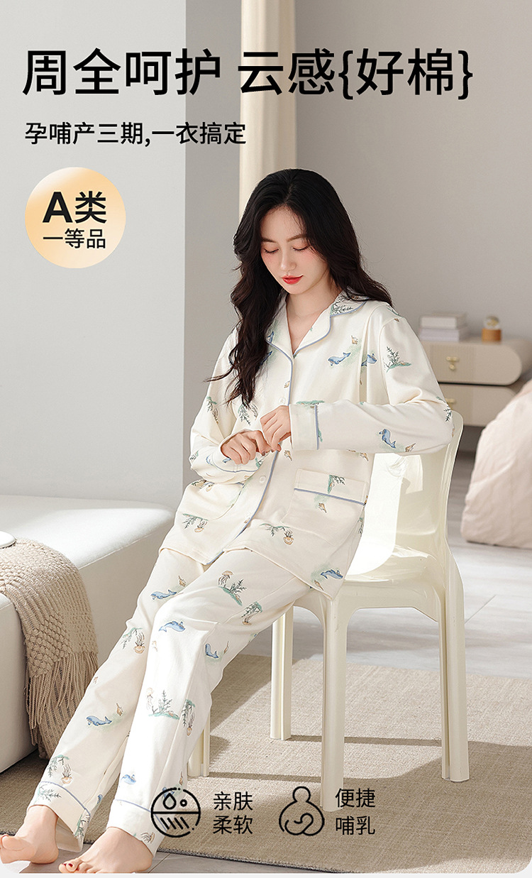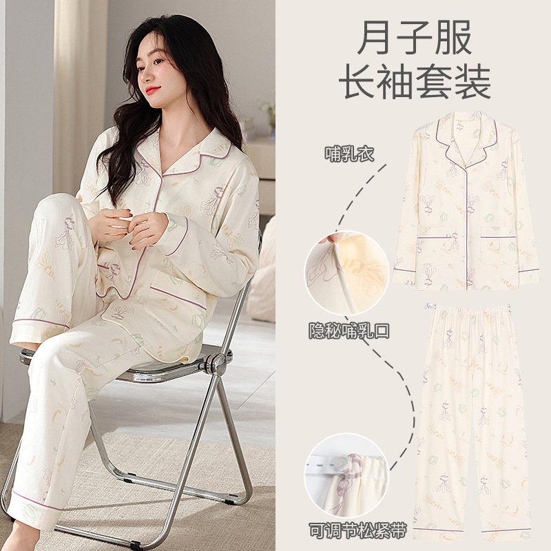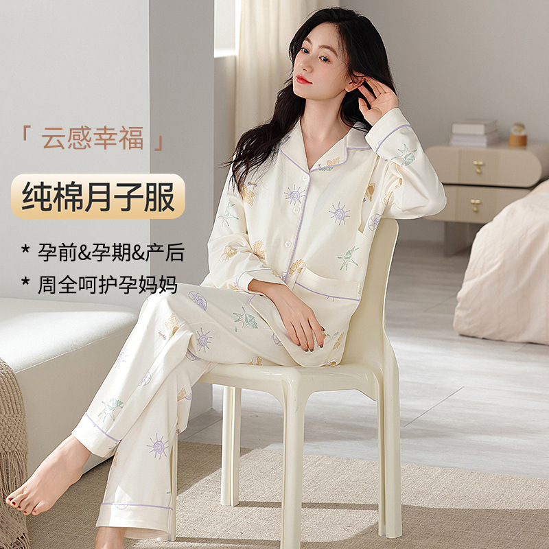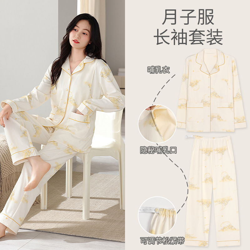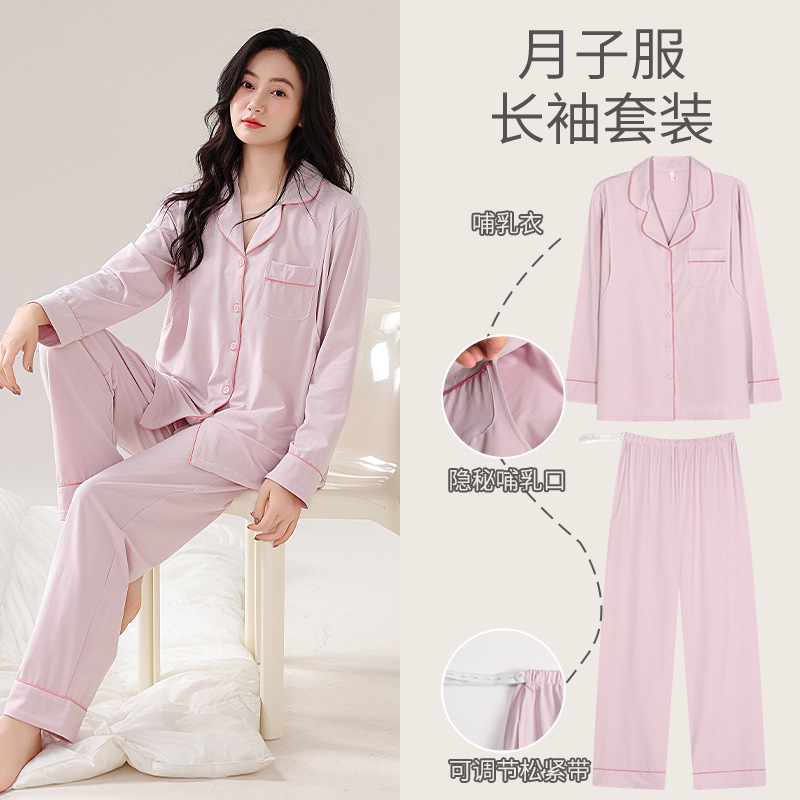 100% 면 산후복, A급 산모 및 유아용 순면 봄, 가을 통기성 가을, 겨울 순면 임산부 수유 잠옷 세트