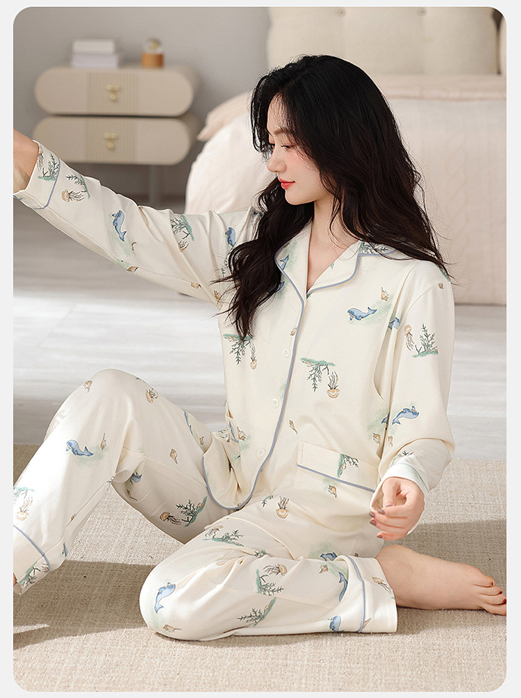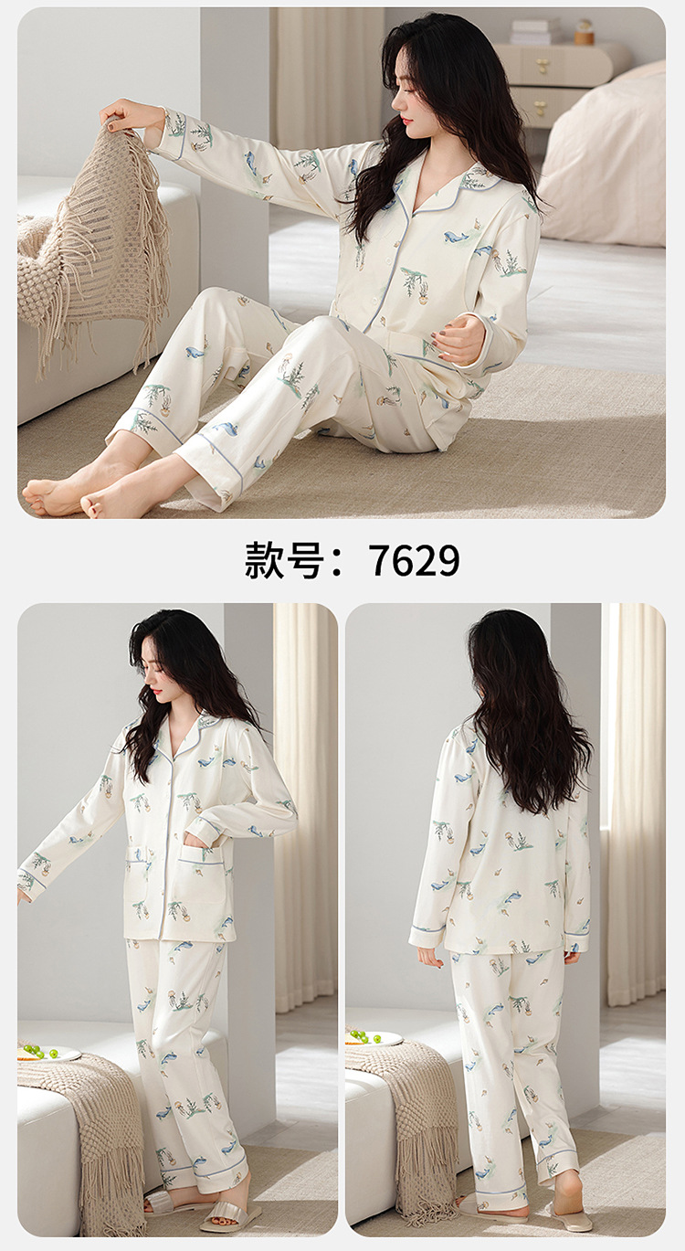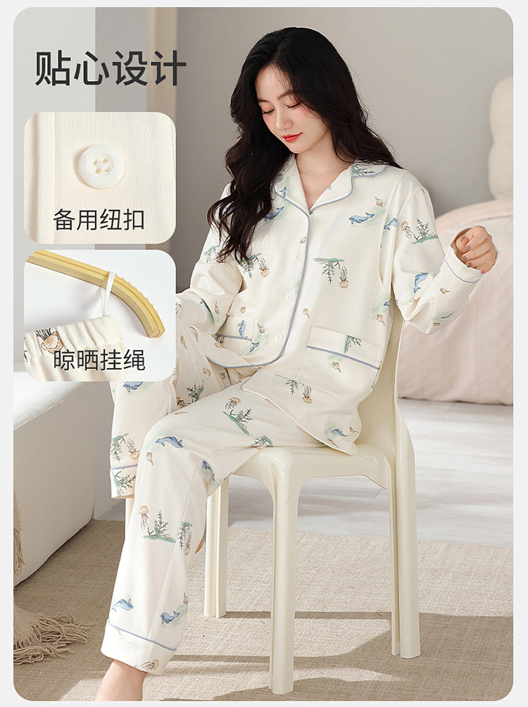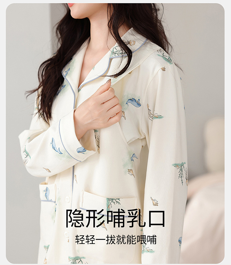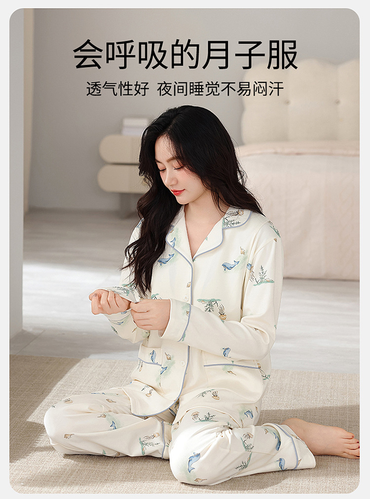 100% 면 산후복, A급 산모 및 유아용 순면 봄, 가을 통기성 가을, 겨울 순면 임산부 수유 잠옷 세트