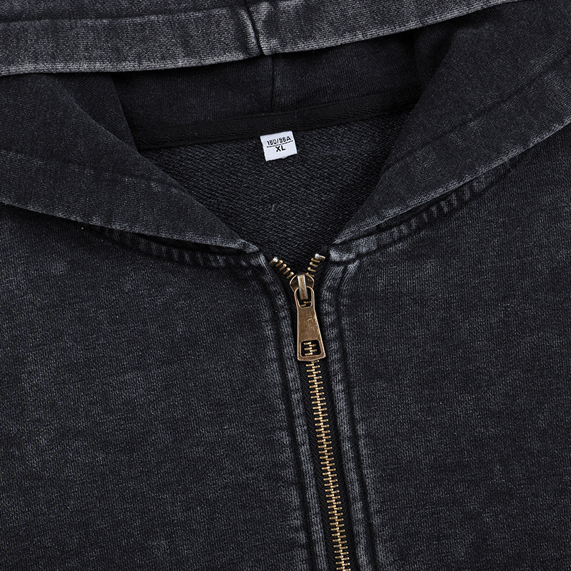 아마존 워싱 디스트레스드 후드 지퍼 스웨트셔츠