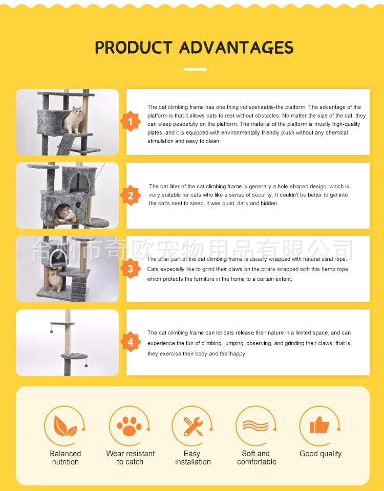 Qiou 맞춤형 애완 동물 목가적 색상 등나무 커피 나무 테디 벨벳 클라이밍 프레임