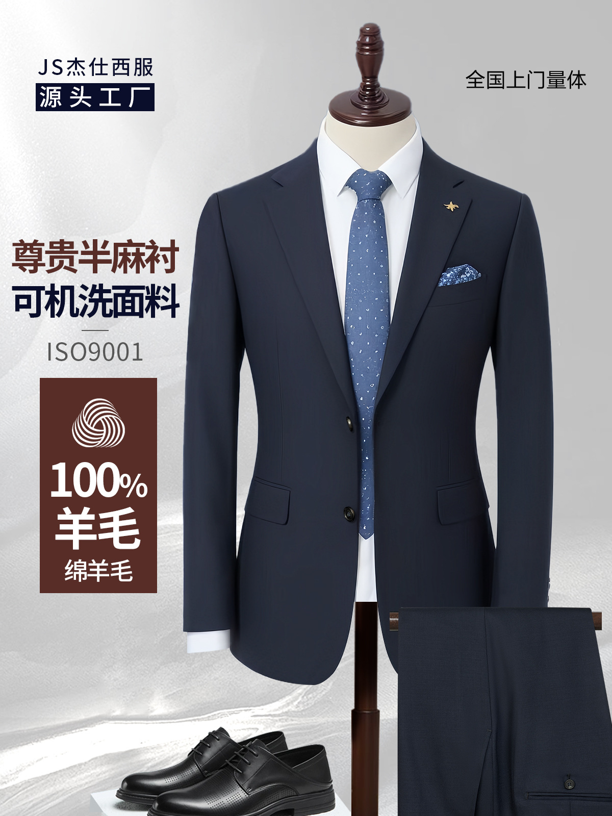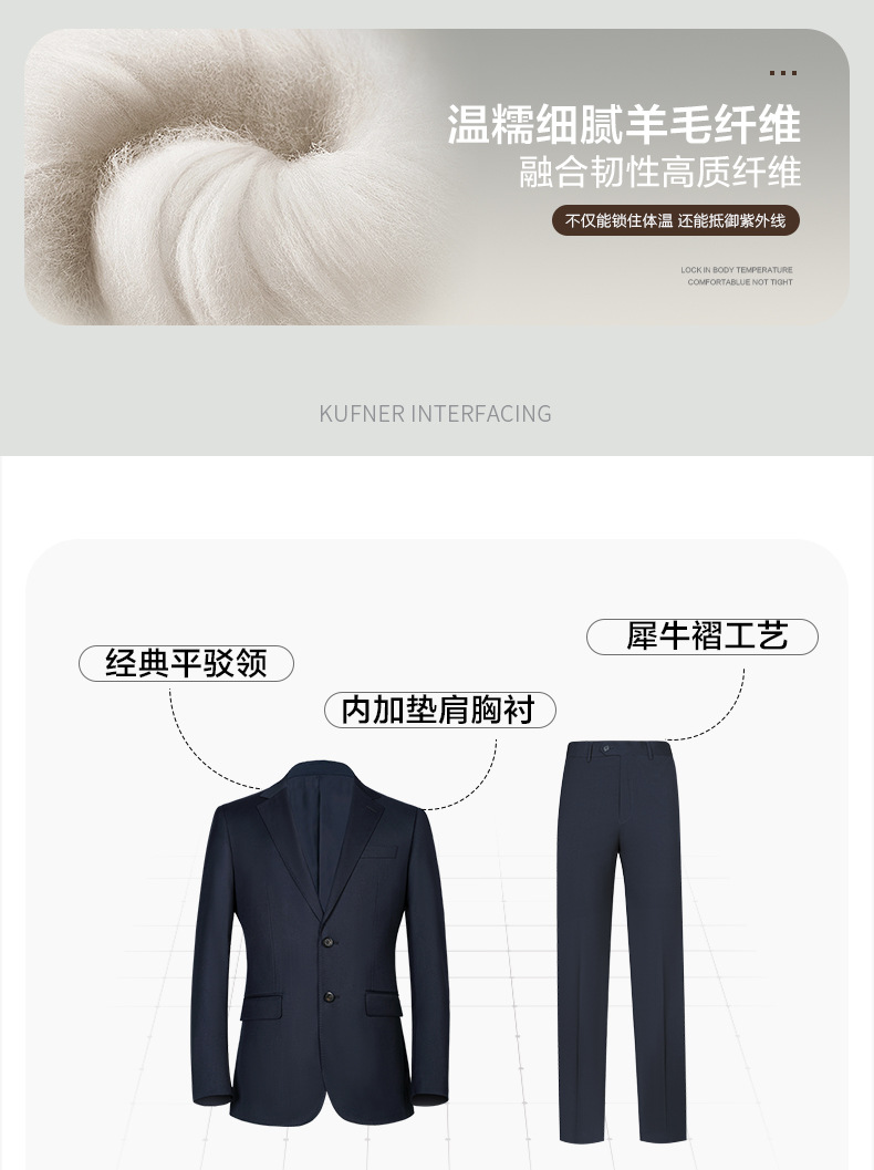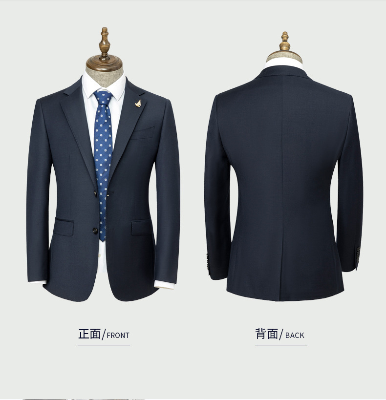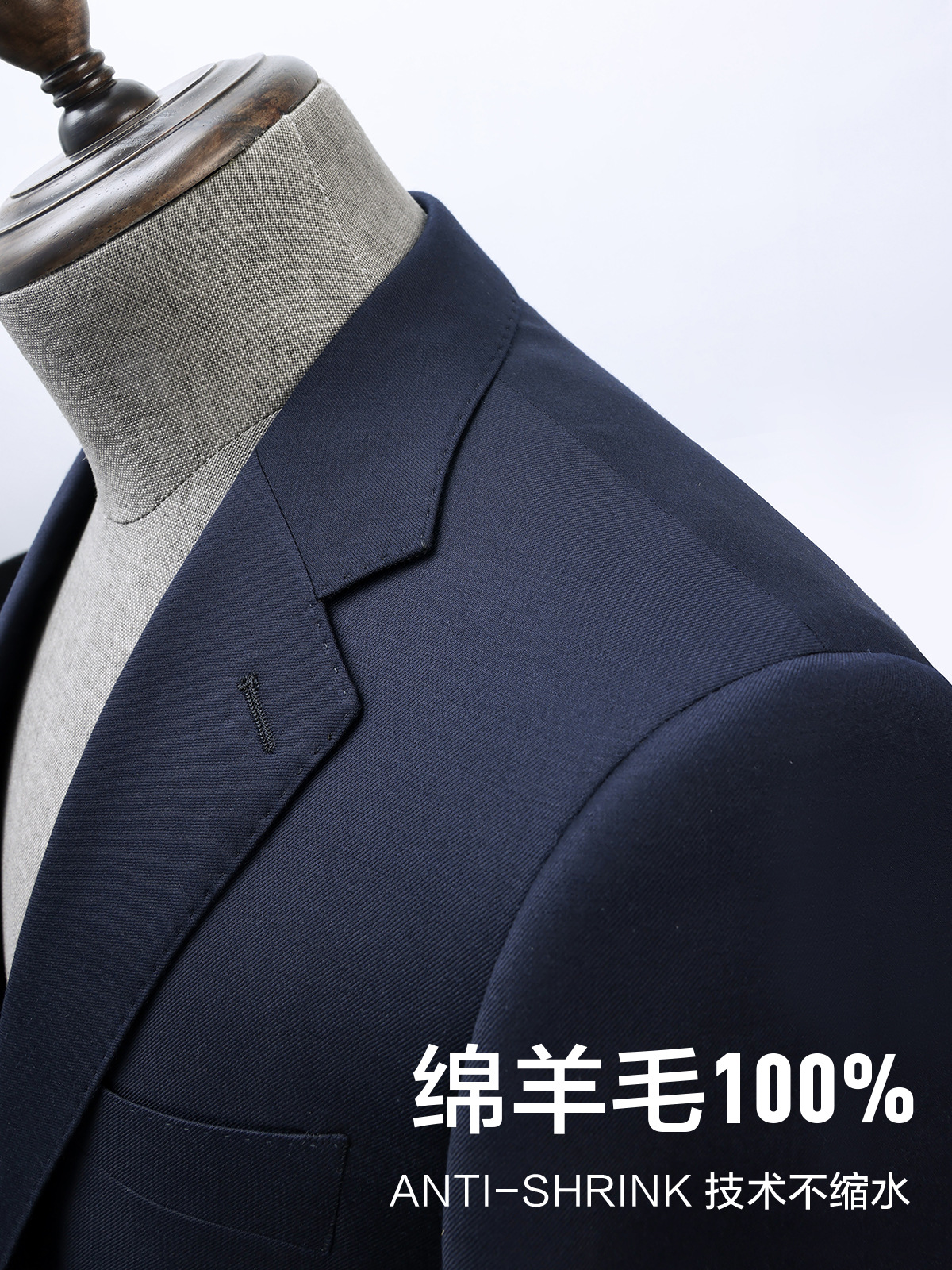 100% 울, 세탁기로 세탁 가능한 반마 안감 - 네이비 블루 슈트