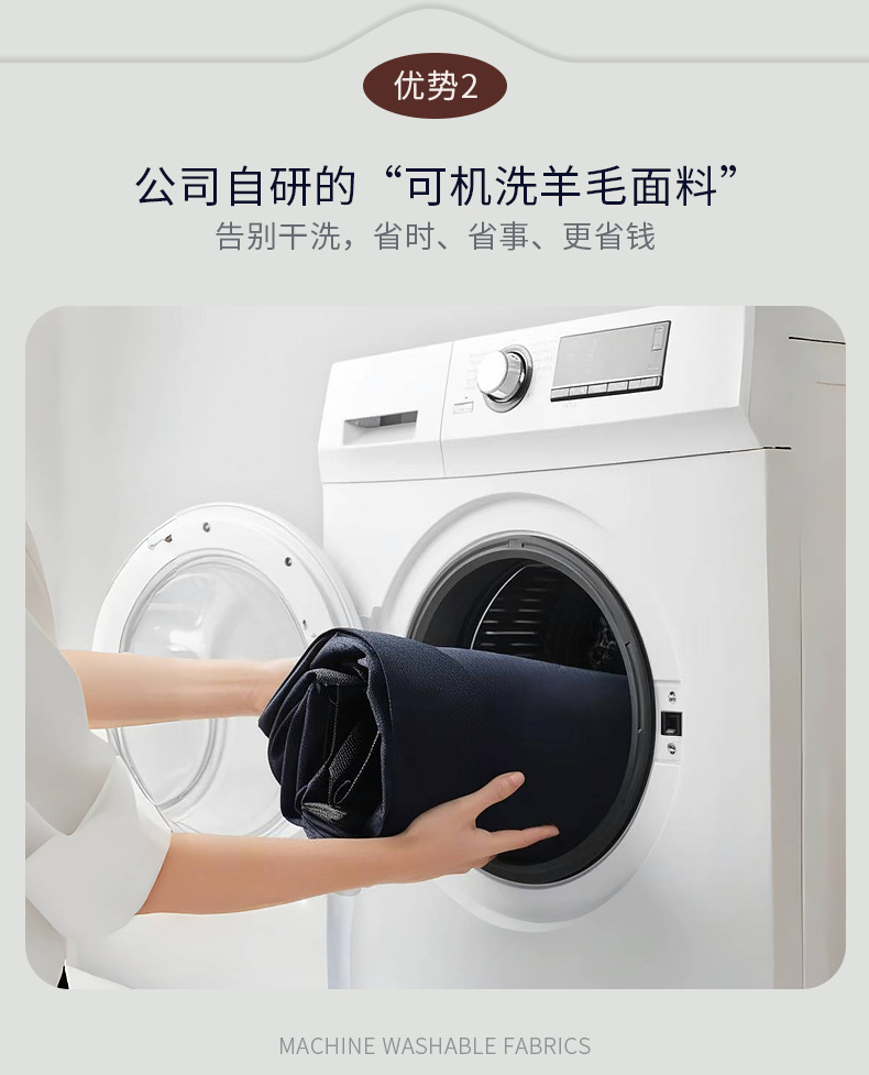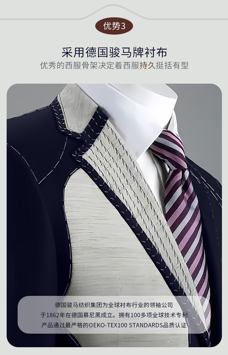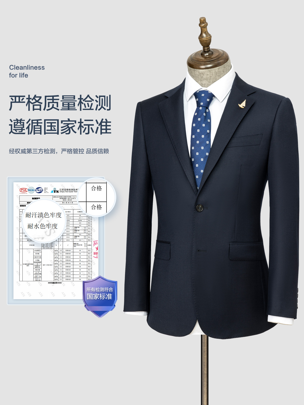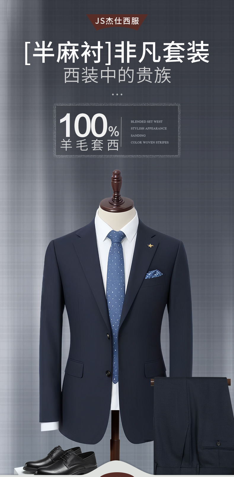 100% 울, 세탁기로 세탁 가능한 반마 안감 - 네이비 블루 슈트