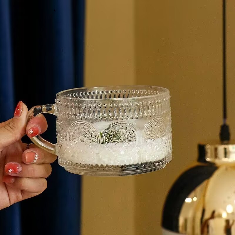 Jingyu in 오트밀 아침 식사 컵 높은 색상 값 유리 컵 우유 시리얼 컵 인스턴트 국수 그릇 디저트 샐러드 그릇