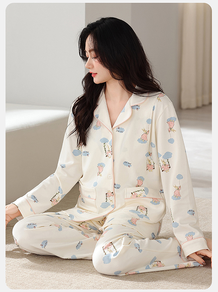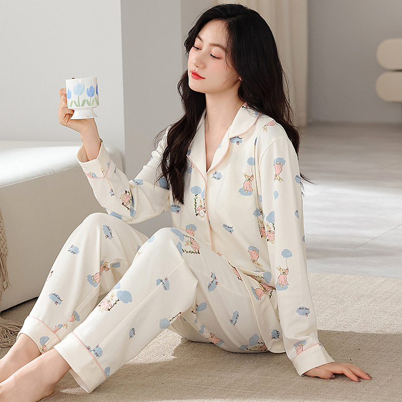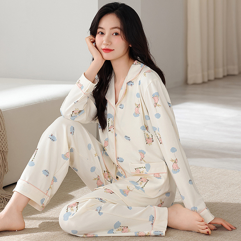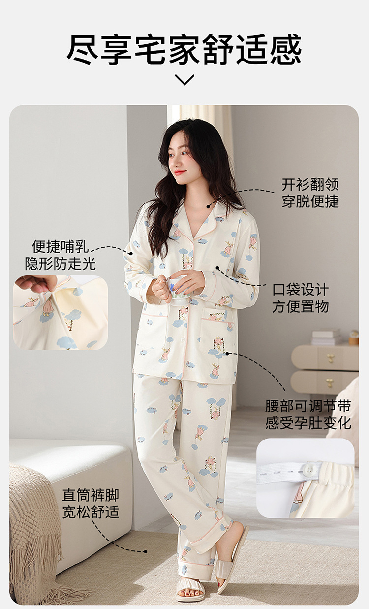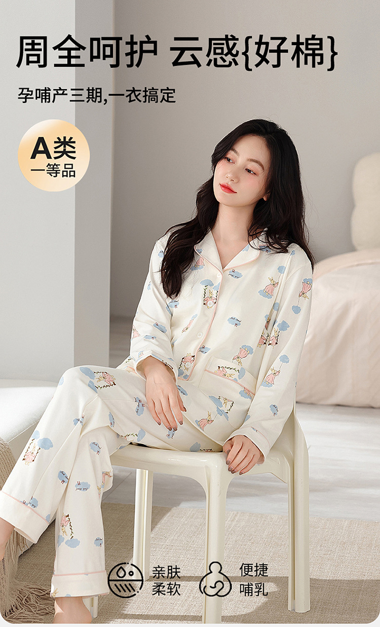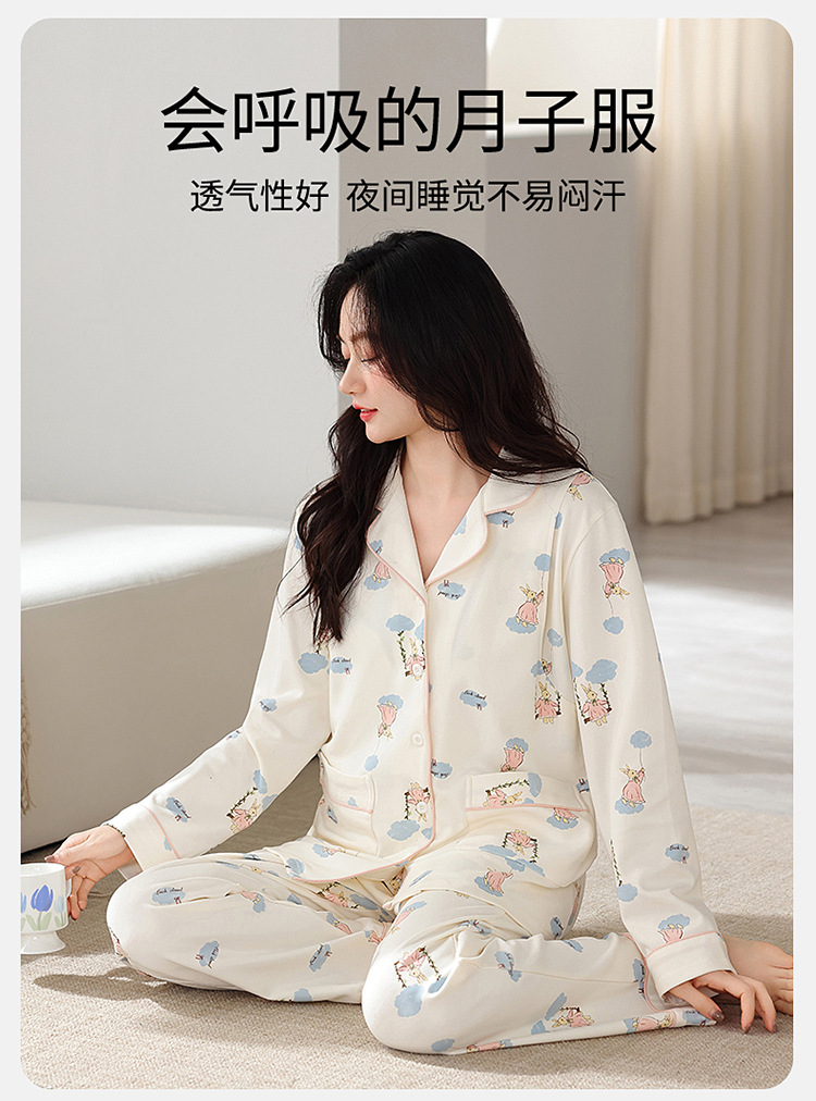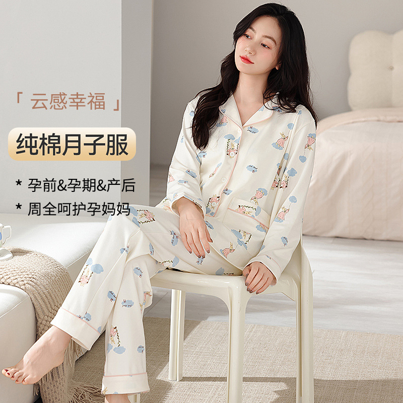 새 가을 여성 순면 산후간호 임산부 잠옷 양면 순면 임산부 가을과 겨울 월간 의류