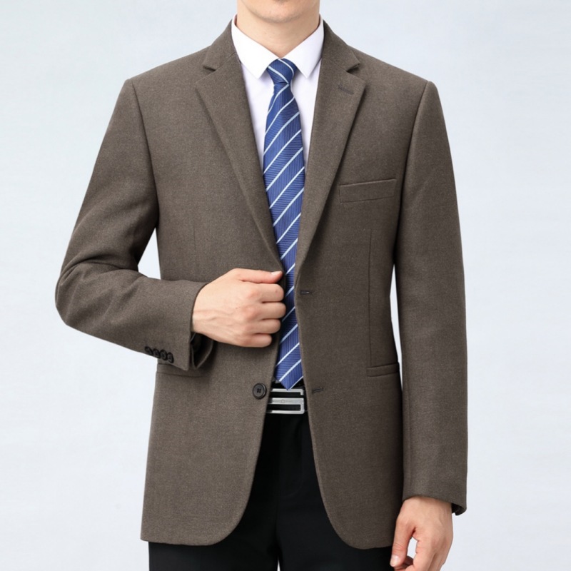 고급 양모 세트 남자 싱글 재킷 가을과 겨울 새로운 중년 캐주얼 세트 코트 양모 중간 두꺼운 싱글 웨스턴 재킷