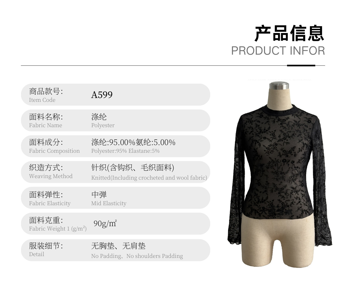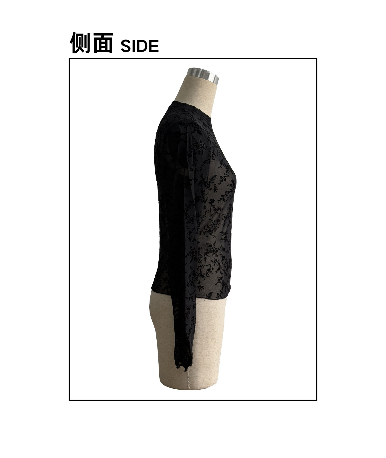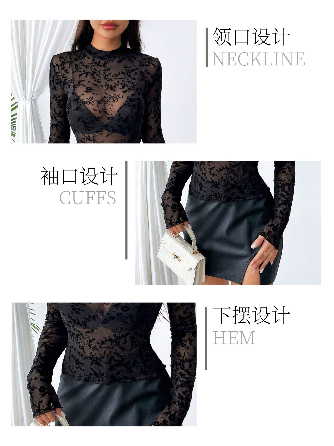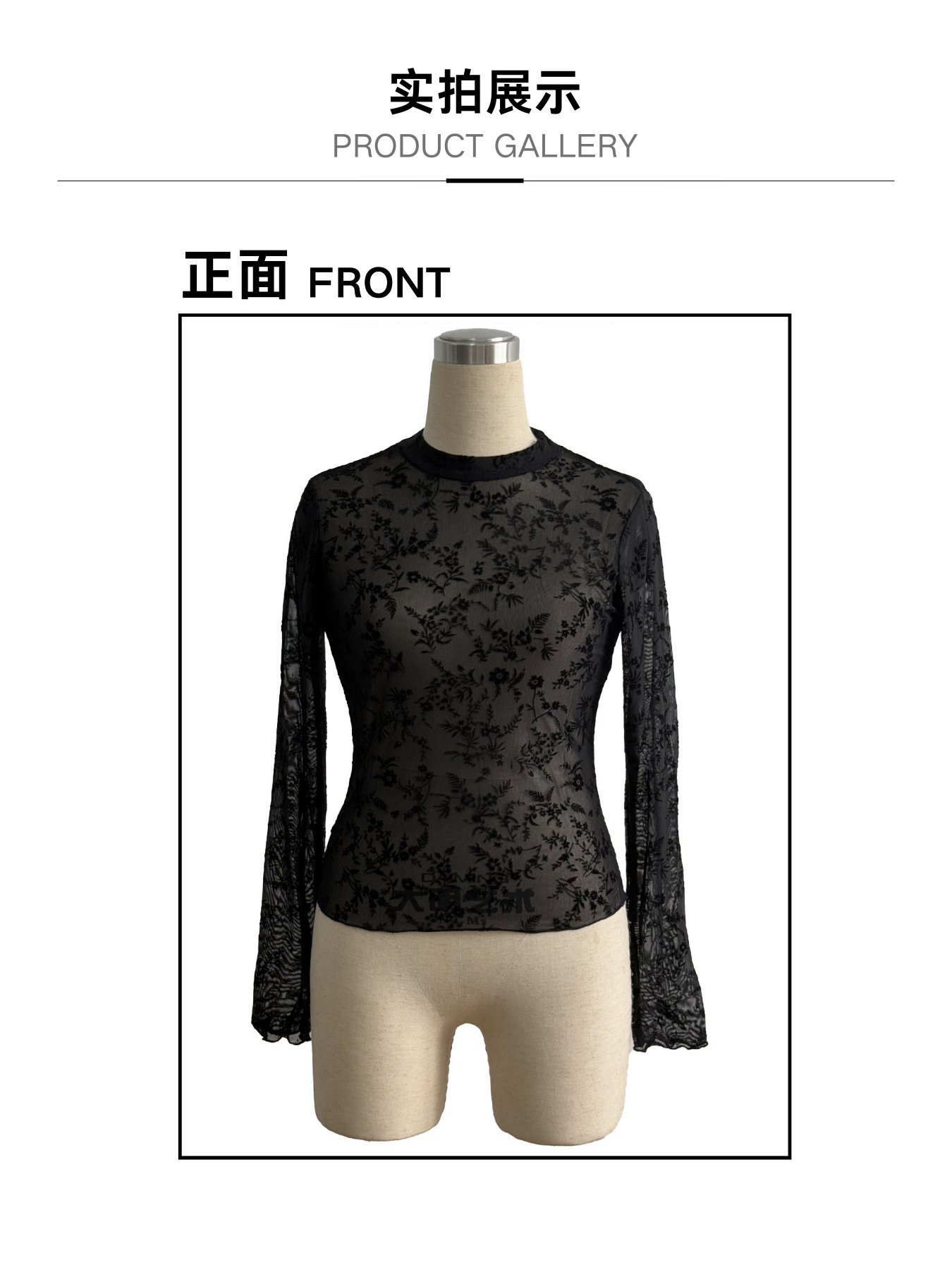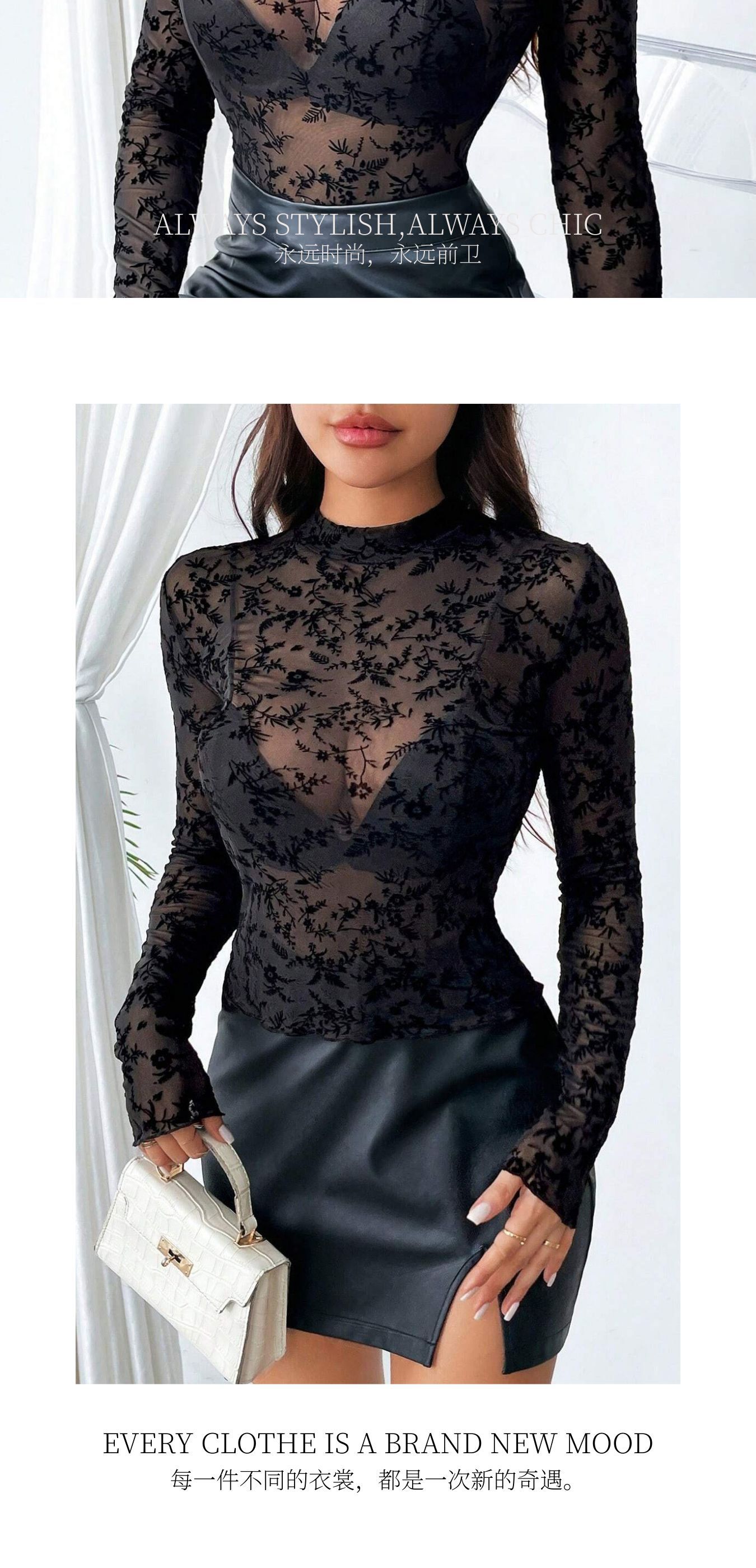 유럽과 미국의 국경을 넘는 2026년 신상품 싱글 레이어 메쉬 소재 작은 스탠드 칼라 플록 프린트 긴팔 여성용 티셔츠