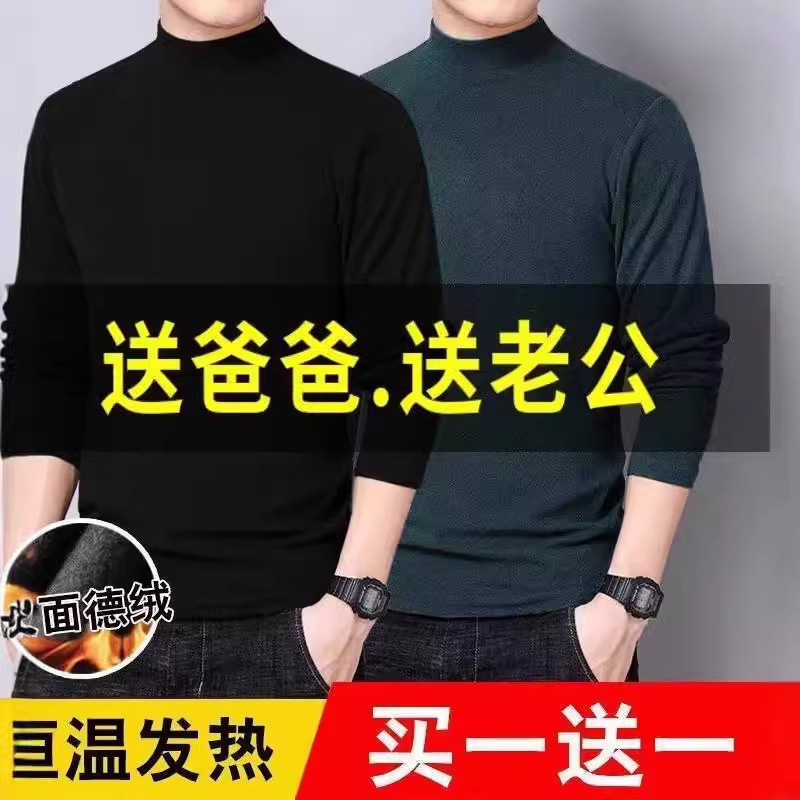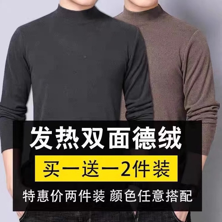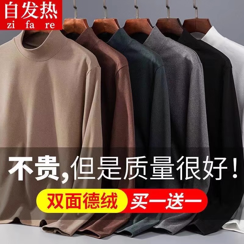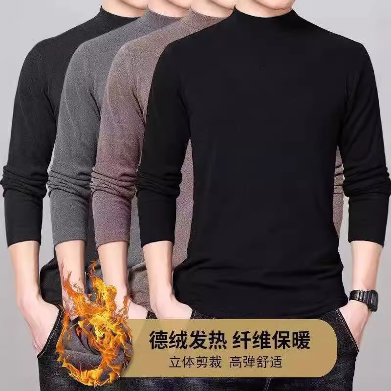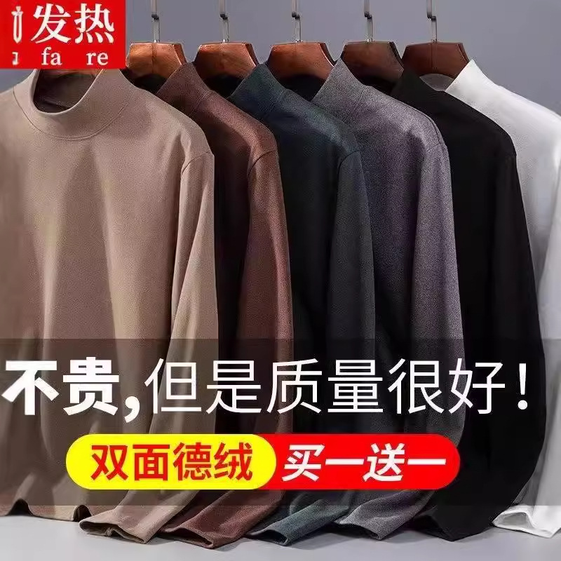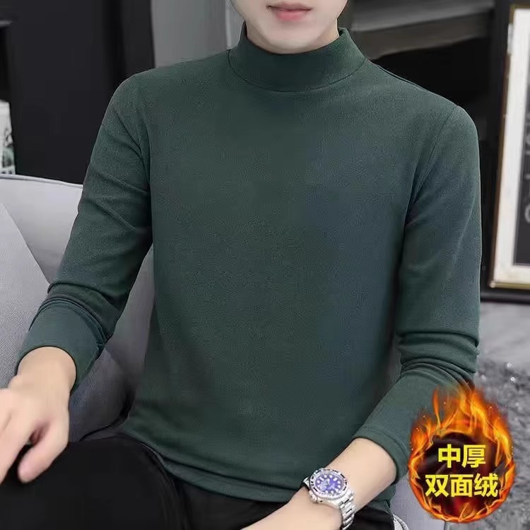 높은 칼라베이스 셔츠 남자의 양면 벨벳 긴팔 티셔츠 가을과 겨울 기모 따뜻한 내두꺼운 건강 옷