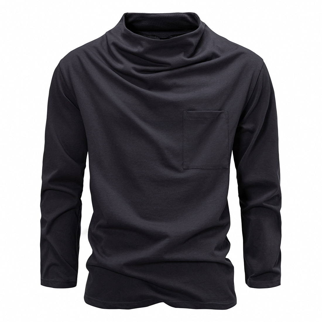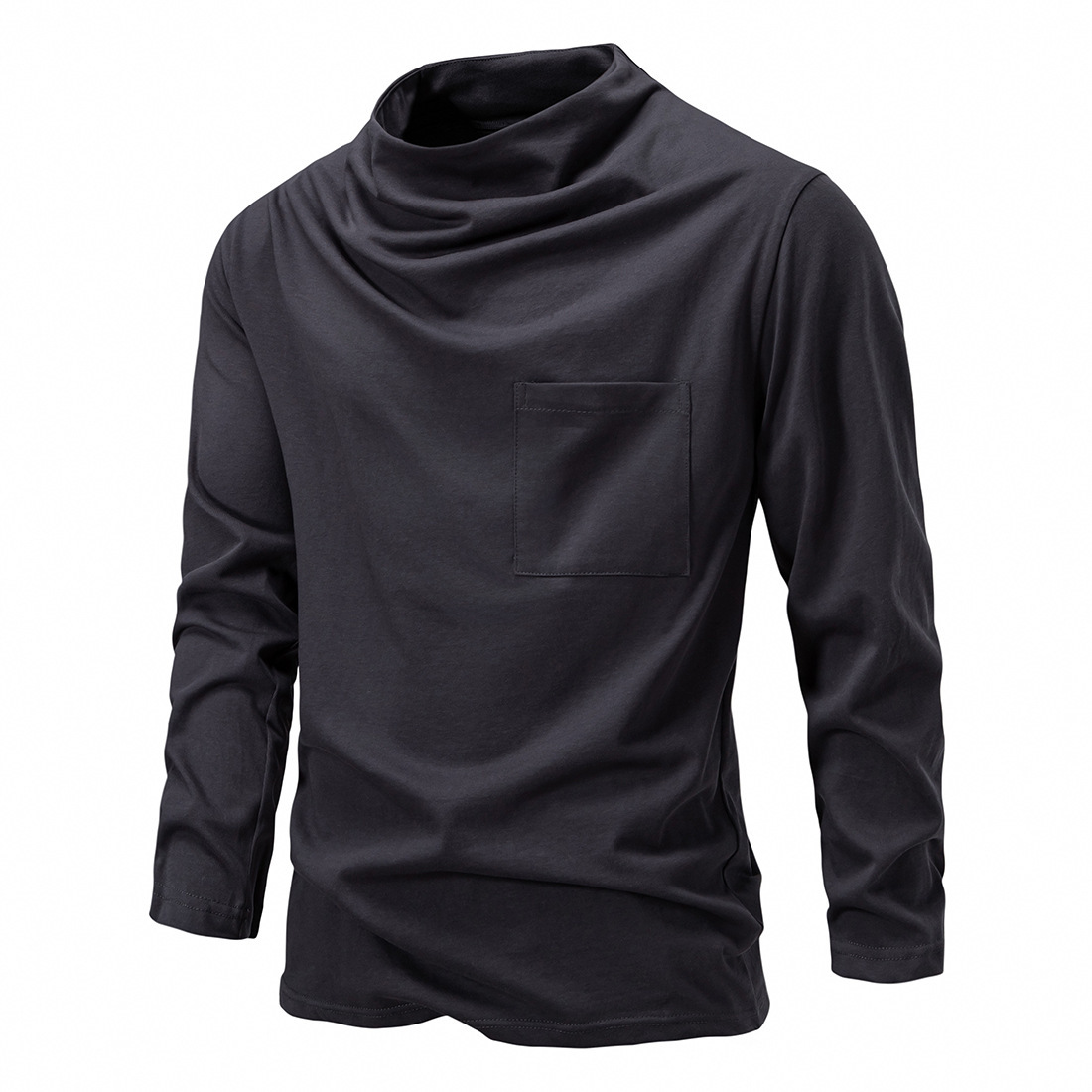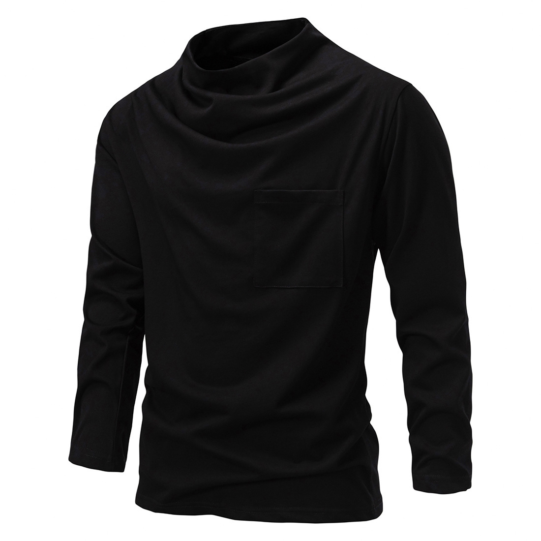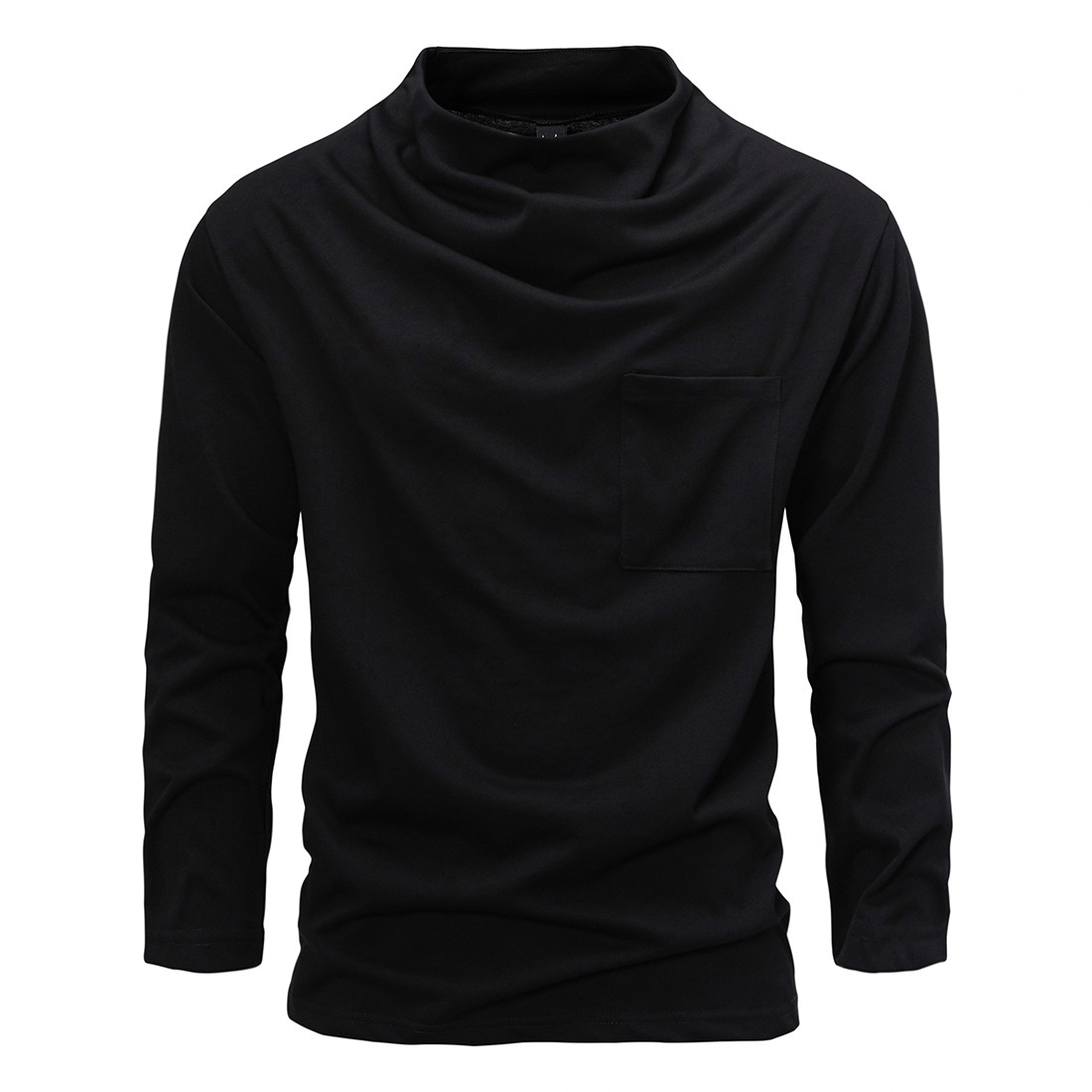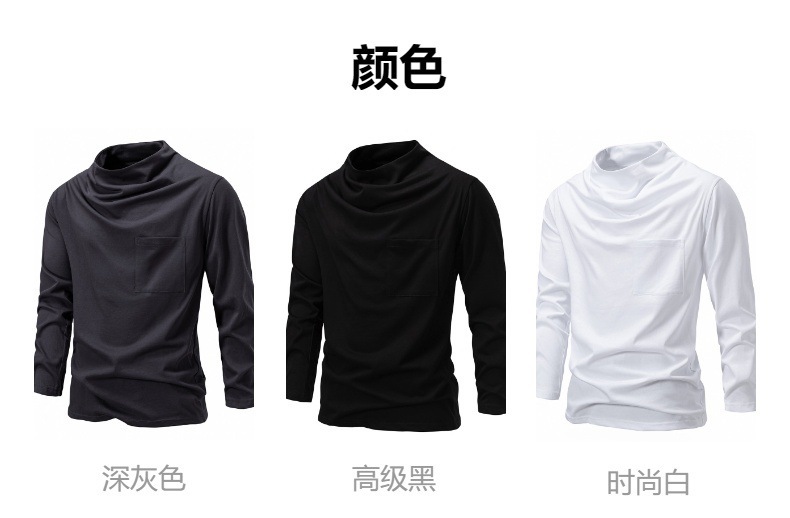 2024 가을 새로운 남성 파일 칼라 패션 긴팔 티셔츠 헤비 코튼 캐주얼 긴 소매면 티셔츠
