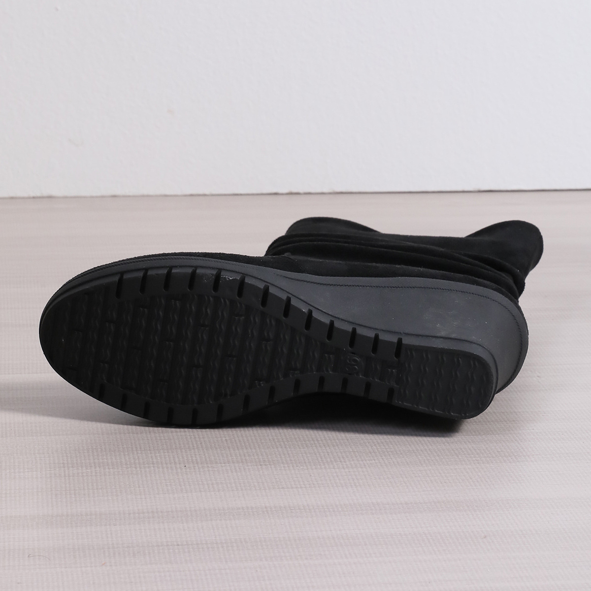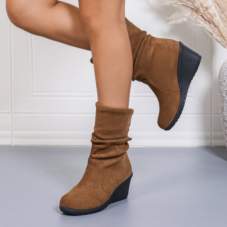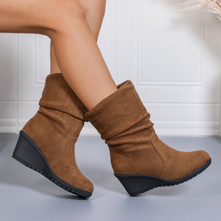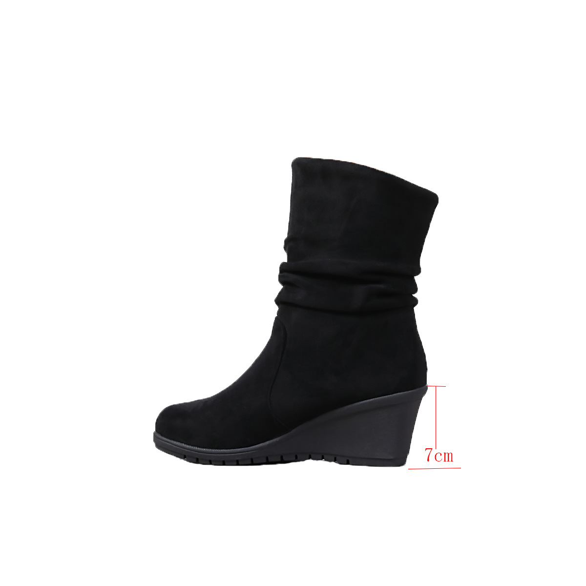 유럽과 미국의 가을 겨울 새로운 라운드 헤드 플러스 사이즈 웨지 슬리브 부츠 여성 대외 무역 솔리드 컬러 로우 부츠 마틴 부츠