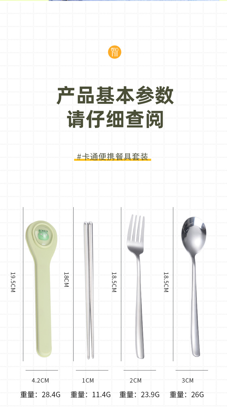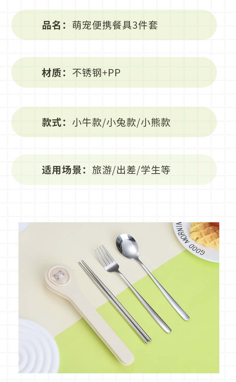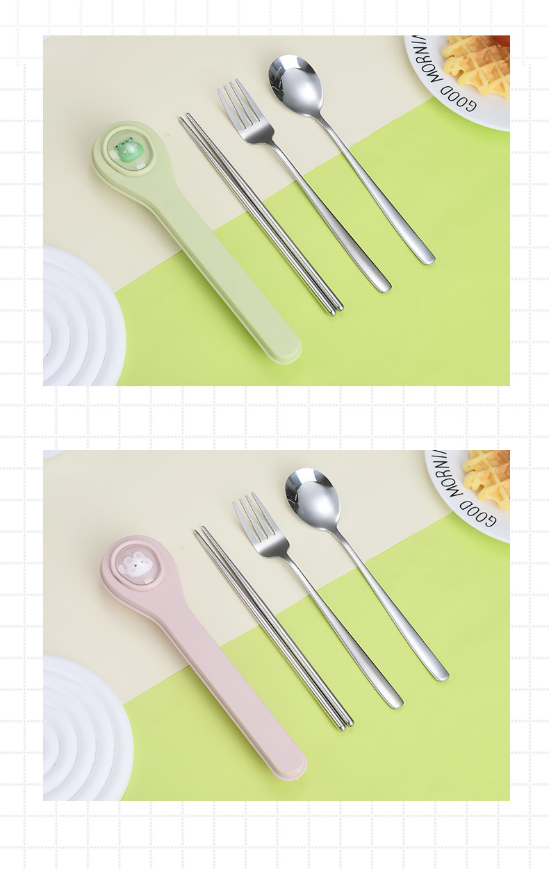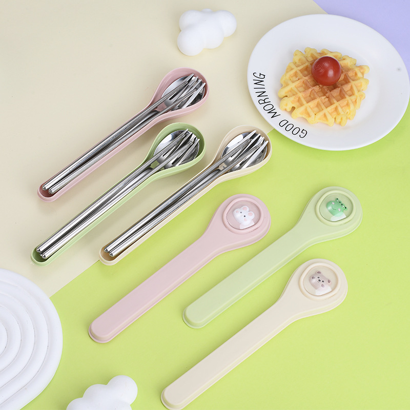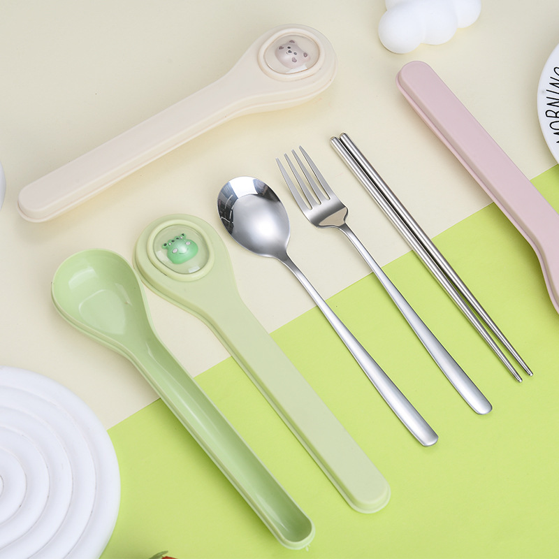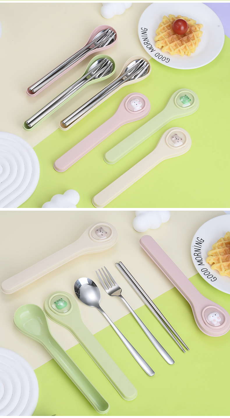 마카롱 304 스테인레스 스틸 휴대용 식기 만화 어린이 숟가락 포크 젓가락 야외 학생 사무실 3 종 세트