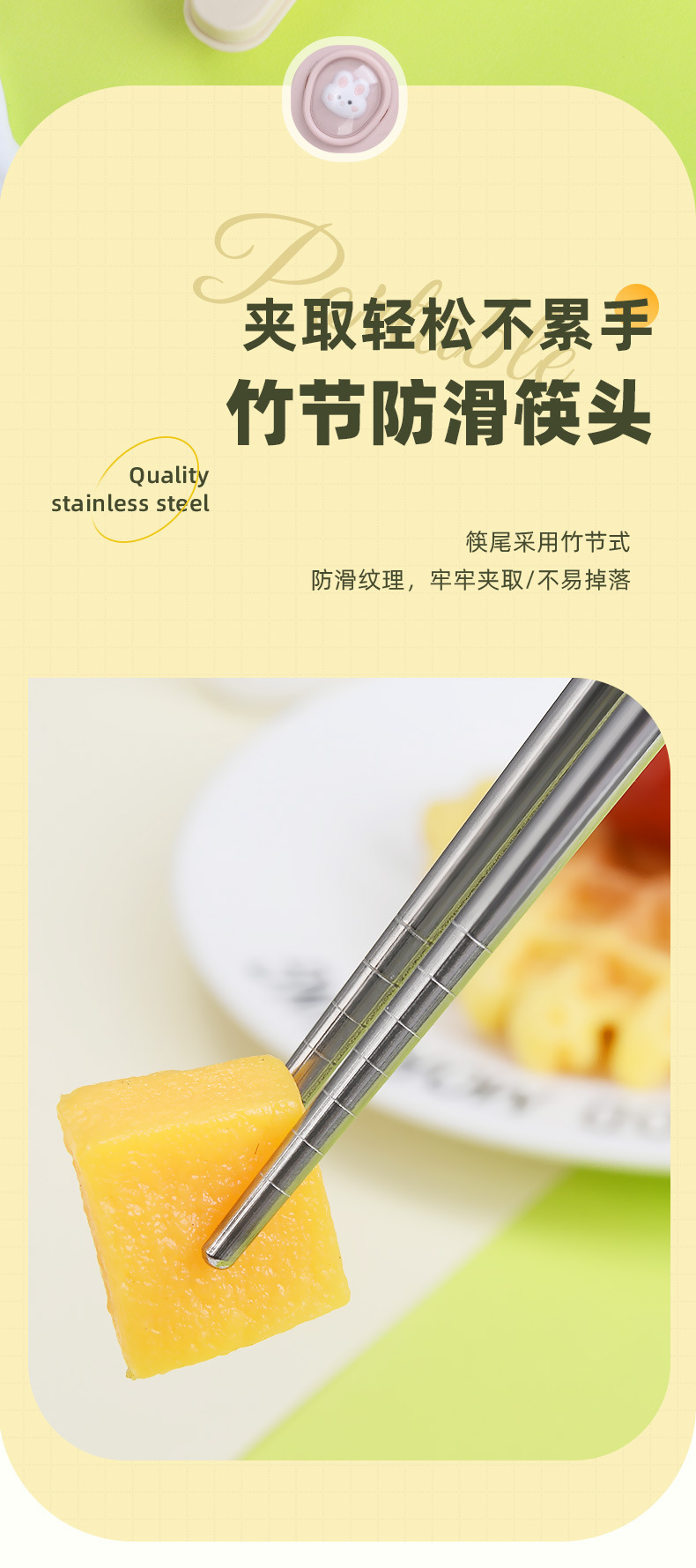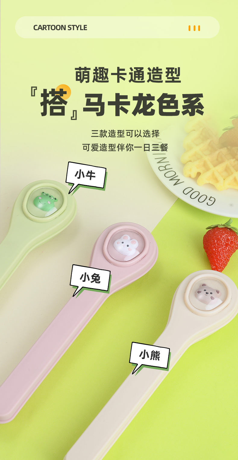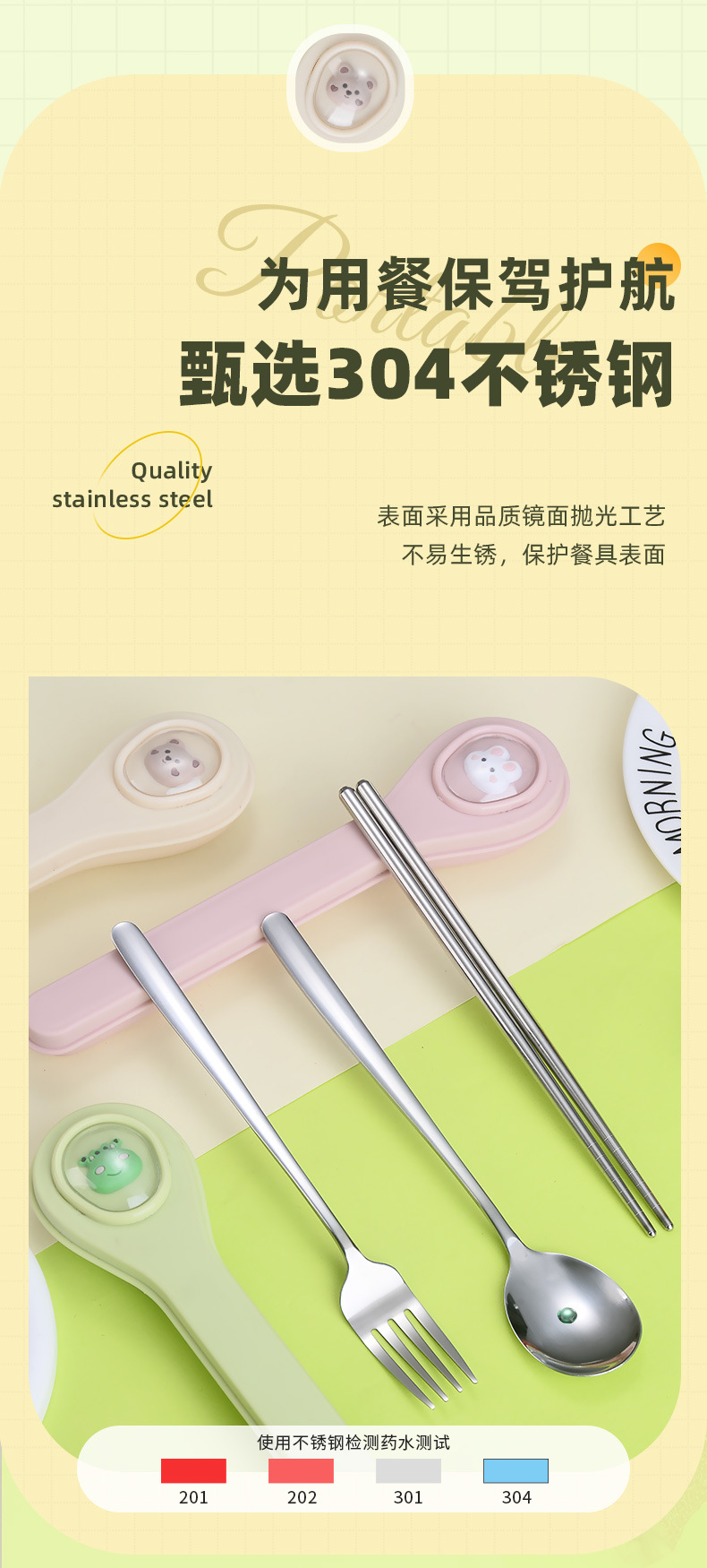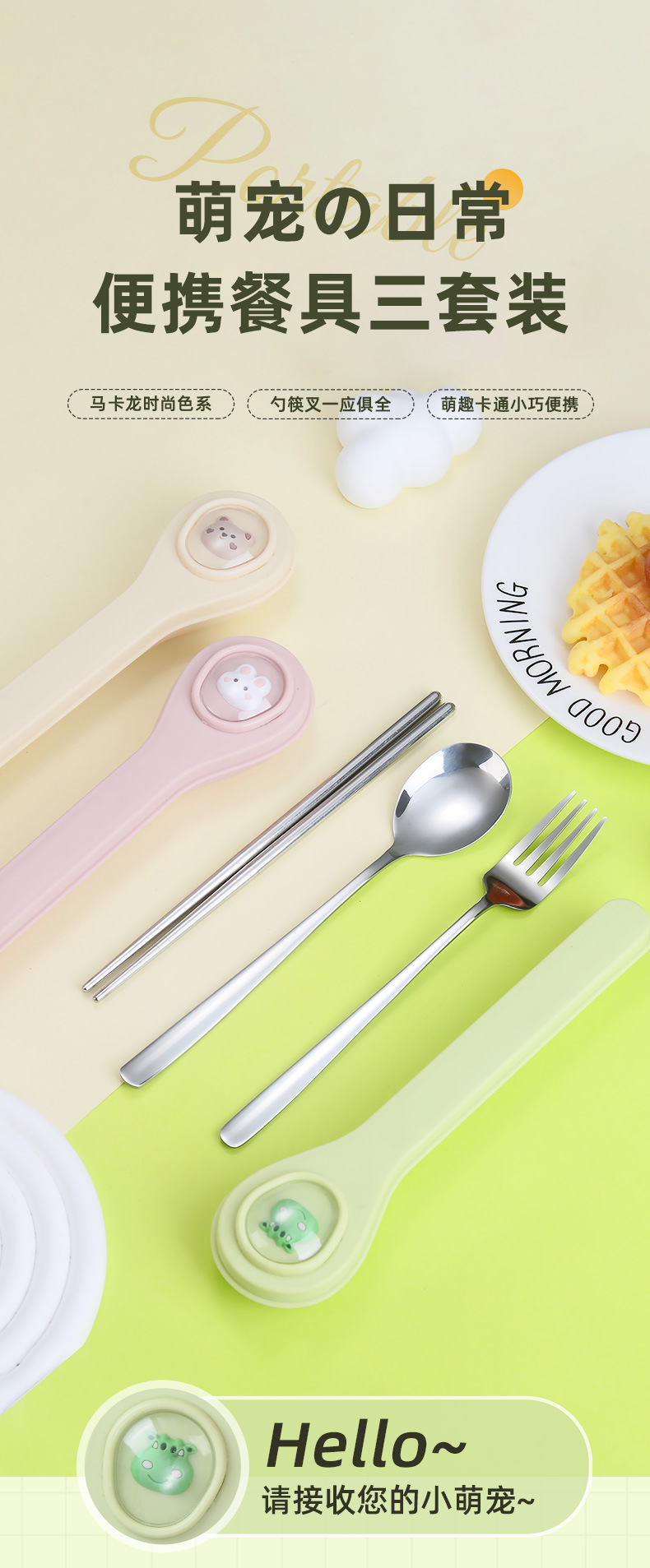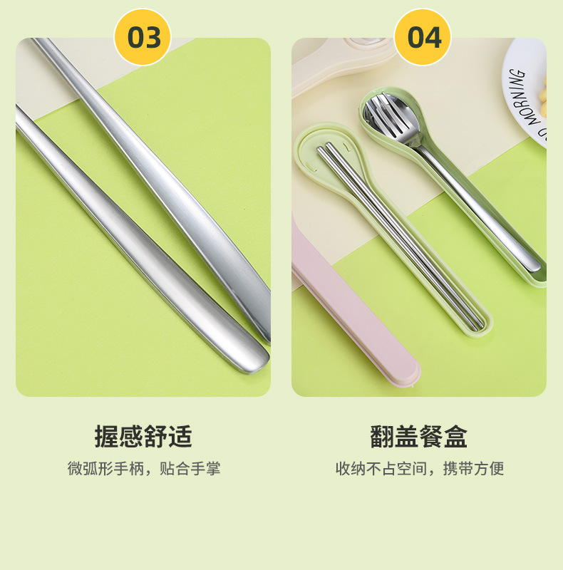 마카롱 304 스테인레스 스틸 휴대용 식기 만화 어린이 숟가락 포크 젓가락 야외 학생 사무실 3 종 세트