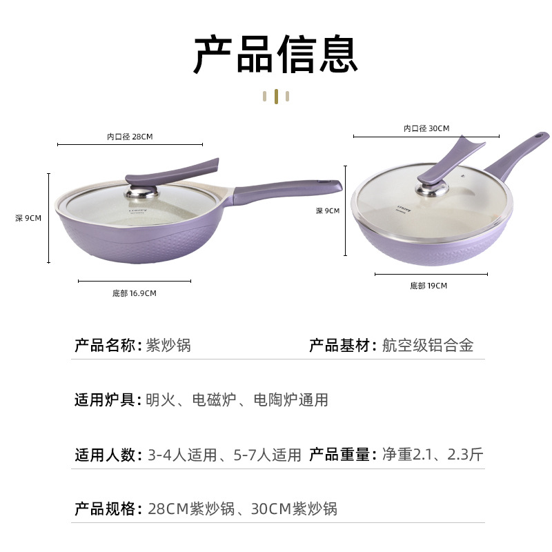 보라색 논스틱 프라이팬, 볶음팬, 전자레인지, 가스레인지, 알루미늄 다이캐스트 프라이팬, 가스레인지용