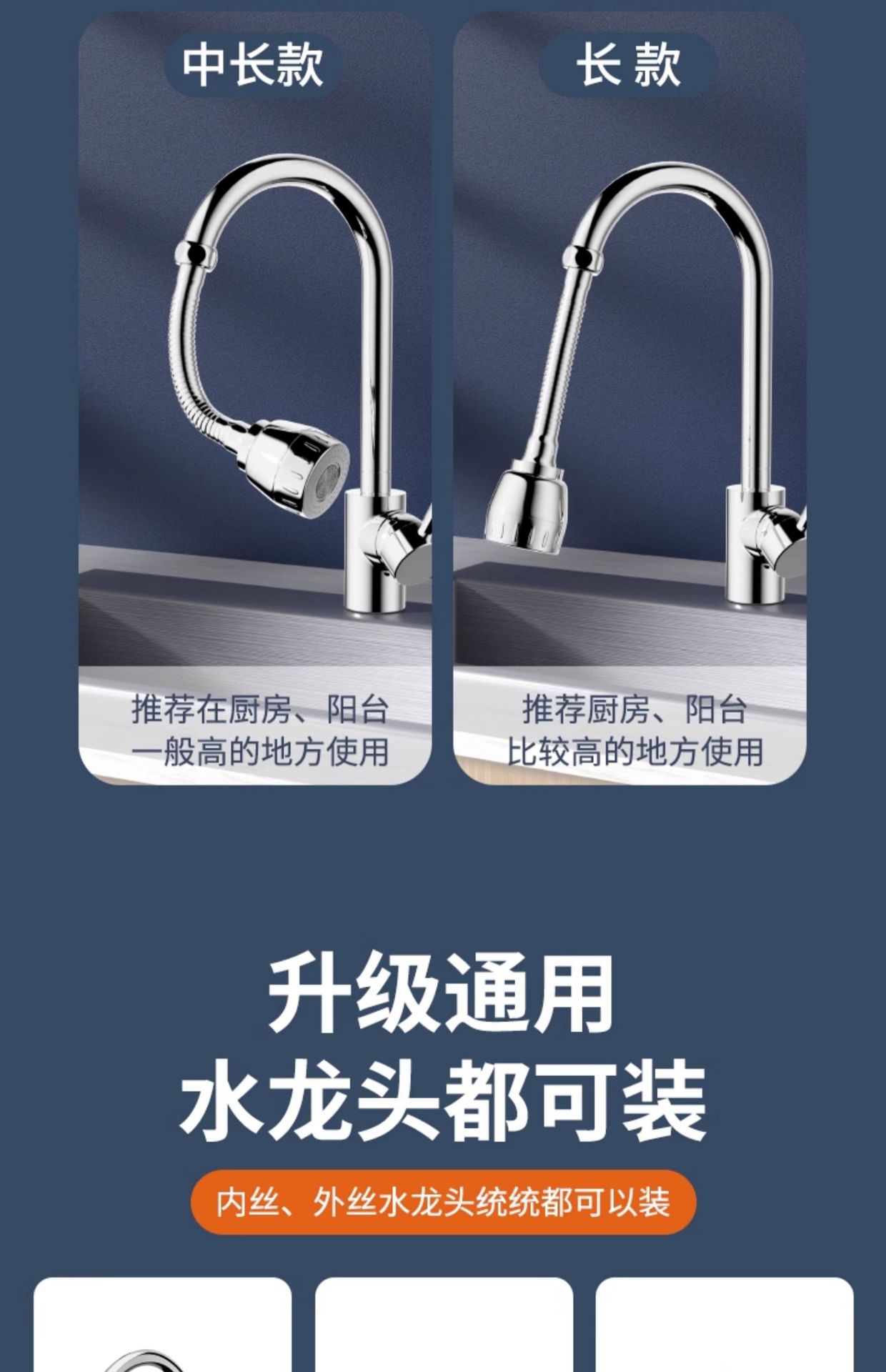 [업그레이드된 중간 길이] 3단계 방수 기능●360도 회전 플러시 - 범용 설치