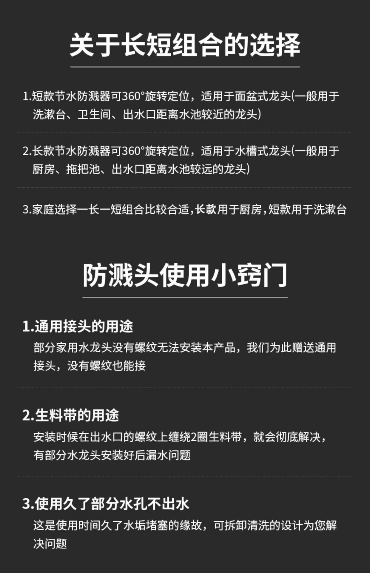 2개 팩 [짧은 스타일 + 확장 스타일] 3단계 방수 ● 360도 회전 플러시