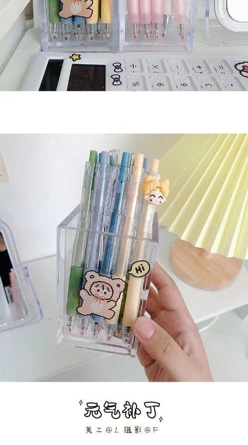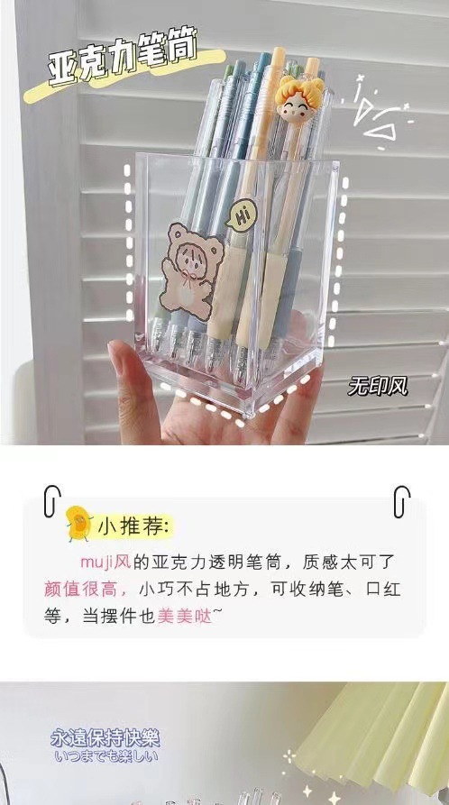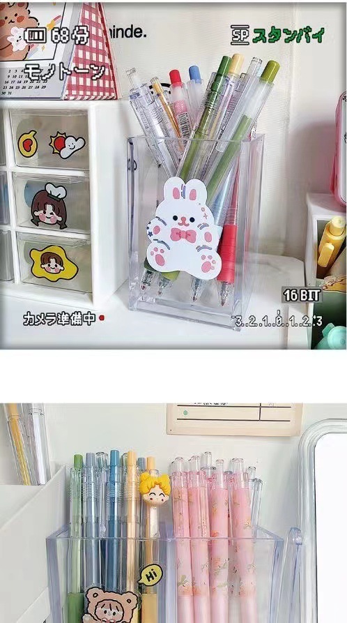 투명한 사각 펜 코너 간단한 아크릴 저장 상자 사무실 용품 어린이 펜 코너 높은 색상 값 플라스틱 펜 코너