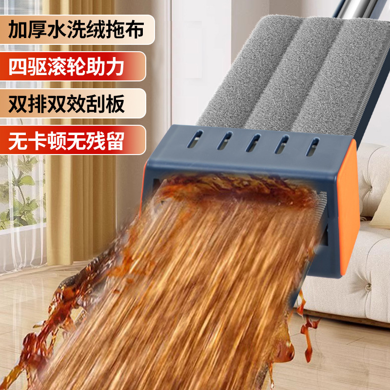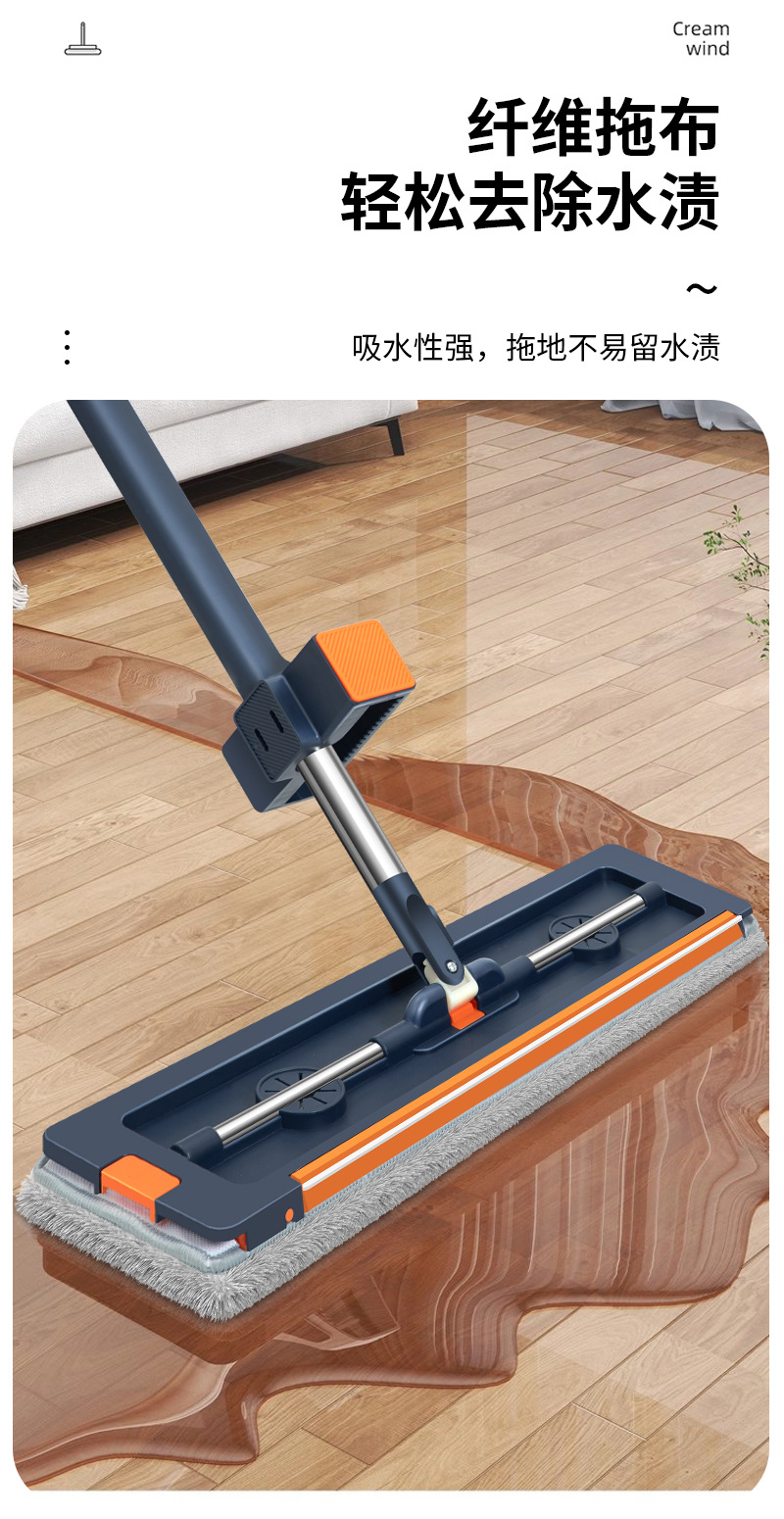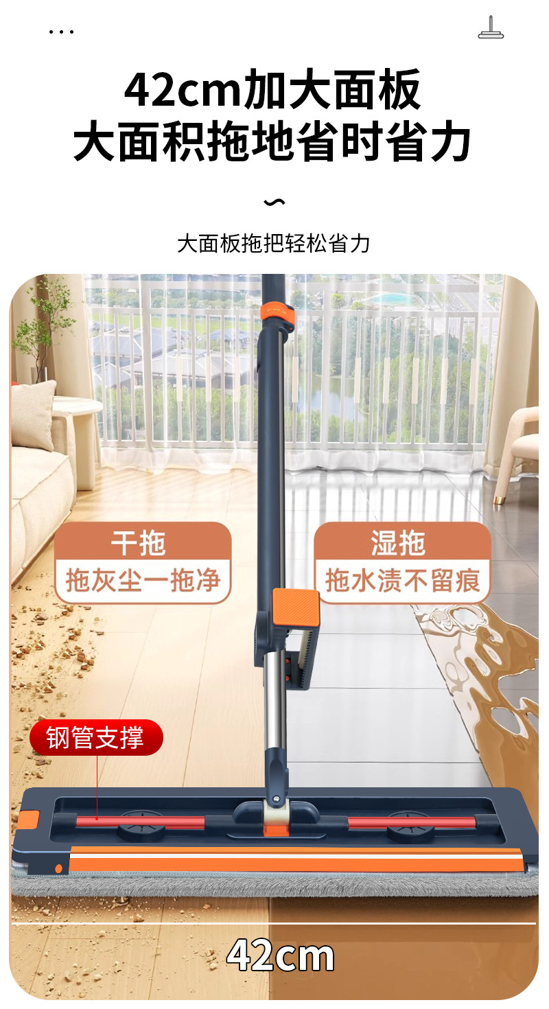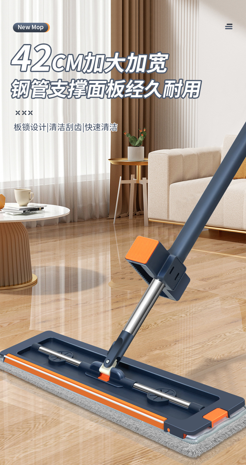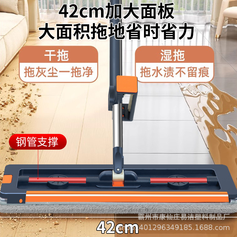 42cm 확대 된 핸즈프리 플랫 걸레 스테인레스 스틸 강화 새로운 가정용 걸레 두꺼운 판 습식 이중 사용 걸레