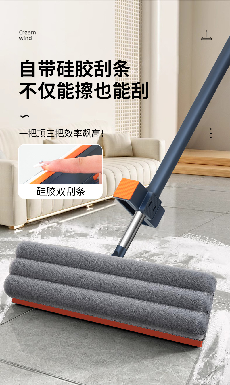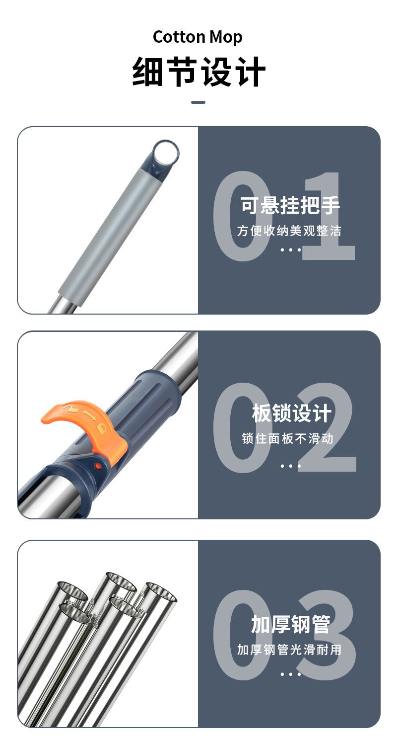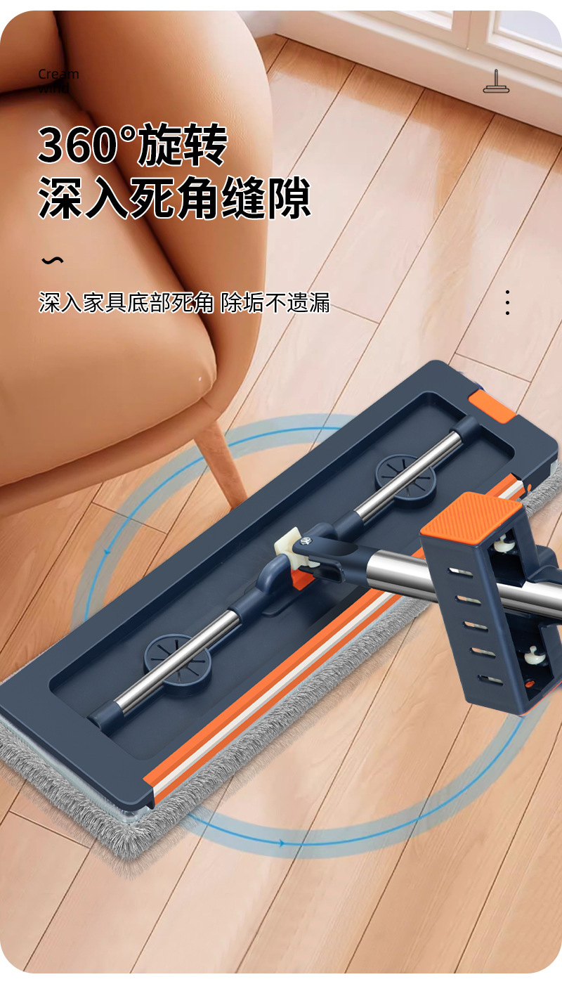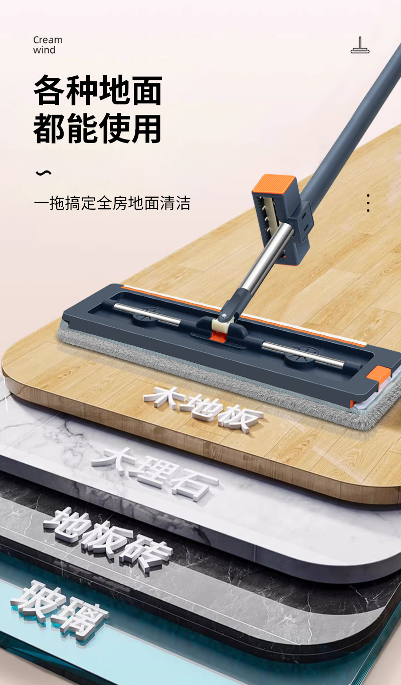 42cm 확대 된 핸즈프리 플랫 걸레 스테인레스 스틸 강화 새로운 가정용 걸레 두꺼운 판 습식 이중 사용 걸레