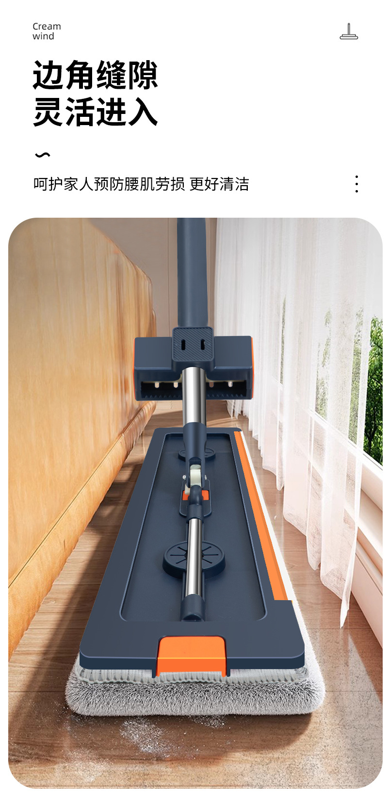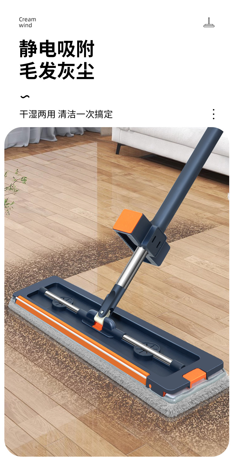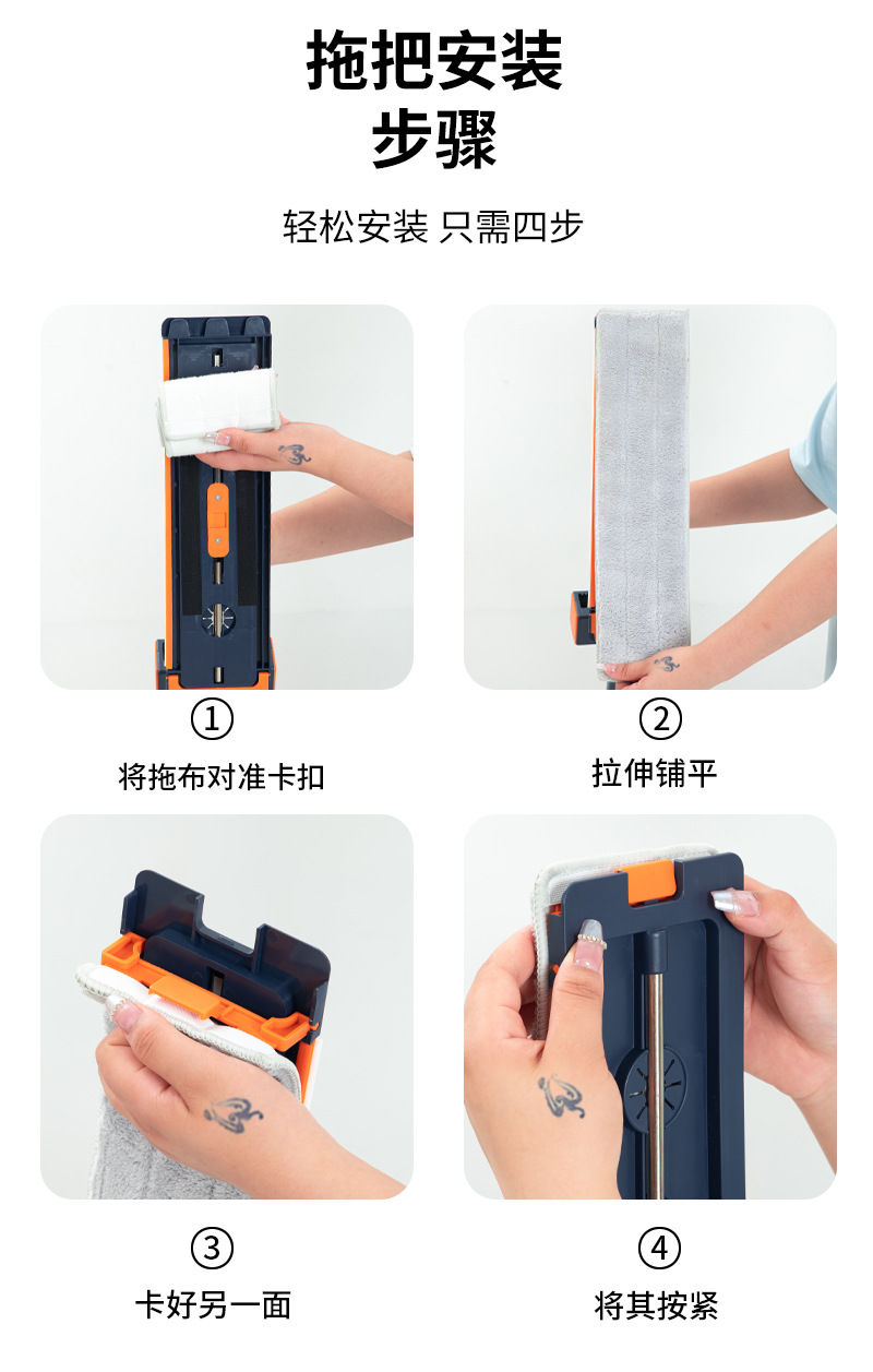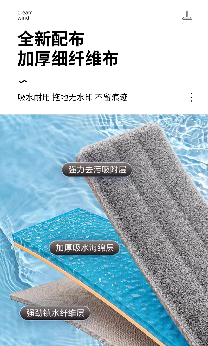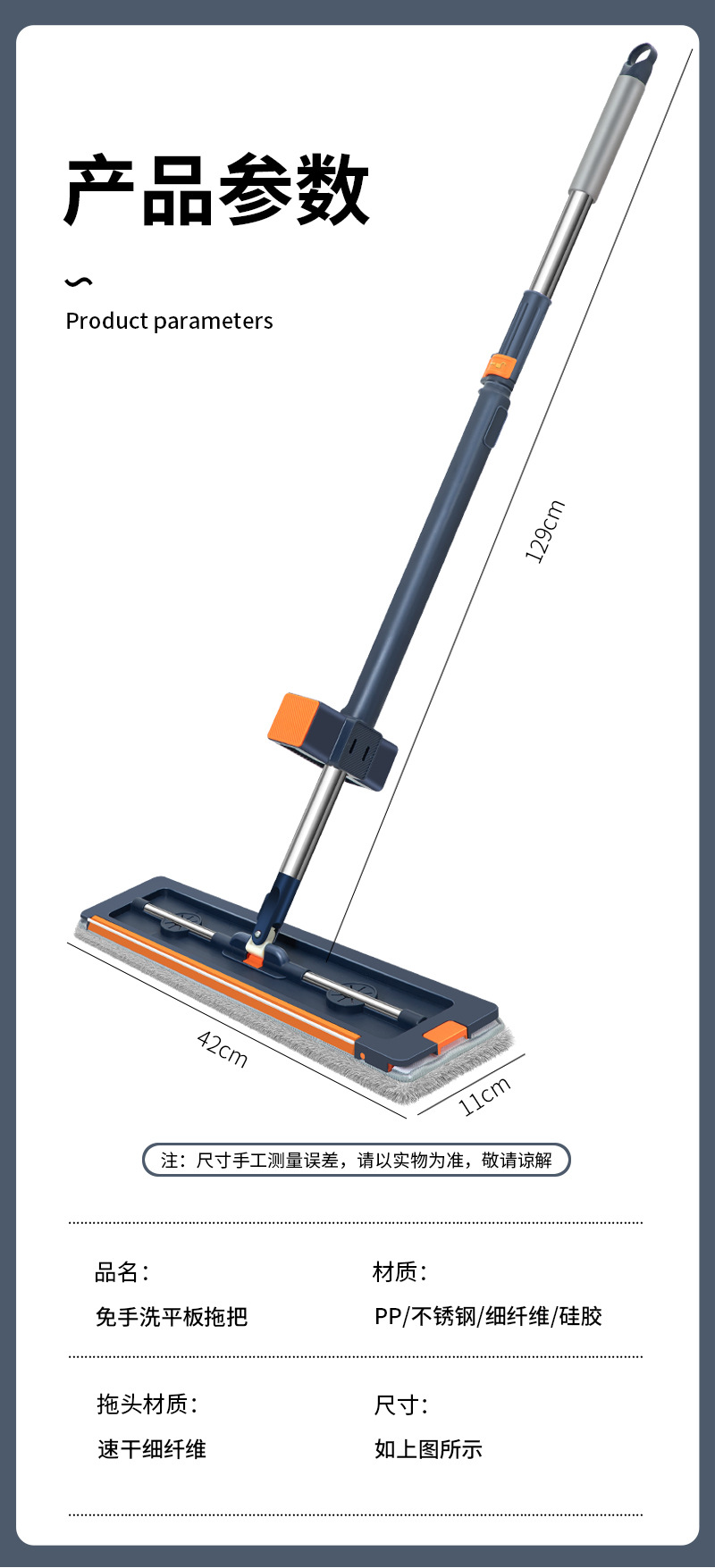42cm 확대 된 핸즈프리 플랫 걸레 스테인레스 스틸 강화 새로운 가정용 걸레 두꺼운 판 습식 이중 사용 걸레