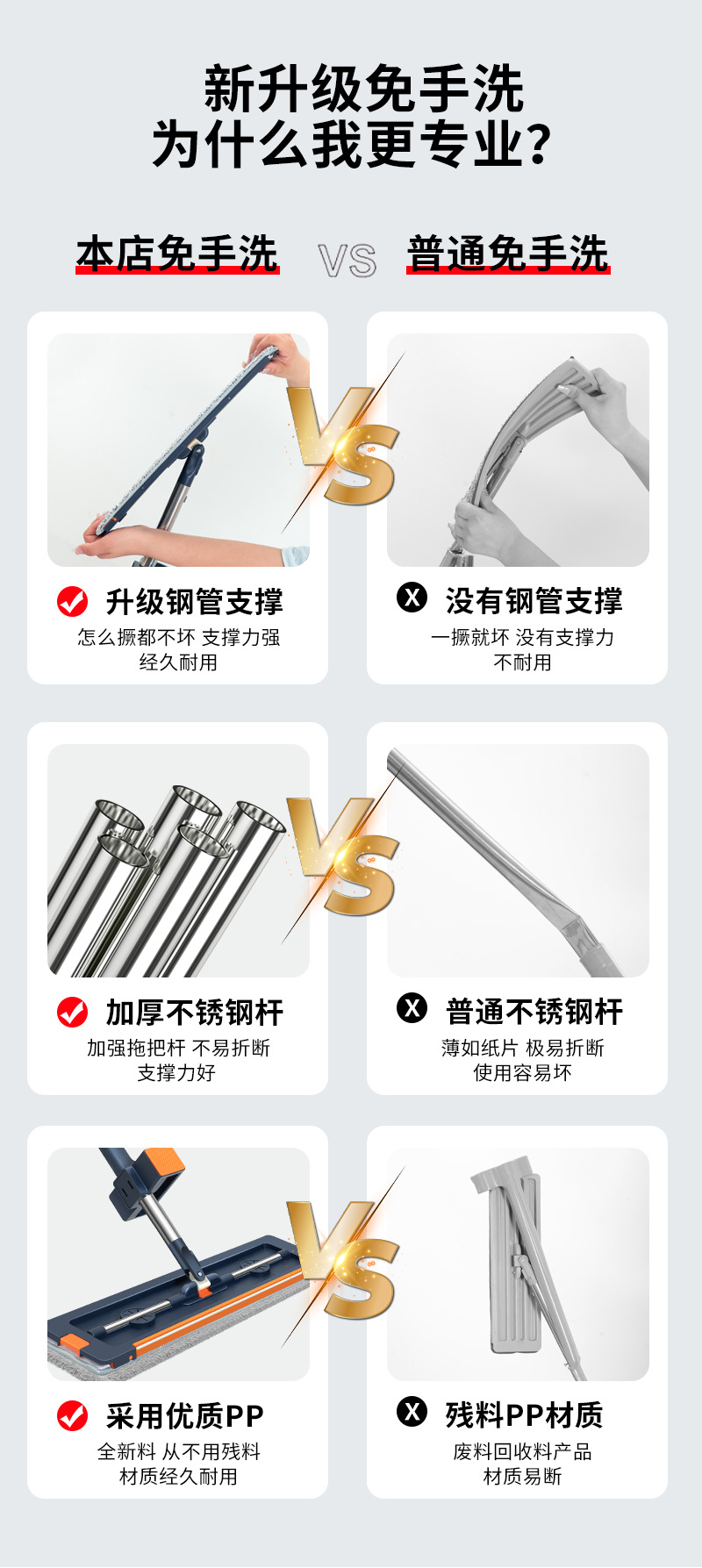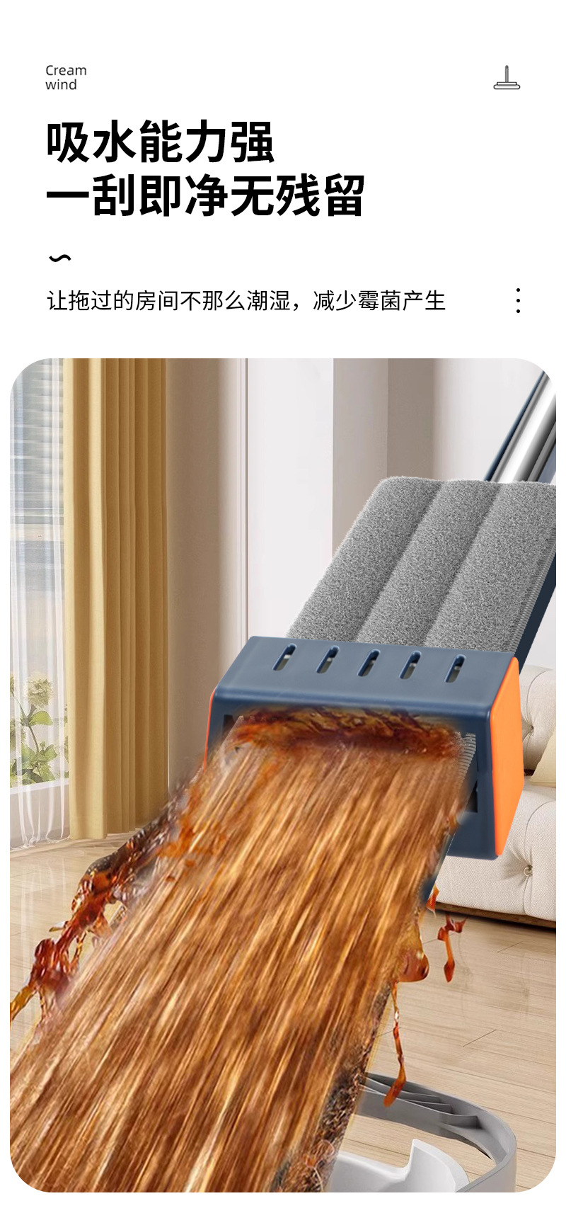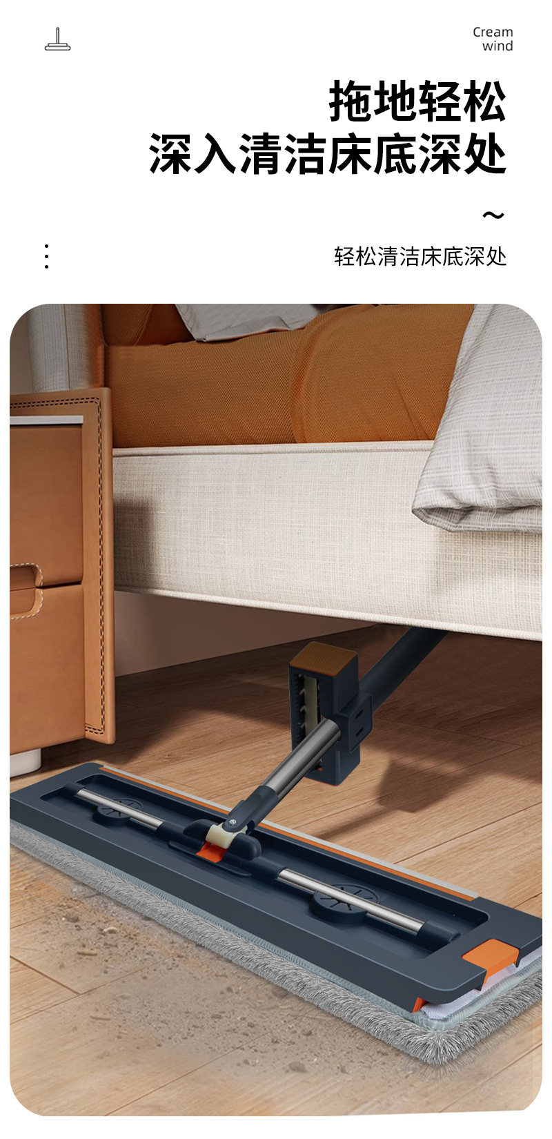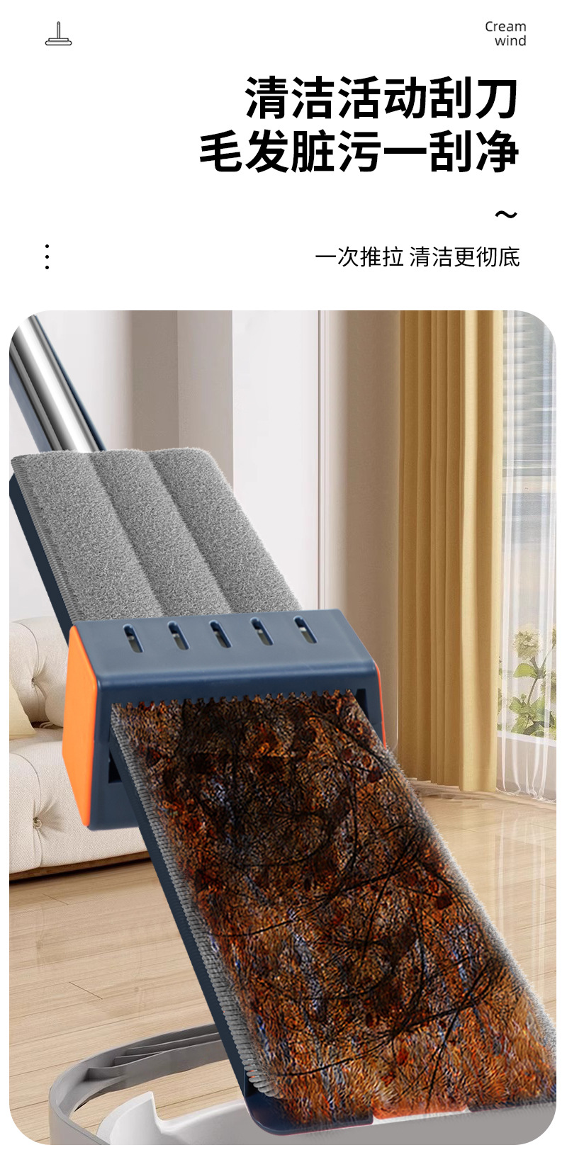 42cm 확대 된 핸즈프리 플랫 걸레 스테인레스 스틸 강화 새로운 가정용 걸레 두꺼운 판 습식 이중 사용 걸레