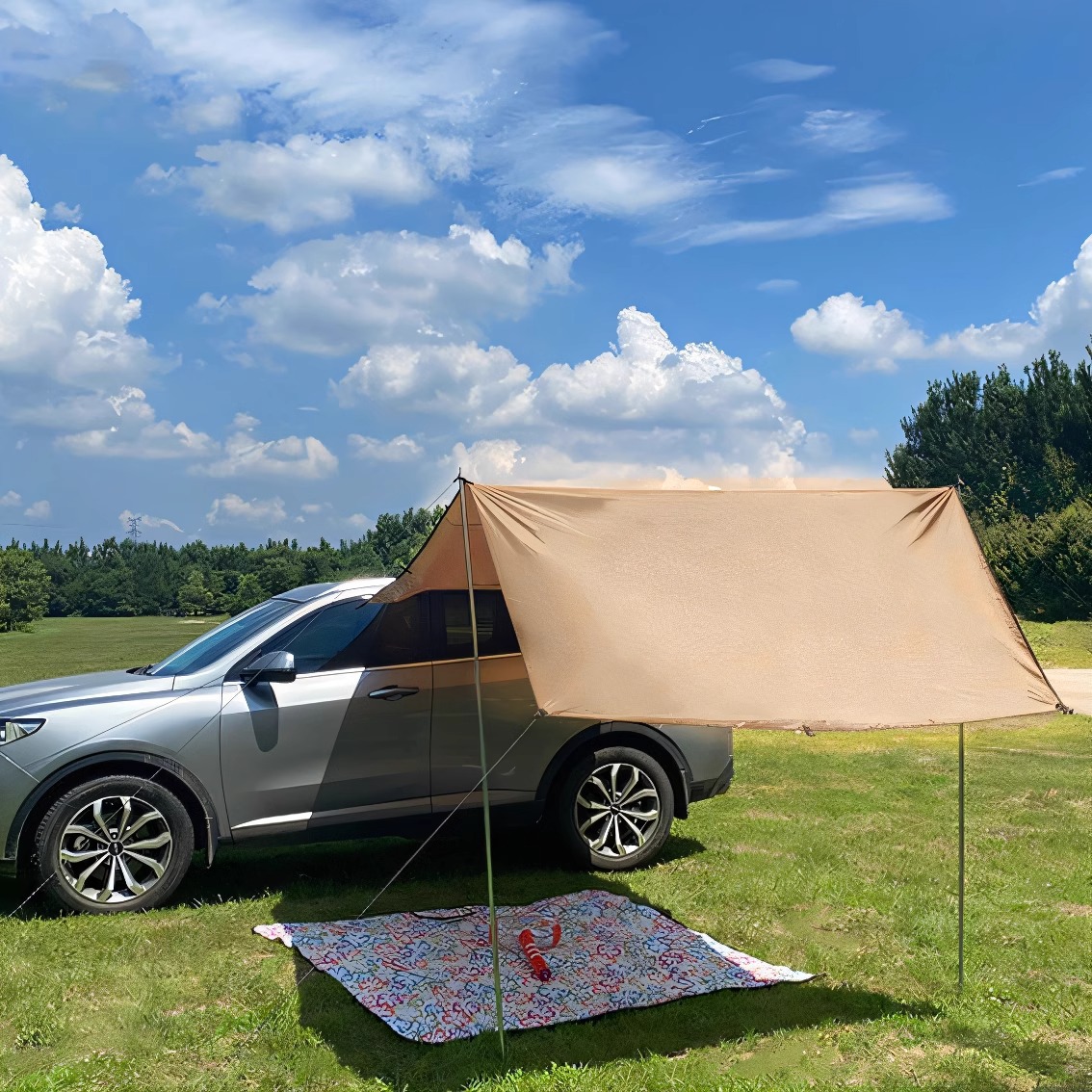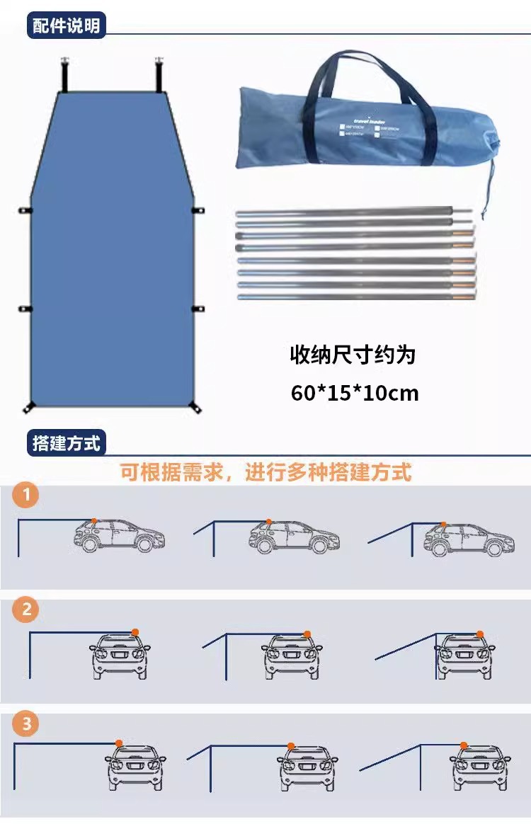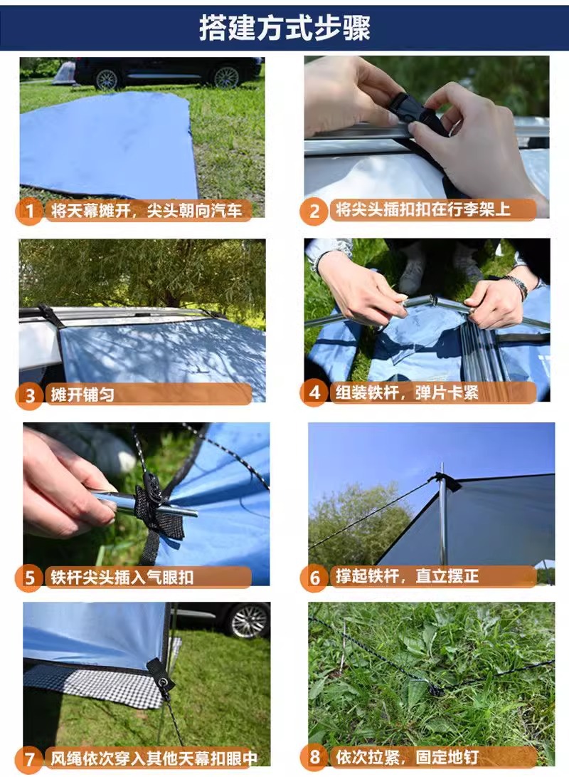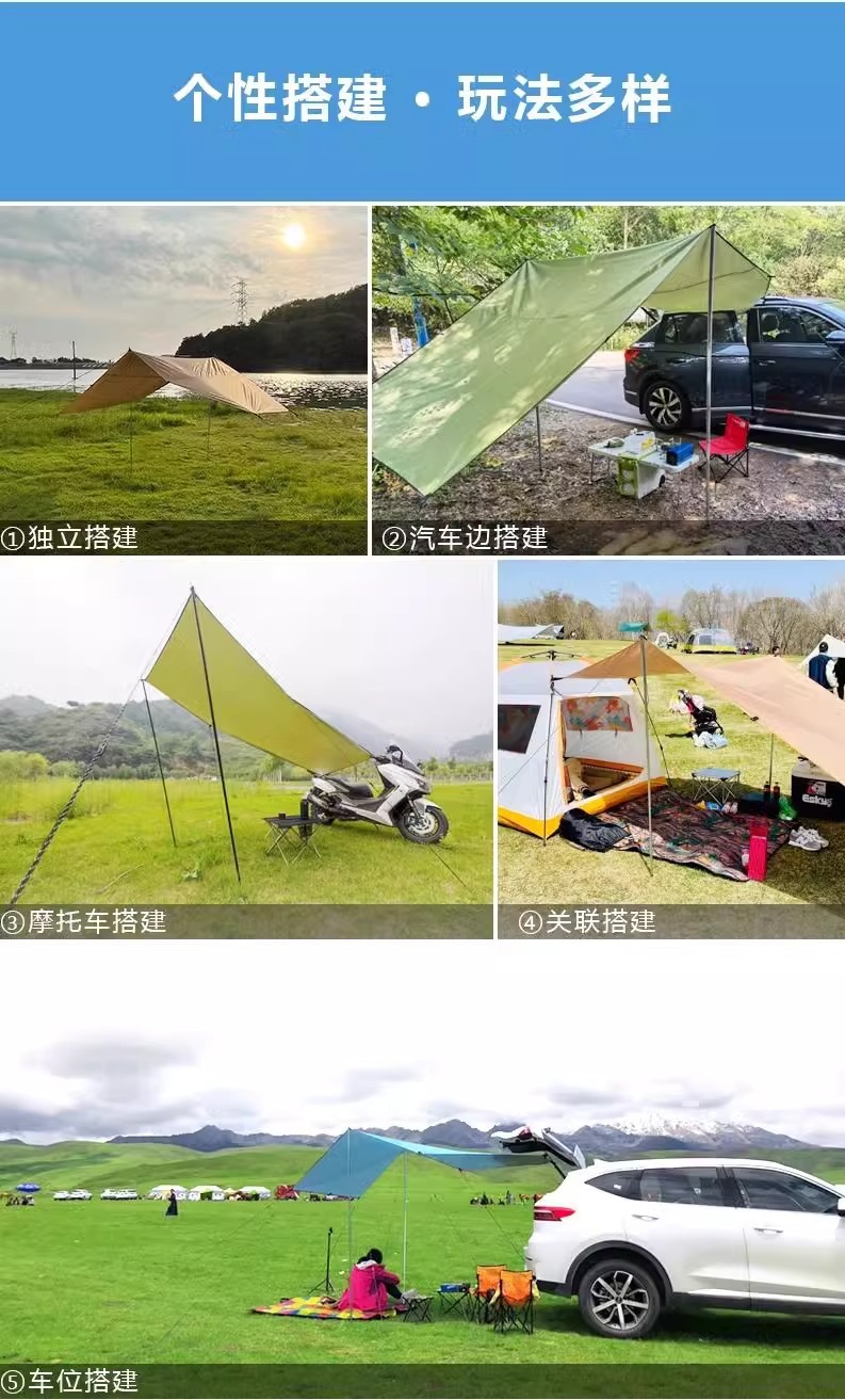 자체 운전 SUV 자동차 사이드 캐노피 야외 캠핑 사이드 계정 자동차 테일 텐트 실버 코팅 비 및 태양 보호 차양