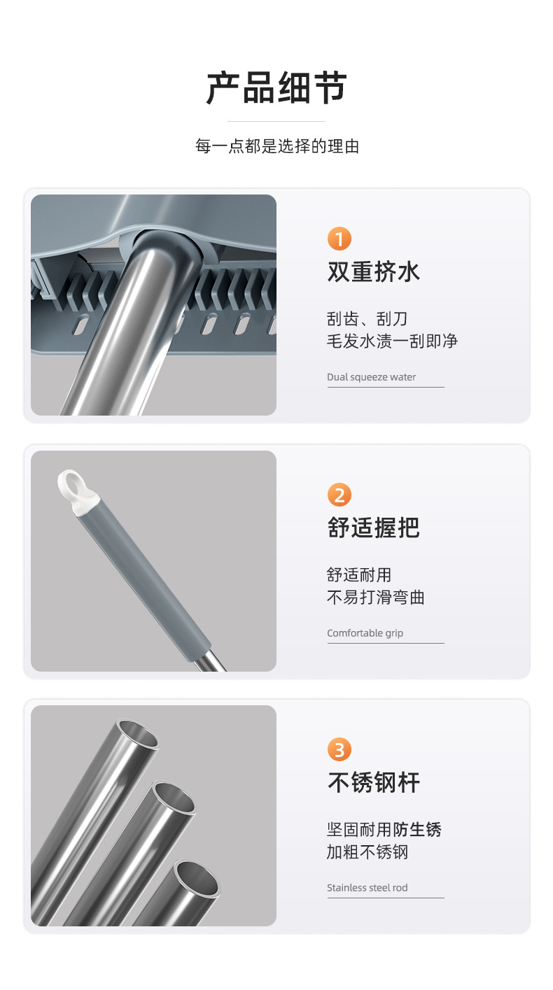 플래그십 더블 스크레이퍼 38cm + 두꺼운 막대 + 총 6개의 천