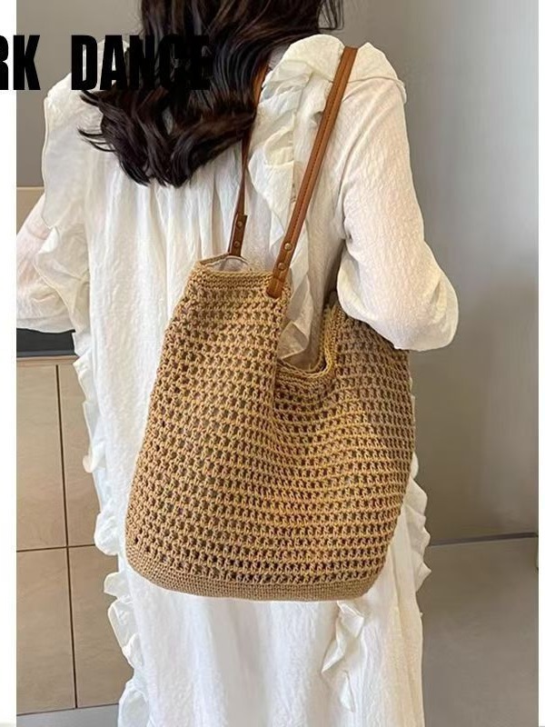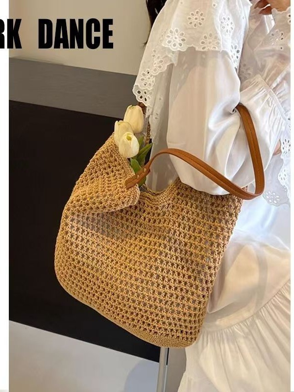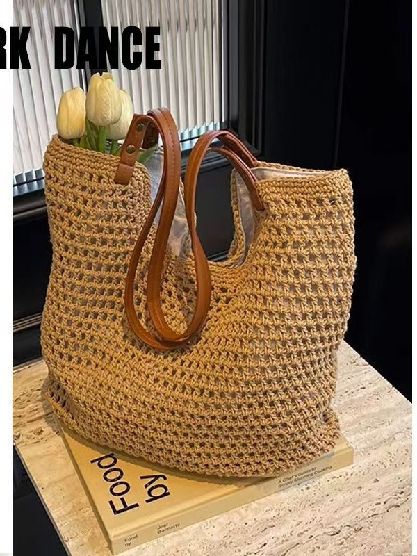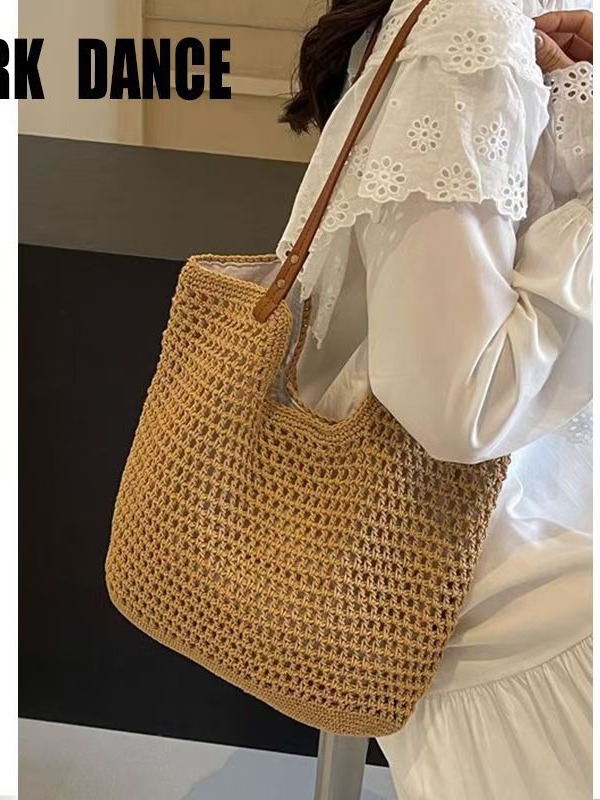 속이 빈 싱글 숄더 면 직조 가방