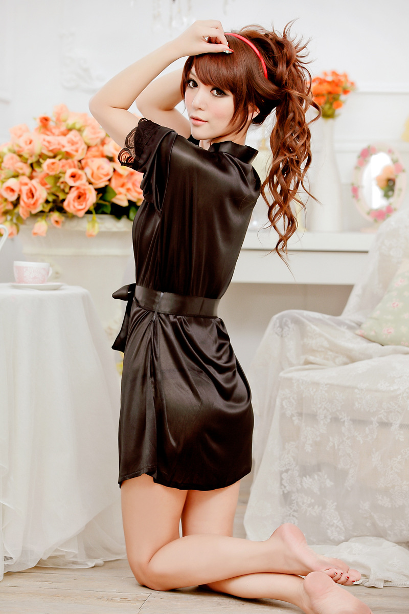 한국식 잠옷 여성용 잠옷 아이스 실크 얇은 카디건 여름 중간 길이의 회전 섹시한 잠옷 정사이즈 아이스 실크 공장