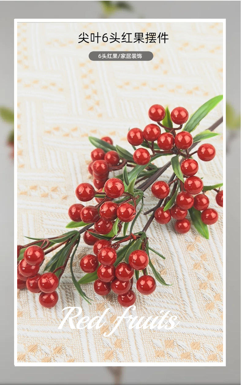 모조 과일 붉은 열매 윈터그린 6개 가정 장식품 거실 꽃꽂이 빨간색 모조 과일