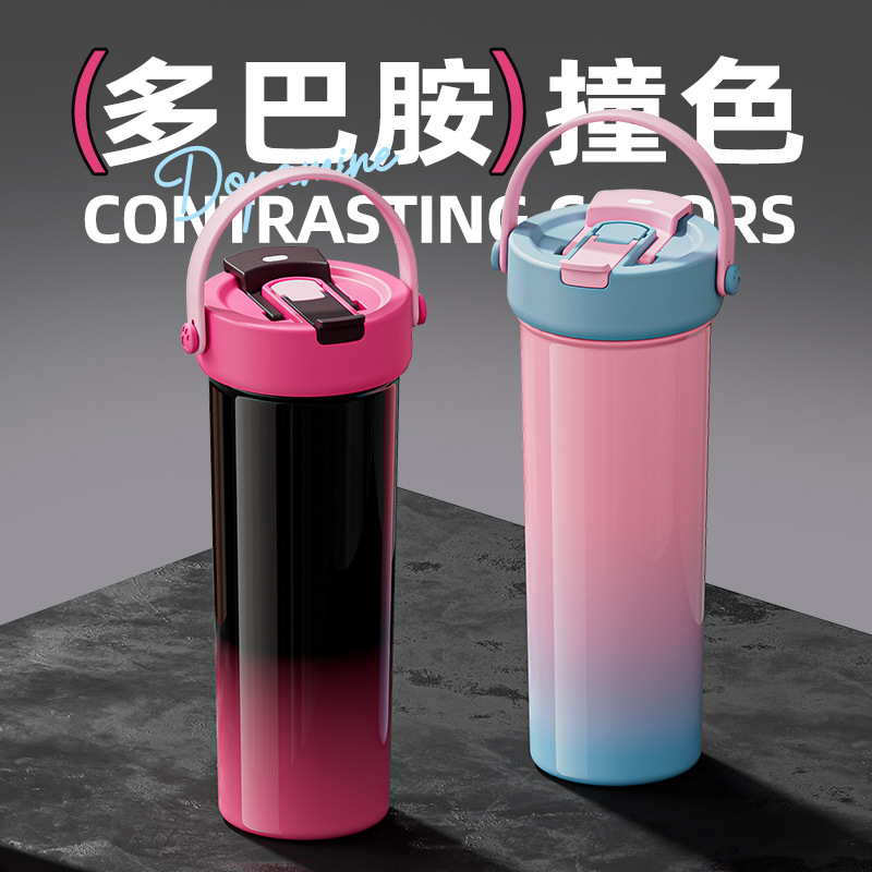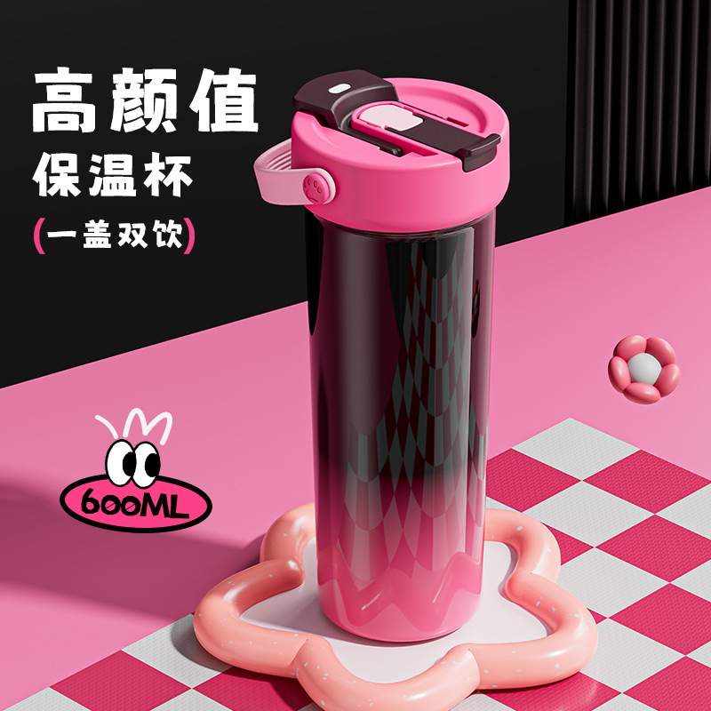 새로운 대용량 보온병 컵 소녀 높은 색상 가치 차 분리 이중 마시는 흡입 컵 316 스테인레스 스틸 과일 차 컵