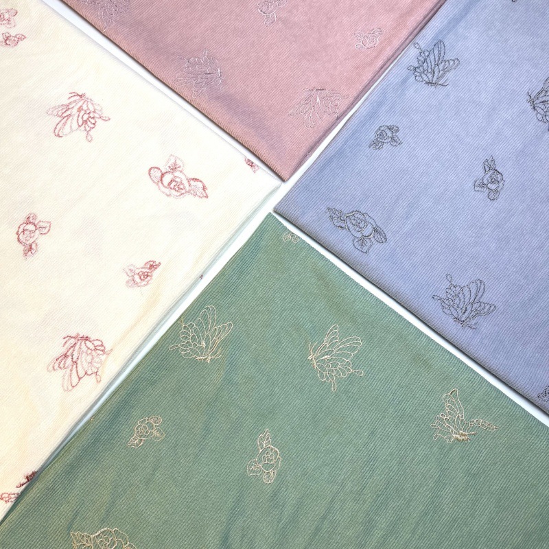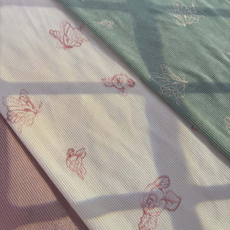 灯芯绒绣花多色可选,绣花蝴蝶牡丹图案,适合童装和各类时尚女装