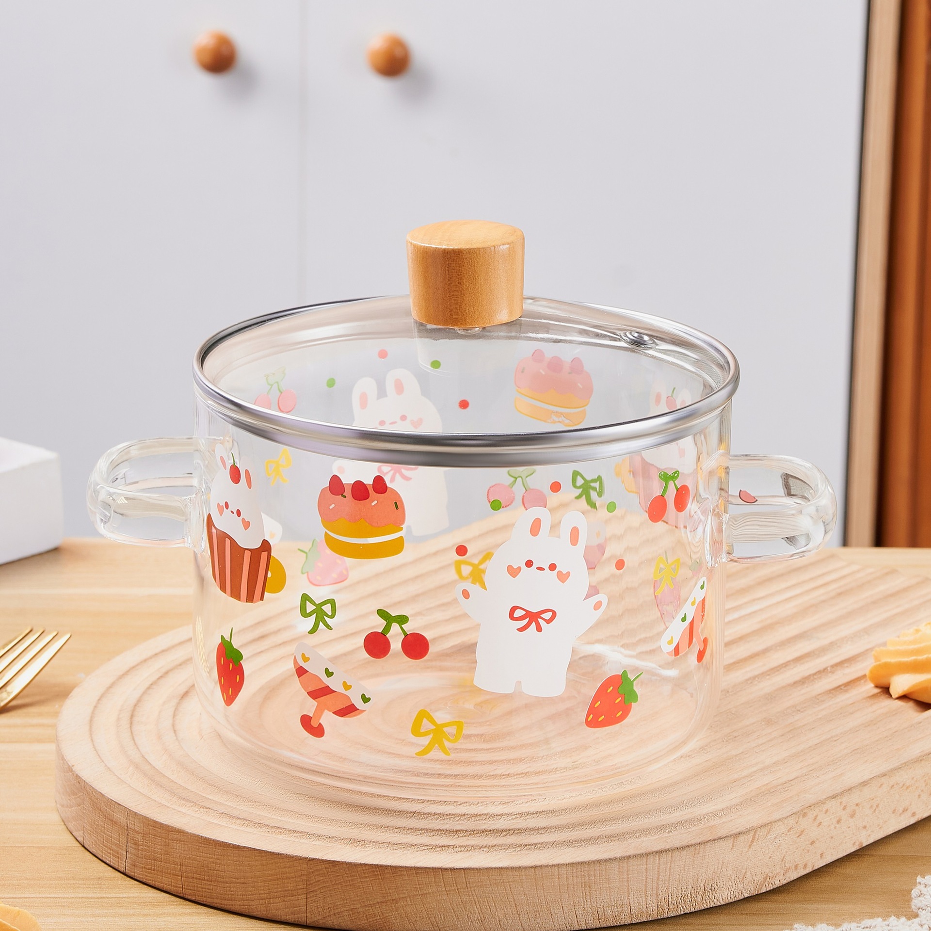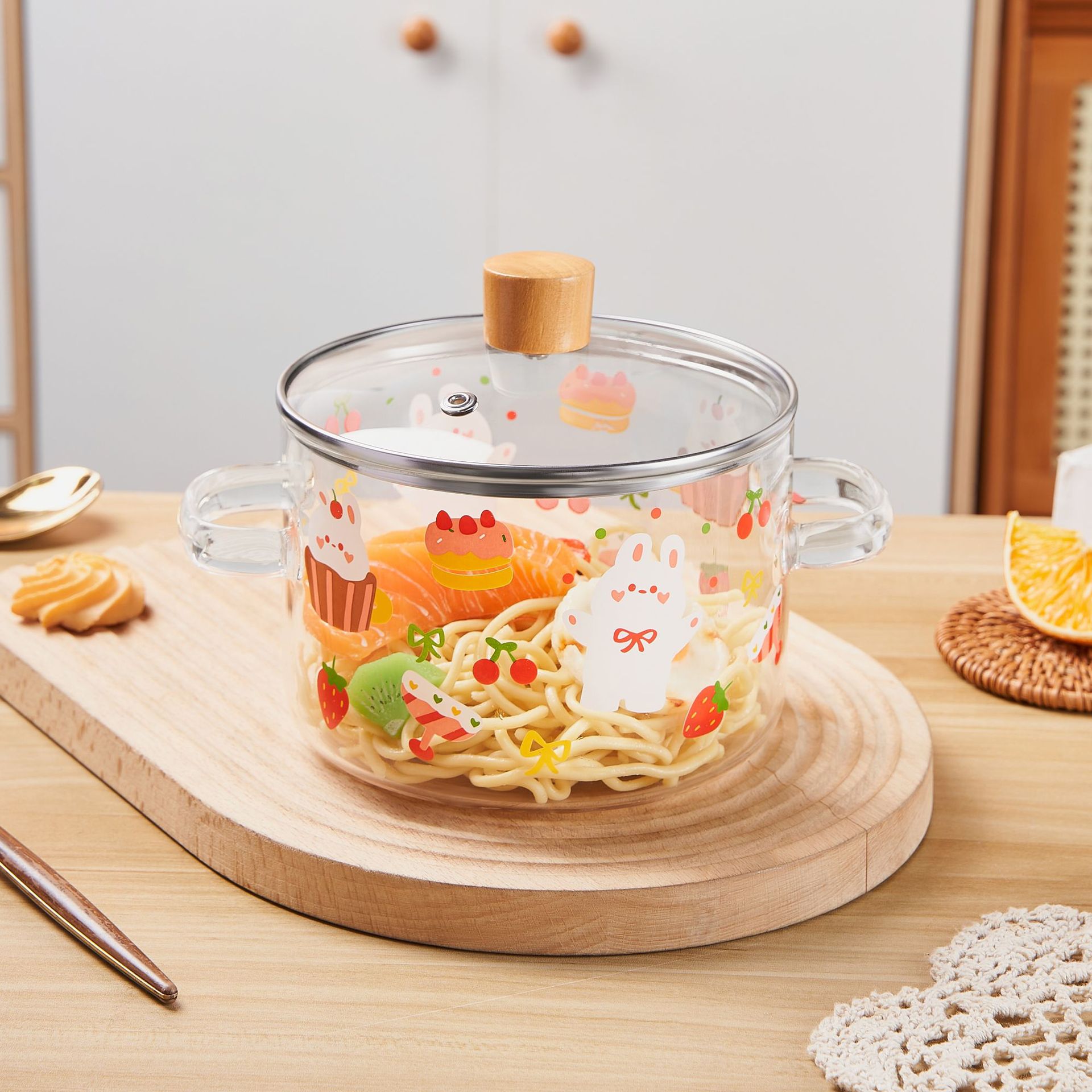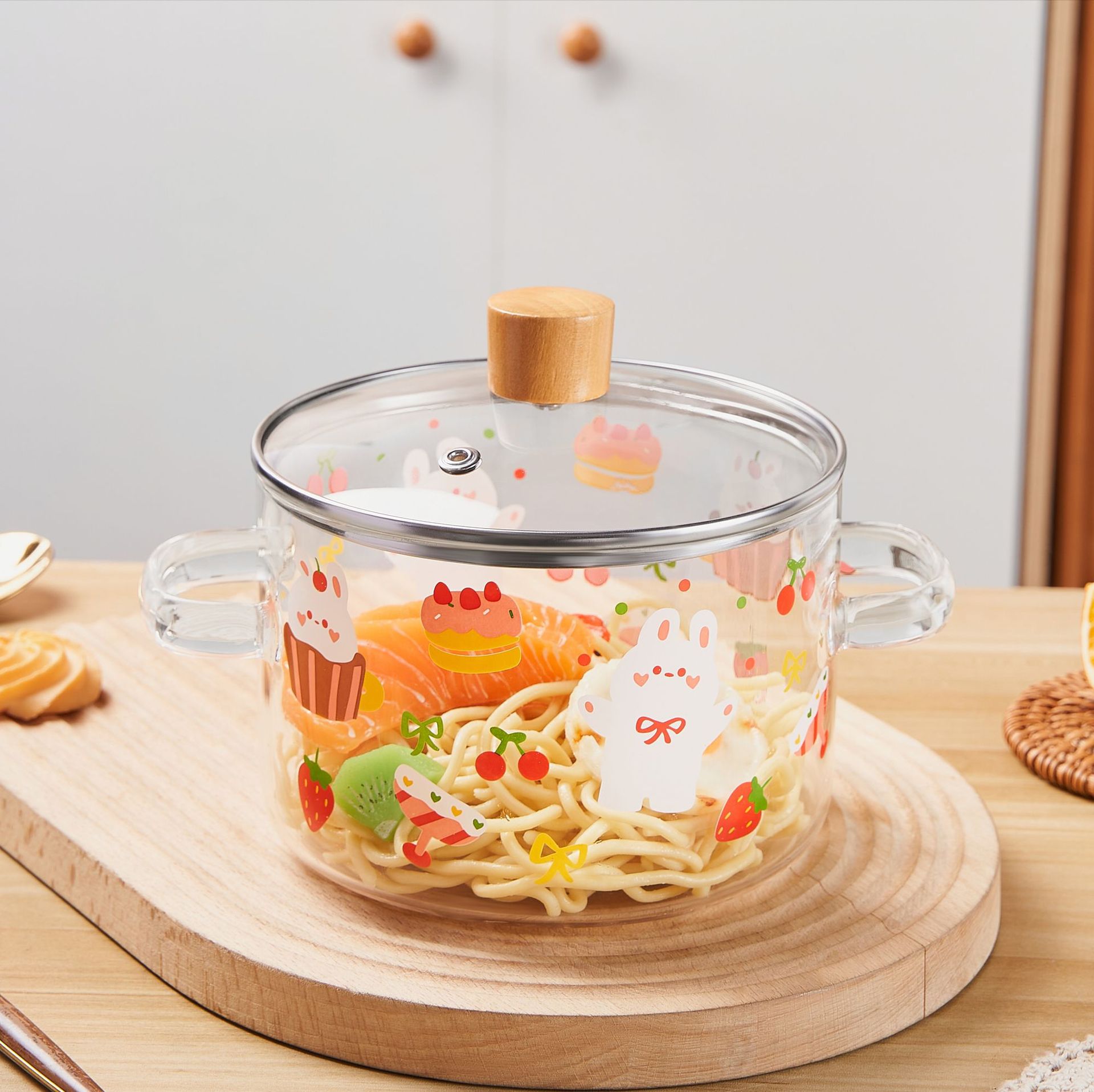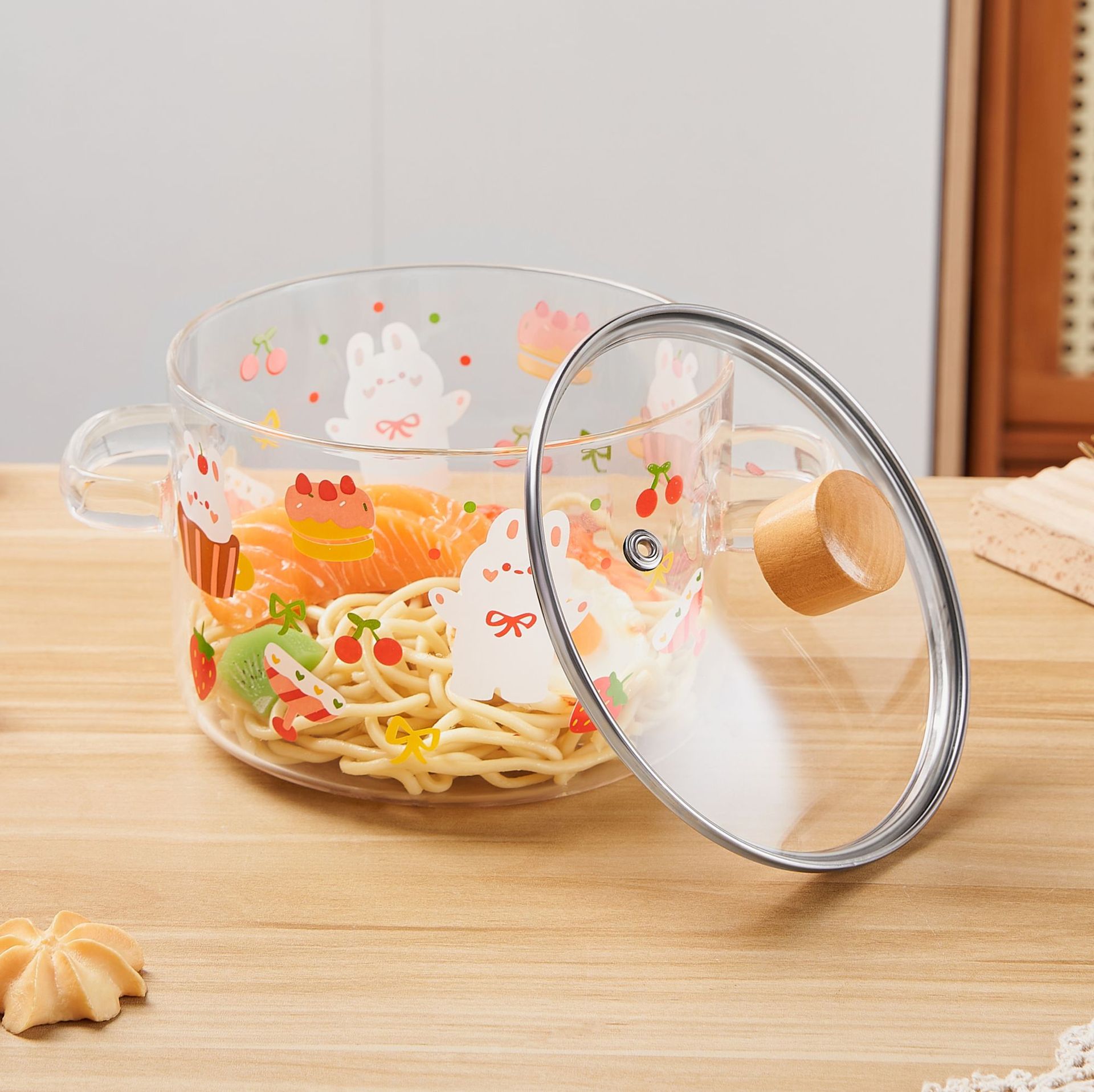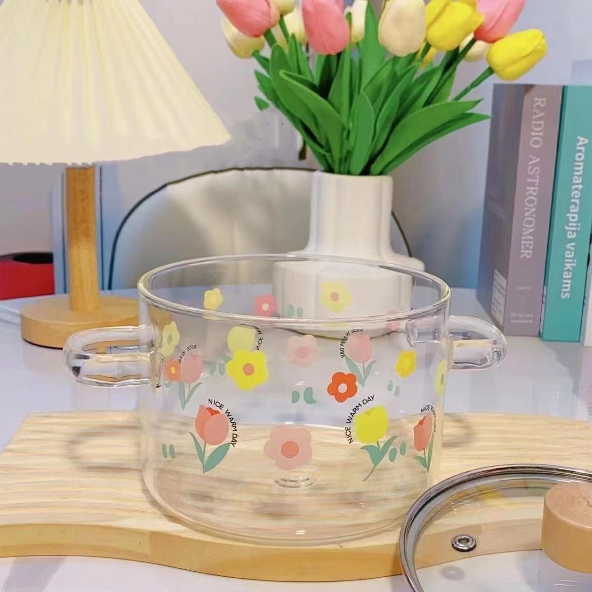 큰 기숙사 국수 수프 냄비를 요리하기위한 뚜껑이 달린 튤립 대용량 고용량 이중 귀 오픈 불꽃 유리 내열성 인스턴트 국수 그릇