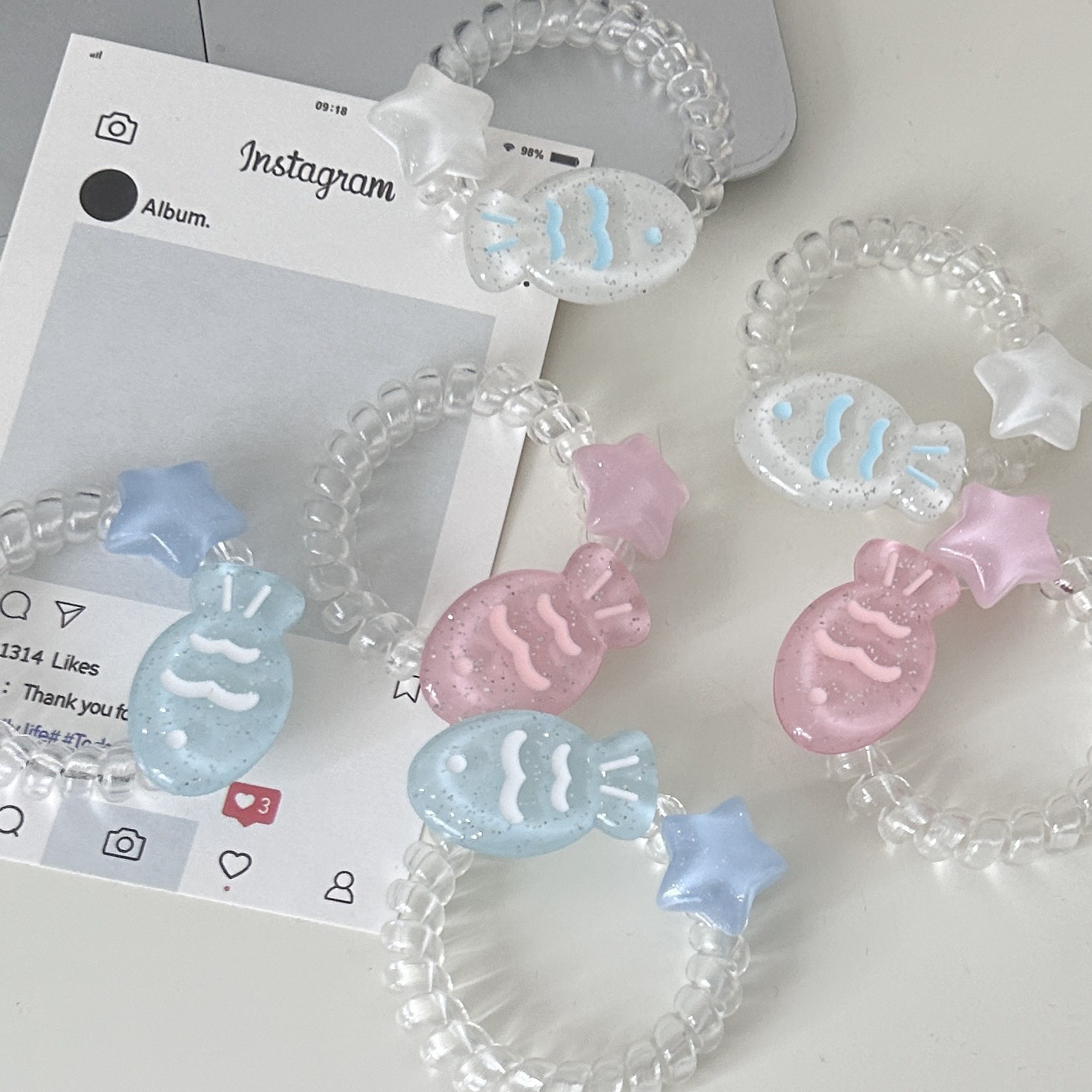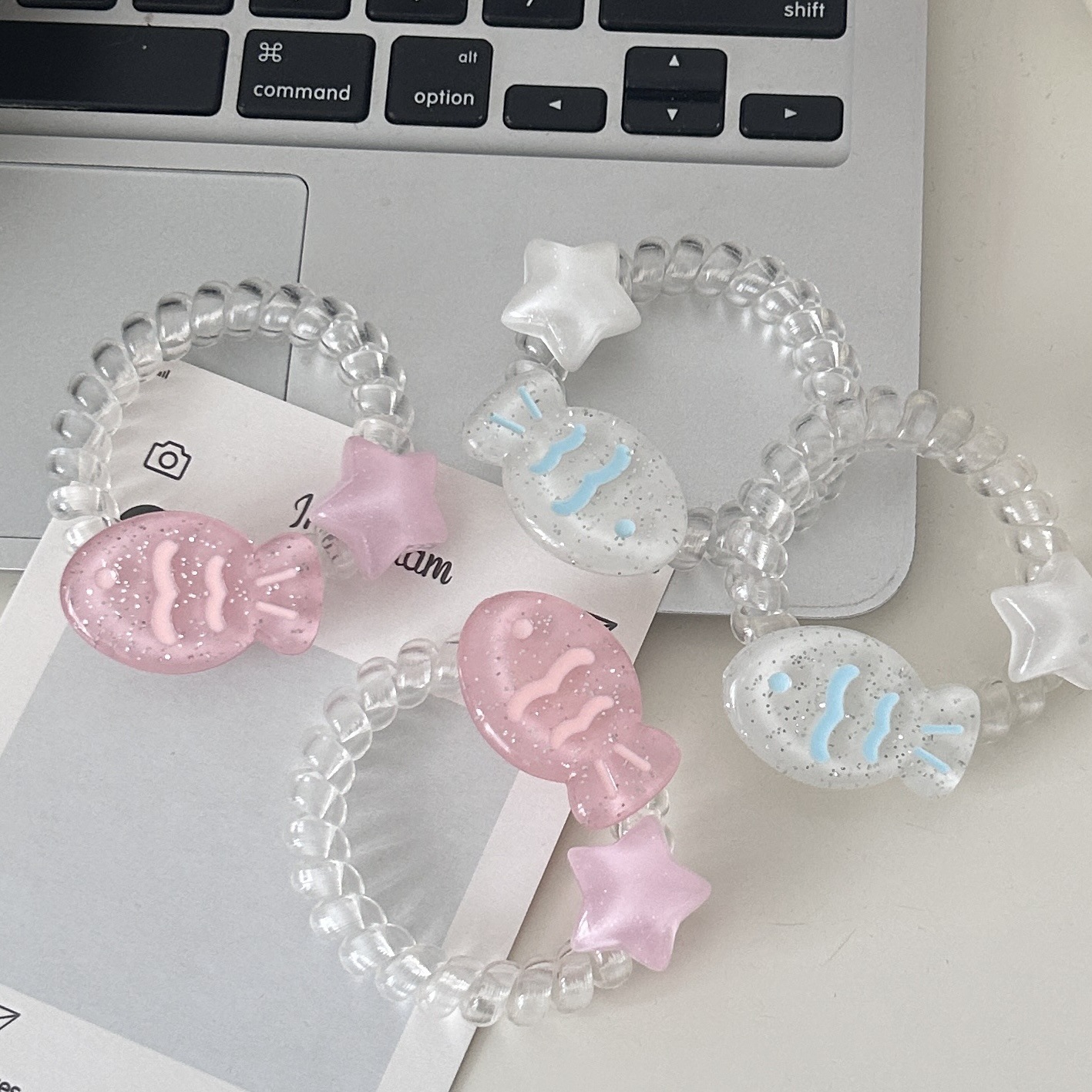 젤리 파인 핑크 Snapper 스타 전화 링 신선한 소녀의 하트 넥타이 헤어 5 점 스타 헤어 링 달콤한 포니 테일 헤어 액세서리