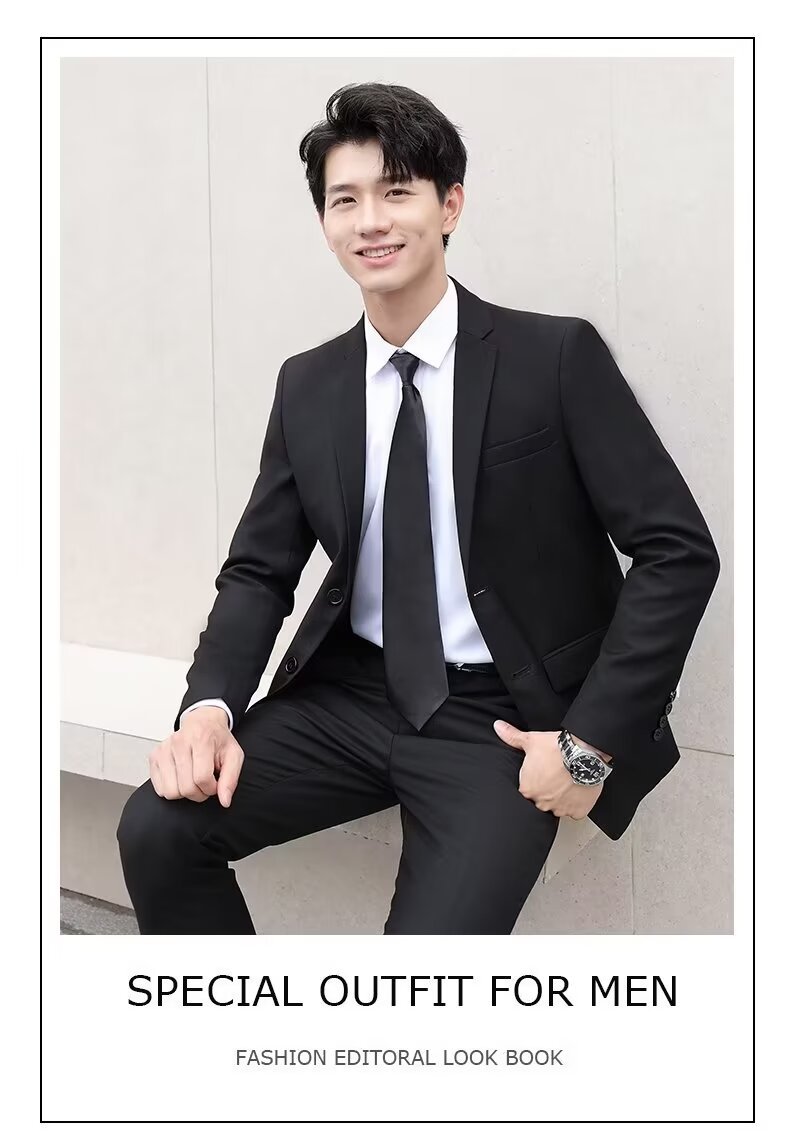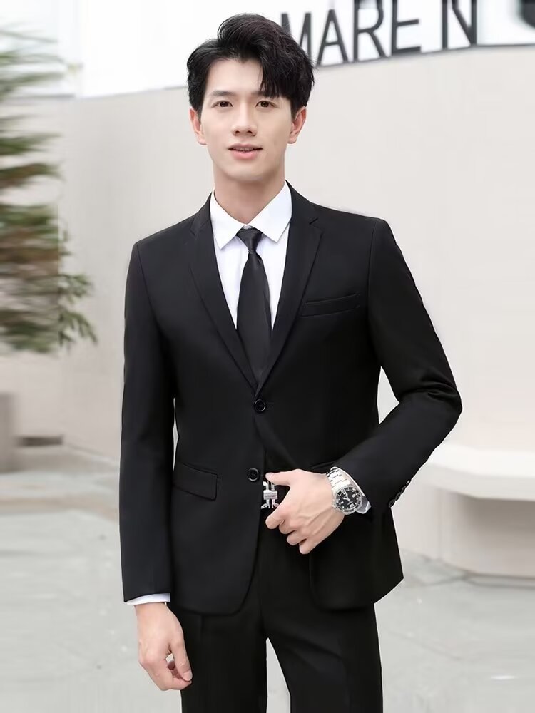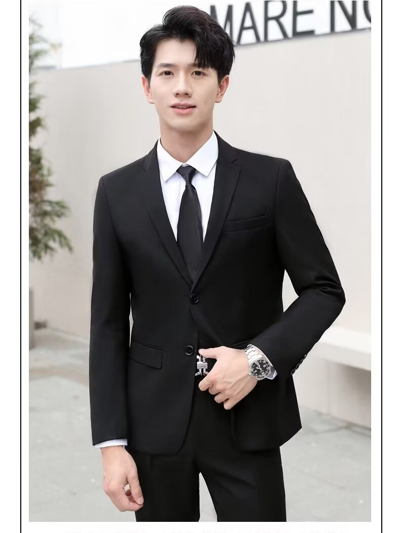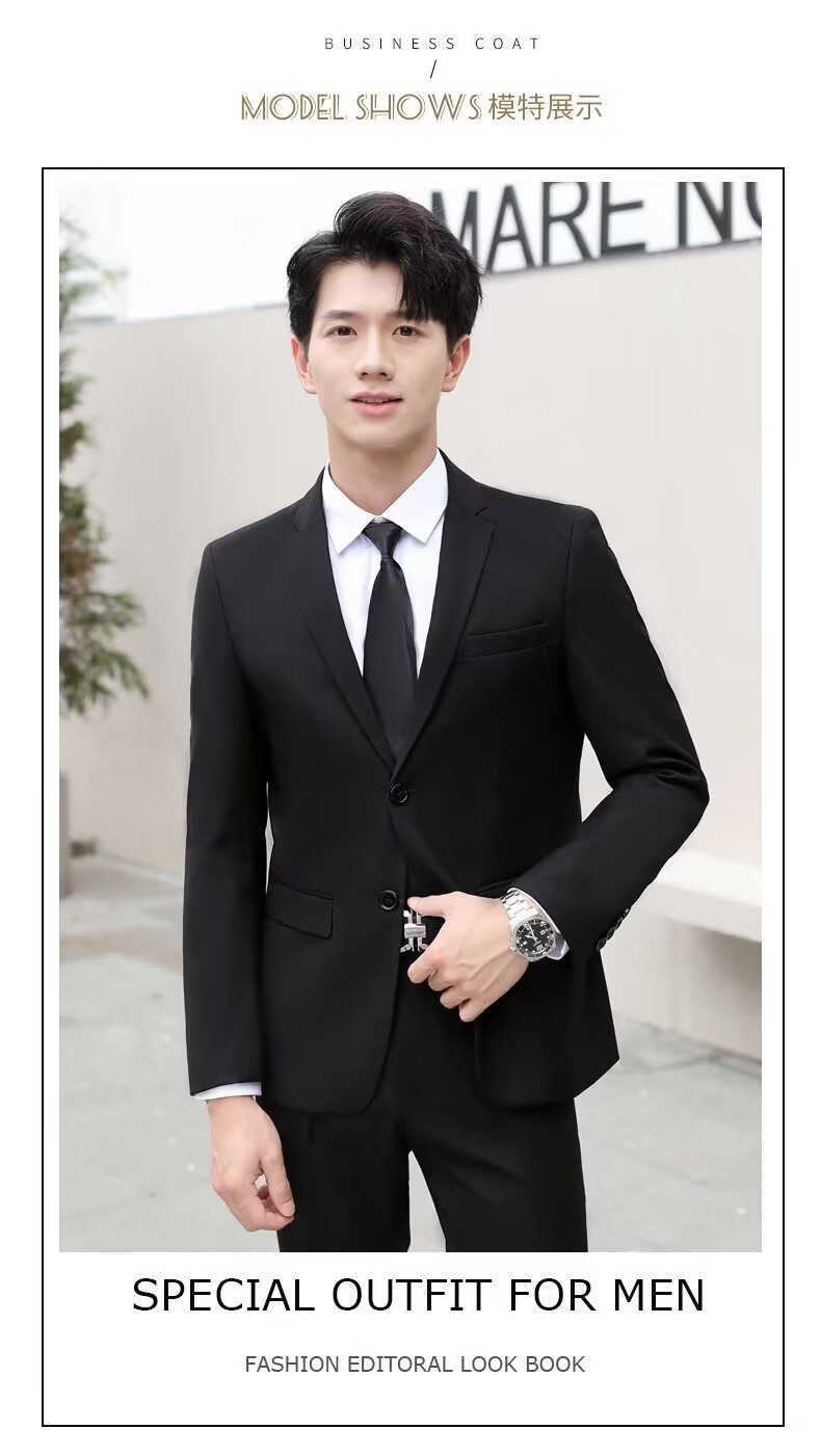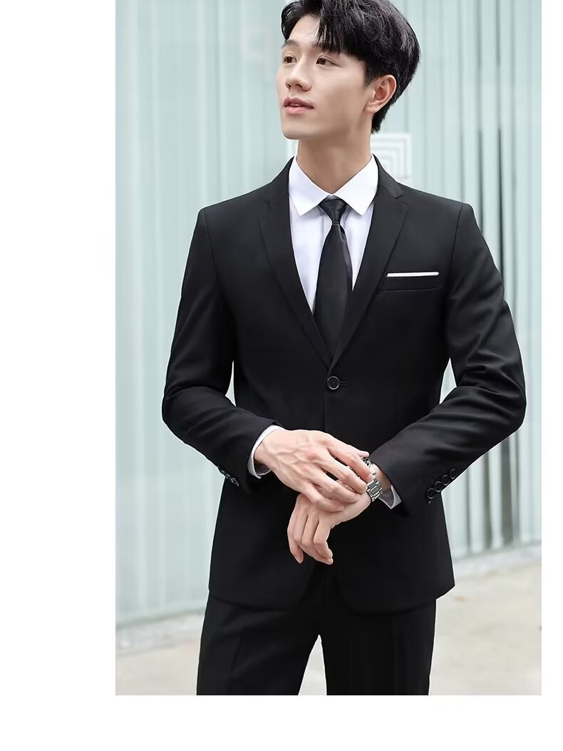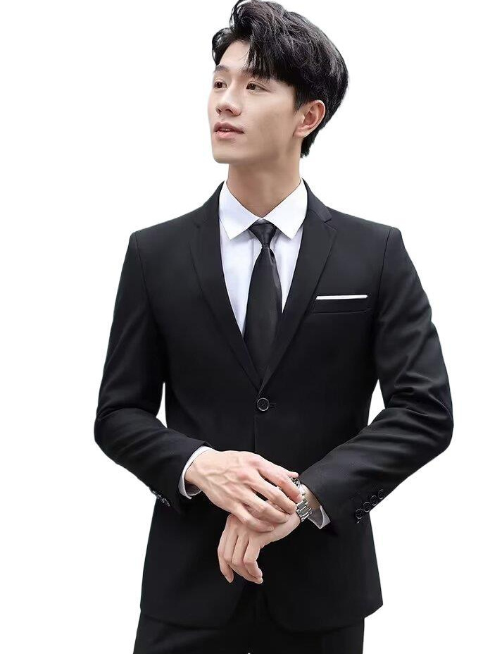 신사의 비즈니스 캐주얼 세트 재킷 남성 솔리드 컬러 슬림 핏 원피스 2 버튼 영국 신랑 세트 세트 여름