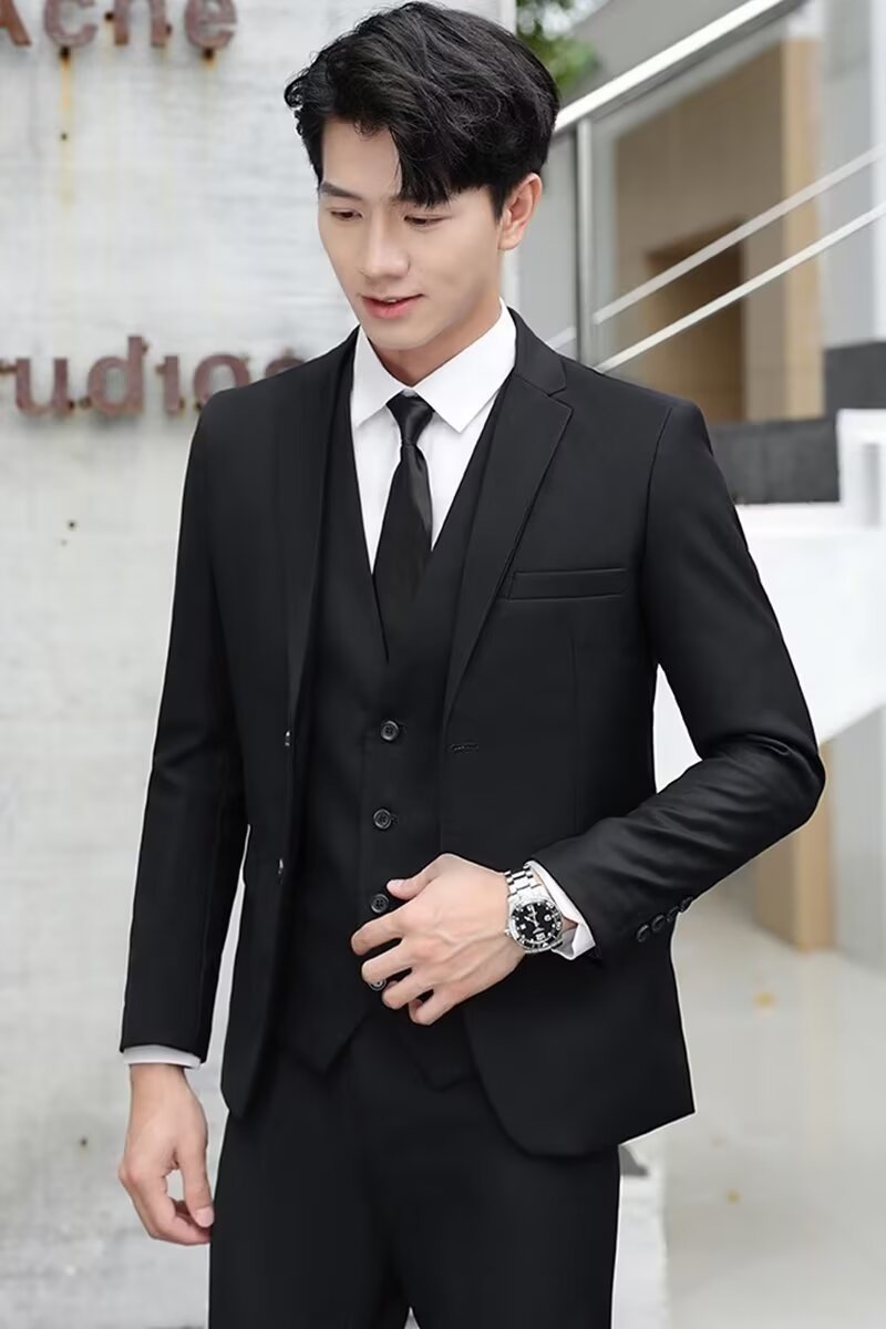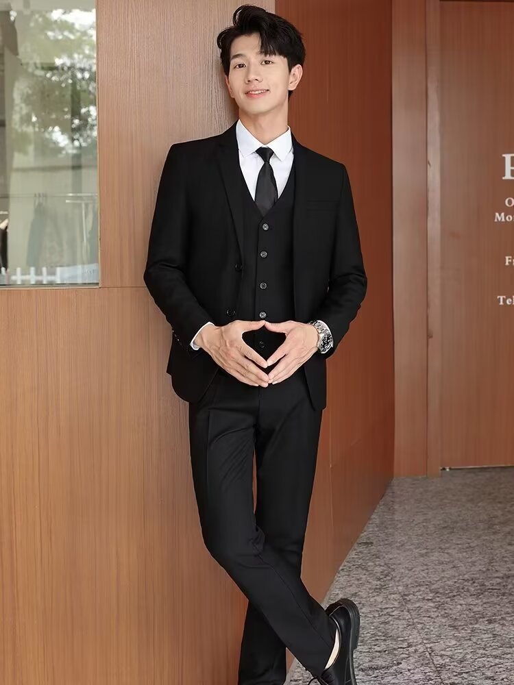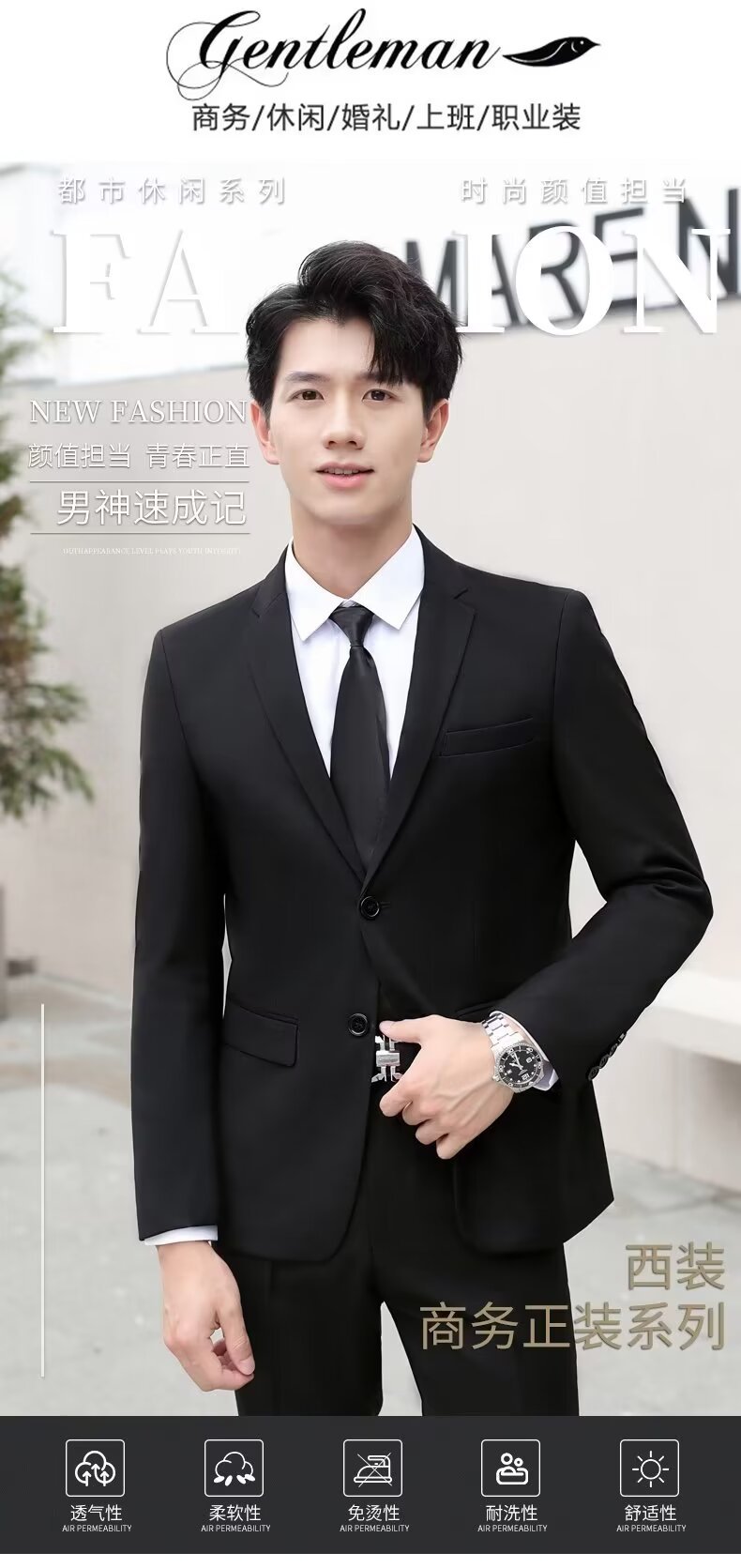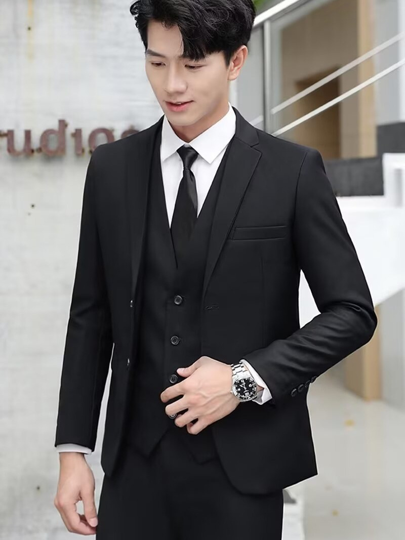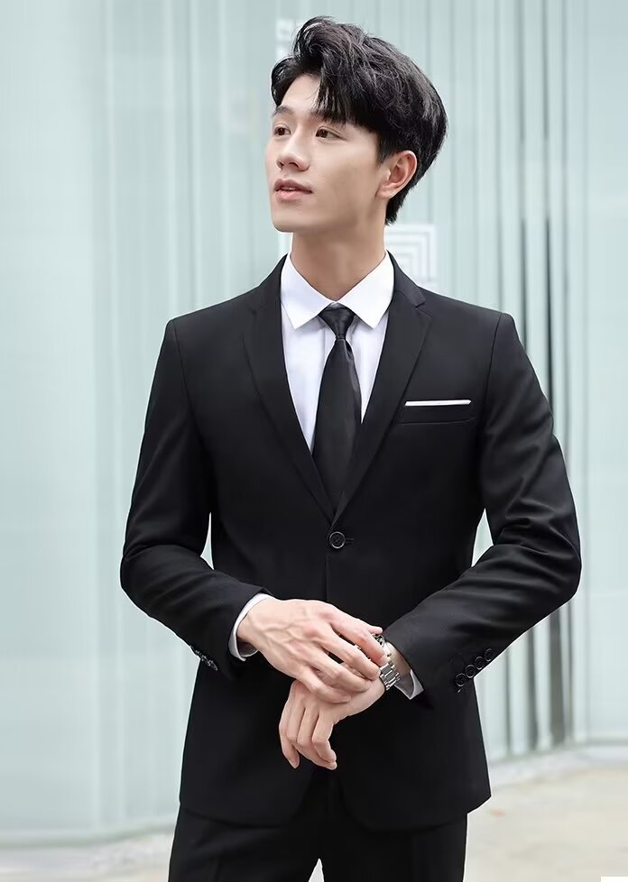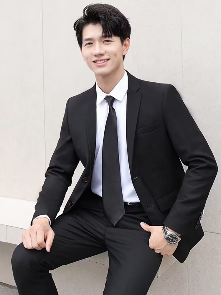 신사의 비즈니스 캐주얼 세트 재킷 남성 솔리드 컬러 슬림 핏 원피스 2 버튼 영국 신랑 세트 세트 여름